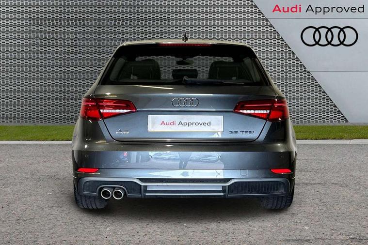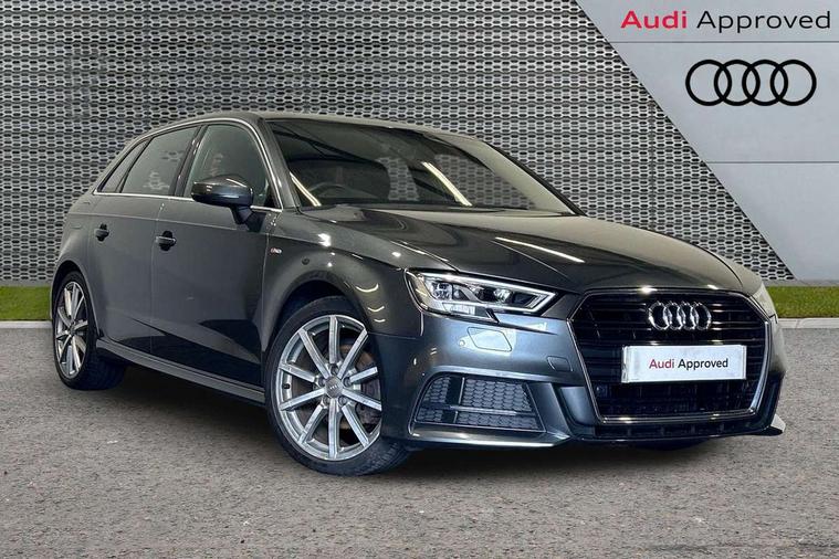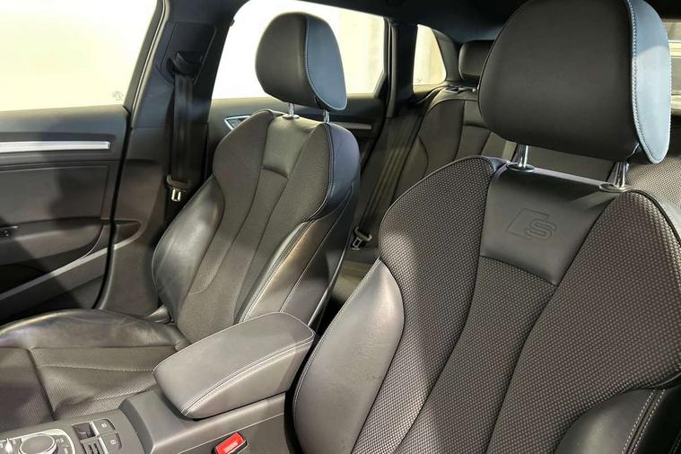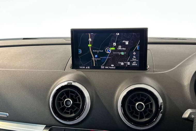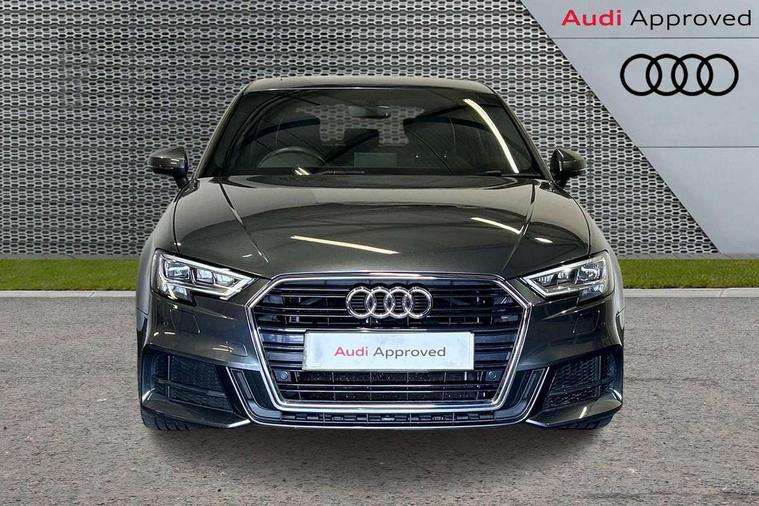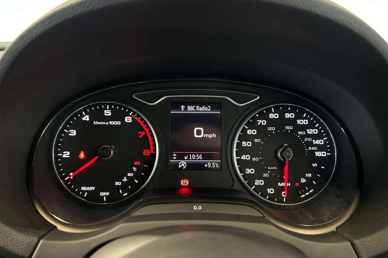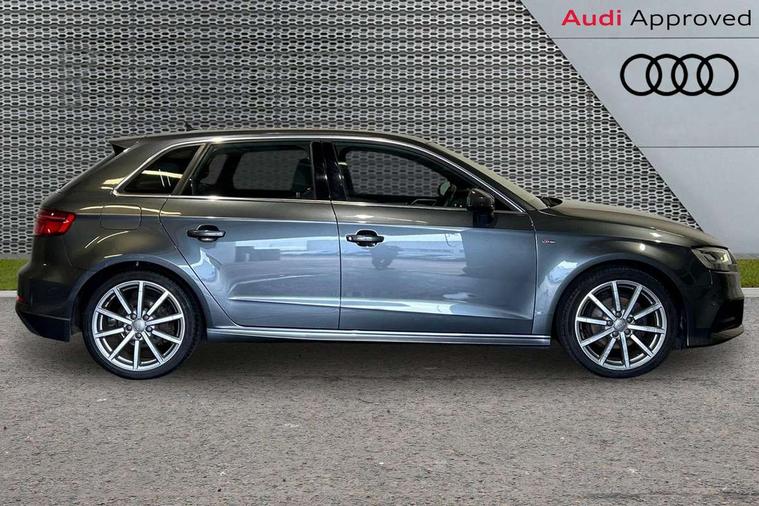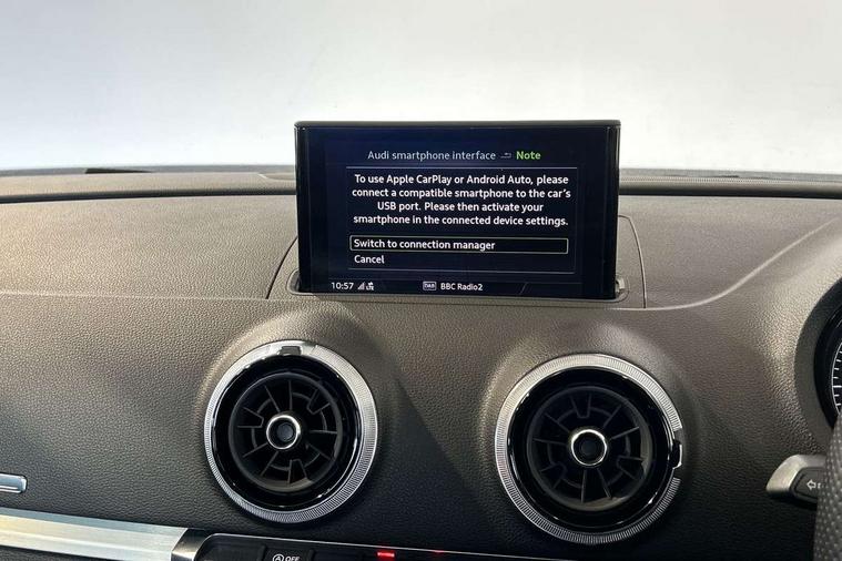 Audi connect, Audi drive select, Audi smartphone interface, Automatic start/stop system, Colour driver's information system display, Electro - mechanical power assisted steering, Mobile telephone preparation - bluetooth interface, SD card based satellite navigation system, Service interval indicator, Speed limit display, Voice control system, Voice recognition for navigation system, 2 USB interfaces and Aux-In jack, Audi music interface, CD player, DAB Digital radio, MMI radio plus with 7" colour MMI screen and MMI controller, Aluminium window trim, Auto dimming rear view mirror with light and rain sensors, Body colour door mirrors, Chrome exhaust tailpipes, Electric front windows, Electric rear windows, Electrically adjustable and heated door mirrors with integrated LED side indicators, Heated windscreen washer jets, LED daytime running lights, Matt black radiator grille, Rear wiper, S line badges on front wings, S Line body styling with front & rear bumpers and side skirts, radiator grille and rear diffuser insert, roof spoiler, Sport specific side air inlet grille and diffuser insert, 3 adjustable rear headrests, 3 spoke flat bottomed multi-function leather sport steering wheel, 4 lashing points to secure luggage, Adjustable front centre armrest, Black cloth headlining, Dual zone electronic climate control, Front and rear interior lights with delay, Front/rear floor mats, Glovebox light, Height and reach adjustable steering wheel, Illuminated door sill trims with S logo, Isofix child seat preparation for front passenger/outer rear seats inc passenger airbag deactivation, Stainless steel pedals, Storage compartments in doors side trims, centre console and under front drivers seat, LED interior light pack - A3/RS3, Non smoking pack - A3, Storage and luggage pack - A3/RS3, 3 point seatbelts on all seats, ABS/EBD, Active bonnet, Active front headrests, Airbags - front driver/passenger, front & rear side, curtain, drivers knee, ASR, EDL, Electromechanical parking brake, ESC - Electronic Stability Control + traction control, Front passenger airbag deactivation, Hill hold assist, Manual rear child locks, Multi-Collision braking, Seatbelt warning, Tyre pressure warning, Warning triangle and first aid kit, Anti theft alarm, Anti-theft wheel bolts, Remote control central locking, Thatcham category 1 alarm + immobiliser, Aluminium air vent surrounds, Aluminium trim elements, Matt brushed aluminium inlays, Tool kit, Tyre repair kit,
