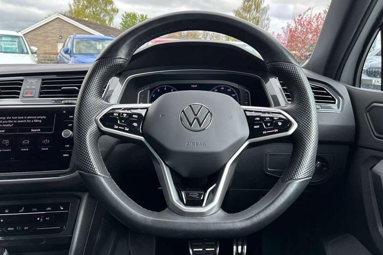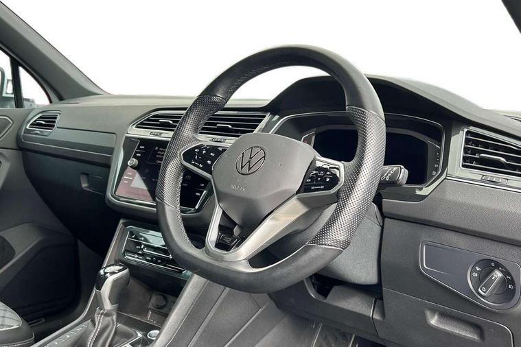 Adaptive cruise control ACC stop and go including speed limiter, App-Connect incl. App-Connect Wireless for Apple CarPlay and Android Auto, Bluetooth phone integration system, Distance control assist, Driver alert system, Driver profile selection, Dynamic road sign display, eCall emergency call system, Electromechanical speed sensitive power steering, Engine start/stop button, Lane keeping system Lane Assist, Lights on warning, Multifunction front facing camera, Outside temperature display, Premium multifunction display with multi colour display, Remote control boot opening, Rev counter, Revision / skills operating concept travel assistant, Service interval indicator, Speed limit display, Start/stop system with regenerative braking, Trip computer, Warning sound and light for doors and tailgate open, All wheel drive - 4Motion, Battery regeneration during braking, XDS electronic differential lock for improved traction and handling, 4 X 20 watt output, 8 Speakers, Diversity antenna for FM reception, Radio, SD card slot, Simultaneous pairing of 2 compatible mobile devices, SMS functionality - read, compose and send SMS messages using touch-screen display, Title and cover art display, USB C ports, Auto dimming interior rear view mirror, Automatic headlight control system, Body colour door handles, Chrome moldings on the side windows, Coming/leaving home lighting function, Dynamic headlight range control, Front and rear electric windows, Heated rear window, High level 3rd brake light, Laminated safety glass windshield, heat and sound insulating, LED headlamps with LED separate daytime running light and dynamic cornering light, LED rear combination lamps, LED rear number plate lights, License plate carrier in front and rear, Poor weather light and cornering light, R Line body kit, R Line side sills, Rain sensor windscreen wipers, Rear exhaust tailpipe, Rear fog lamp, Rear side wing doors, Rear spoiler in R style, Rear windscreen washer and wiper with interval delay, Side and rear windows in heat insulating glass, Trailer Stability Programme, Unique R Line badging, Windscreen wipers/ intermittent wipe + 4 position delay, 12V outlet in center console rear and in luggage compartment, 12V outlet in front and tray, 2 cup holders in front, 2 LED front reading lights, 2 LED rear reading lights, 3 bench rear seats in 2nd row, 3 rear headrests, 4 load lashing points, 40:20:40 split folding rear seats, Air Care Climatronic 3 zone automatic climate control with enhanced air filter and controls in the rear, Backrest release for left front seat, Black headlining, Brushed stainless steel pedals and footrest, Carpet mats in front and rear with decorative stitching in Gray, Climate control unit rear with touch function, Door and side trim panel in foam film, insert in leatherette, Front centre armrest, Front footwell illumination, Front seats head restraints (x-adjustment), Height adjustable front seats, Height/reach adjust steering wheel, Instrument lighting white adjustable panel illumination, Interior light with delay, Isofix Preparation 2 Rear child seats, Leather gear knob, Lockable cooled glovebox, Luggage compartment lighting, Luggage net, Rear bench seat asymetrically split folding, longitudinally movable and folding with load-through hatch and center armrest, Remote unlocking for rear seat backrest, Removable luggage cover, Removable rear headrests, Safety optimised front head restraints, Single front passenger seat, Sliding/reclining rear seats, Standard rear seat release, Storage compartment in driver's door, Storage compartment in passenger's door, Storage compartment in rear doors, Storage compartments in luggage area left and right, Storage tray on dashboard, Sun visors with illuminated vanity mirrors, Top front comfort seats, Variable boot floor, height adjustable and removable, Driver assistance pack plus - Tiguan DSG, 3 point seat belt for centre rear seats, 3 point seat belts with seat belt pretensioners for the outer rear seats, Active bonnet, Curtain airbags for front and rear passengers, Driver/Front Passenger airbags, Drivers knee airbag, Electronic parking brake with auto hold, Electronic Stability Control with driver steering recommendation, ABS, ASR, EDL, EDTC and trailer stabilization, Front assist with autonomous emergency braking (for Adaptive Cruise Control ACC up to 130 mph), Front disc brakes, Front passenger airbag deactivation, Front side airbags, Height adjustable front 3 point seatbelts + pretensioners, Hill hold control, Manual child proof rear door locks, Pedestrian monitoring system, Power assisted brakes, Proactive passenger protection system in combination with front assist, Rear disc brakes, Rigid safety cell with front and rear crumple zones, Two tone horn, Warning sound and light for front seat belts if unfastened, Anti theft alarm system with interior monitoring, backup horn and towing protection, Anti theft wheel bolts, Electronic engine immobiliser, Tool kit,