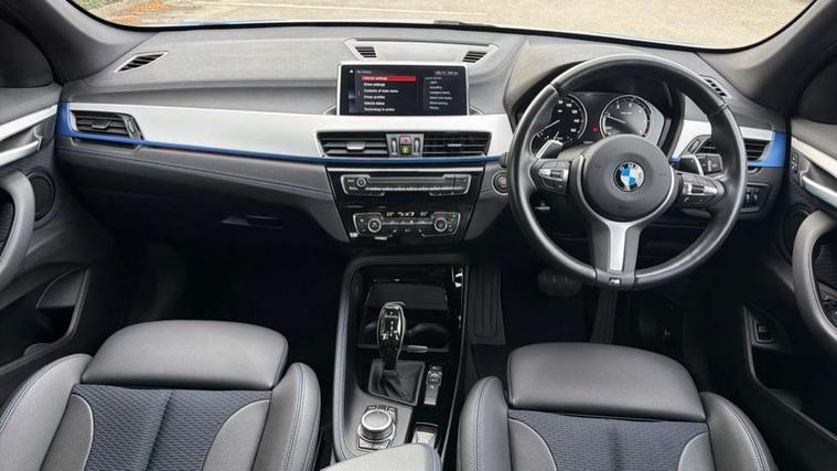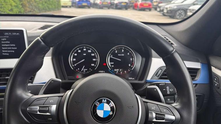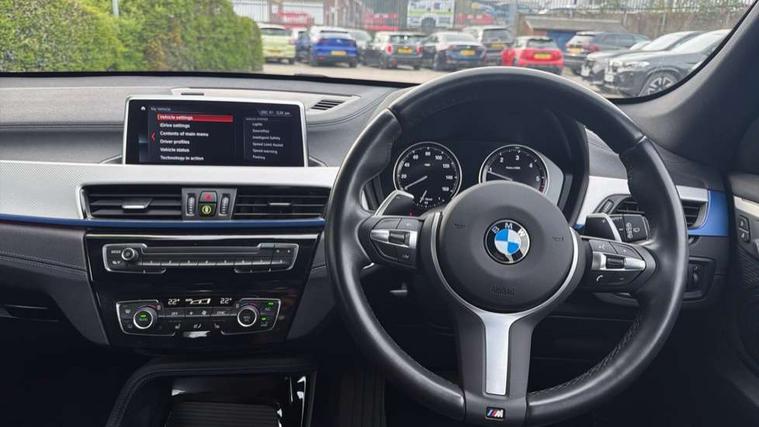 Active Guard incl speed limiting and lane departure functions with auto steering, and front collision warning with brake intervention, Ambient temperature display, Apple CarPlay, Arrow pointers, north up, direction of travel and perspective map displays, Attentiveness assist, Automatic tailgate opening, BMW ConnectedDrive, BMW Navigation system with 8.8" monitor and 800X480 pixel resolution, BMW Online services, BMW remote services, BMW Teleservices, Brake pad wear indicator in front and rear, Characteristic map controlled oil pump system, Cruise control with brake assist, Front axle single joint with specific axle kinematics to minimise drive influences on steering + provide increased rigidity agile driving behaviour, Front/rear park distance control (PDC), Instrument cluster with Black optic display featuring superimposed dials and 5.7" colour display, Instrument cluster with speedometer with miles per hour read out, tachometer and fuel gauge, Integrated hard drive with map data updates via USB interface, Lights on warning by audio warning signal when ignition is switched off, On board computer, Operation by iDrive with direct selection buttons and 8 programmable buttons, Optimum shift indicator, Outside temperature gauge, Park assist system, Personal Profile - automatic lock when driving away selectable, Real time traffic information, Rigidly mounted rear subframe - Multi link construction with separate spring / damper configuration and excellent driving characteristics, Service interval indicator, Servotronic PAS, Tyre puncture warning system, 12V compressor with integrated sealant injection bottle and hose, Aluminium lightweight construction including crankcase, Anti-roll bars, Balancer shaft, Diesel particulate filter, DOHC valvetrain with two upper camshafts, Double VANOS, Drive performance control with ECO PRO comfort + sport mode, Eight speed sport automatic transmission, Electronic differential lock control (EDLC), High precision injection, Incorrect fuelling protection, Performance Control, Stop/start function, Twin tube gas filled shock absorbers with degressive characteristic curve, DAB Digital radio, Adjustable headlights, Aero curtain, Automatically dimming rear view mirror, BMW Icon design LED daytime driving lights, Body colour bumpers, Body colour door handles, Body colour door mirrors, Body colour wheel arches and side sills, Direction indicator side lights integrated exterior mirrors, Dynamic brake lights, Electric windows - front and rear, with open/close fingertip control, anti-trap facility and comfort closing, Electrically adjustable door mirrors with aspheric on driver side, convex on passenger side with integrated indicators, Exterior mirrors - electrically folding with anti-dazzle, Follow me home headlights, Front air guide finished in black silver, Front air inlets in matt black with silver finisher matt, Front and rear bumper system, Front bumper air intakes with dark shadow finisher, Green tinted heat protection glazing glass, Headlight beam throw control, Heated door mirrors, Heated windscreen washer jets, High level third brake light, Kidney grille with 14 chrome high gloss black vertical bars, LED direction indicator lights in headlight eyebrow, LED front fog lights, Lightweight engineering, M aerodynamic body styling, M logo designation in side chrome, Model designation, Rain sensor including auto headlights activation, Rear bumper with dark shadow and underbody protection in body colour, Rear fog lights, Rear window aerial, Rear window wash/wipe, Reversing light in rear light cluster, Roof mouldings in matt black, Shark fin antenna, Sill cover matt black with matt silver insert, Twin chrome exhaust tailpipes x2, Two eye face design on light, Visible VIN plate, Welcome lighting, 12v power point in centre console, 2 cup holders in front, 3 rear headrests, 40:20:40 split folding rear bench seat, Anthracite floor mats with M specific designation, Anthracite headlining, Boot light, Centre armrest in 20 degree part rear seat backrest, Child seat ISOFIX attachment for two outer rear seats and front passenger seat with anchorage points, Conditioned based service, Driver and front passenger heated seats, Driver/front passenger seat backrest back with luggage net, Driver/passenger sunvisors with ticket holders, Dual zone automatic air conditioning, Four grab handles integrated in roof linings, Front and rear side armrests integrated into door trim, Front centre armrest/sliding cover, Front centre interior light over interior mirror and rear centre automatic interior light when door is opened/ignition switched off or via remote key, Front door sill finishers with M designation, Front sports seats, Front/rear adjustable head restraints, Illuminated glovebox, Leather gearknob/gaiter/handbrake grip, Luggage area underfloor compartment, Luggage compartment access via recessed handle below tailgate, Luggage compartment lighting, Luggage compartment loading edge with stainless steel insert, M Sport nappa leather 3-spoke steering wheel, Manually adjustment steering wheel column, Multifunction steering wheel, Rear coded belt buckles, Single turbo charger, Standing free front adjustable armrest and fixed in different positions, Steering wheel gearshift paddles, Extended lights pack - X1, Extended storage package - X1, ABS/EBD, Audio/visual collision warning system, Automatic Stability Control (ASC), Battery safety cut-off, BMW emergency call, Brake drying, Brake energy regeneration, Braking readiness, Collision mitigation braking system, Cornering brake control (CBC), Crash Sensor - activates hazard/interior lighting + unlocks doors, Driver/Front Passenger airbags, Driver/front passenger side airbags, Dynamic brake control, Dynamic stability control + (DSC+), Dynamic Traction Control - DTC, Electronic parking brake, Front and rear head airbags, Front passenger airbag deactivation, Front seatbelt force limiters, Front ventilated disc brakes, Hill start assist, Pyrotechnical