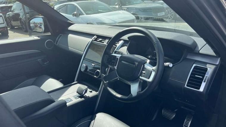 11.4" touchscreen, 3D surround camera, Adaptive cruise control, Android Auto, Apple car play, Blind spot assist, Driver condition monitor, Electric power assisted steering (EPAS), Emergency services call system, Front and rear parking aid, Interactive driver display, Lane keep assist, Power inner tailgate, Power tailgate/boot lid, Push button start, Rear collision monitor, Rear traffic monitor, Remote, Remote boot release, Service interval indicator, Speed proportional steering, Sportshift selector, Stop/start system, Traffic sign recognition with adaptive speed limiter, Trip computer, Wade Sensing, Adaptive dynamics, Dynamic stability control, Electronic air suspension, Front axle open differential, Digital Audio Broadcast radio-DAB, Dynamic volume control, Pivi pro connected, USB/aux input socket, Acoustic laminated windscreen, Animated directional indicators, Auto dimming interior rear view mirror, Automatic headlight levelling, Automatic headlights, Body colour bumpers, Body colour door handles, Centre high mounted stop light, D300 badge, Electric heated/power fold memory door mirrors with approach lights and auto dimming driver side, Electric windows with one touch open/close and anti-trap, Heated rear window, Heated windscreen, LED darkend tail lights, Matrix LED headlights with signature DRL, Narvik black Discovery script, Privacy glass, Puddle lights, Rain sensing windscreen wipers, Rear fog lights, Rear side wing doors, Rear wash/wipe, Trailer stability assist, Variable intermittent wiper, 12V power sockets, 12V USB charging socket in loadspace, 2 seat bench in 3rd row, 3 seat bench in 2nd row, 60/40 electric heated folding rear seats with manual slide and powered recline, centre headrest and armrest, Central hinged twin lidded storage, Configurable cabin lighting, Ebony morzine headlining, Electric adjustable steering column, First and second row door bins, Footwell lights, Front and rear 12V with front USB, Front passenger seat isofix location point, In-facia storage, Isofix child seat preparation for front passenger seat, Leather steering wheel, Loadspace cover, Loadspace Hook, Loadspace light, Lockable glovebox, Lower centre console storage, Luggage tie downs in loadspace, Multi function steering wheel, Overhead lighting console, Premium carpet mats, Rear ISOFIX, Shopping bag hook, Single front passenger seat, Storage glovebox, Sunvisors with illuminated vanity mirrors, Third row storage, Treadplates with metal inserts, Twin front cupholders with cover, USB with 12V socket in centre console, Black exterior pack - Discovery Dynamic SE/HSE, Online pack with data plan - Discovery, 3x3 point rear seatbelts, Anti-lock braking system (ABS), Brake pre-fill technology, Cornering brake control, Curtain airbags, Customer configurable autolock, Driver and passenger airbags, EBD - Electronic brakeforce distribution, Electronic traction control, Emergency brake assist, Emergency braking, ESP, Front side airbags, Gradient acceleration control, Hill descent control, Hill launch assist, Power operated child locks, Rear airbags, Roll stability control, Seat belt reminder, Torque vectoring brake, Tyre pressure monitoring system, Immobiliser, Intrusion sensor, Keyless entry, Locking wheel nuts, Remote central locking, All terrain tyres,