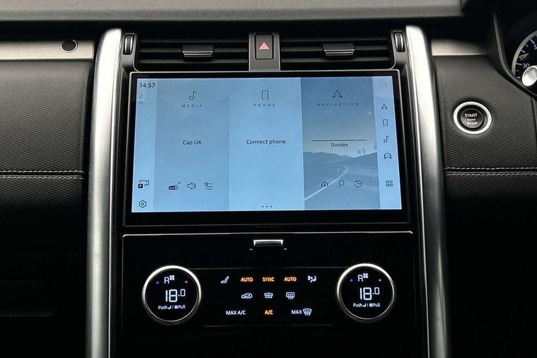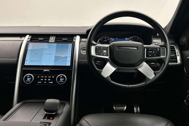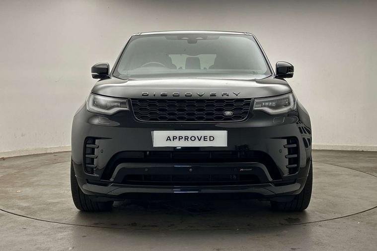 11.4" touchscreen, 3D surround camera, Adaptive cruise control, Android Auto, Apple car play, Blind spot assist, Driver condition monitor, Electric power assisted steering (EPAS), Emergency services call system, Front and rear parking aid, Lane keep assist, Power inner tailgate, Push button start, Rear collision monitor, Rear traffic monitor, Remote, Remote boot release, Service interval indicator, Speed proportional steering, Sportshift selector, Stop/start system, Traffic sign recognition with adaptive speed limiter, Trip computer, Wade Sensing, Adaptive dynamics, Dynamic stability control, Electronic air suspension, Front axle open differential, Digital Audio Broadcast radio-DAB, Dynamic volume control, Pivi pro connected, USB/aux input socket, Acoustic laminated windscreen, Animated directional indicators, Auto dimming interior rear view mirror, Automatic headlight levelling, Automatic headlights, Body colour bumpers, Body colour door handles, Centre high mounted stop light, D300 badge, Electric heated/power fold memory door mirrors with approach lights and auto dimming driver side, Electric windows with one touch open/close and anti-trap, Heated rear window, Heated windscreen, LED darkend tail lights, Metal treadplates with R-Dynamic branding, Narvik black Discovery script, Privacy glass, Puddle lights, Rain sensing windscreen wipers, Rear fog lights, Rear side wing doors, Rear wash/wipe, Trailer stability assist, Variable intermittent wiper, 12V power sockets, 12V USB charging socket in loadspace, 2 seat bench in 3rd row, 3 seat bench in 2nd row, Central hinged twin lidded storage, Ebony morzine headlining, First and second row door bins, Footwell lights, Front and rear 12V with front USB, Front passenger seat isofix location point, In-facia storage, Isofix child seat preparation for front passenger seat, Loadspace cover, Loadspace Hook, Loadspace light, Lockable glovebox, Lower centre console storage, Luggage tie downs in loadspace, Multi function steering wheel, Overhead lighting console, Premium carpet mats, Rear ISOFIX, Shopping bag hook, Single front passenger seat, Storage glovebox, Sunvisors with illuminated vanity mirrors, Third row storage, Twin front cupholders with cover, USB with 12V socket in centre console, Online pack with data plan - Discovery, R-Dynamic black exterior pack - Discovery, 3x3 point rear seatbelts, Anti-lock braking system (ABS), Brake pre-fill technology, Cornering brake control, Curtain airbags, Customer configurable autolock, Driver and passenger airbags, EBD - Electronic brakeforce distribution, Electronic traction control, Emergency brake assist, Emergency braking, ESP, Front side airbags, Gradient acceleration control, Hill descent control, Hill launch assist, Power operated child locks, Rear airbags, Roll stability control, Seat belt reminder, Torque vectoring brake, Tyre pressure monitoring system, Immobiliser, Intrusion sensor, Keyless entry, Locking wheel nuts, Remote central locking, All terrain tyres,