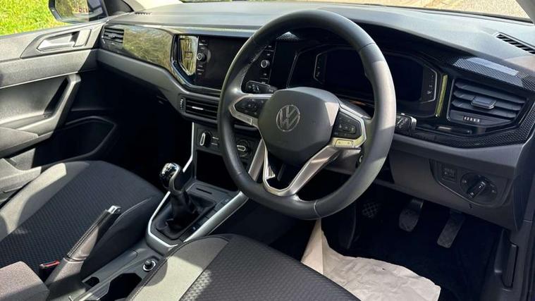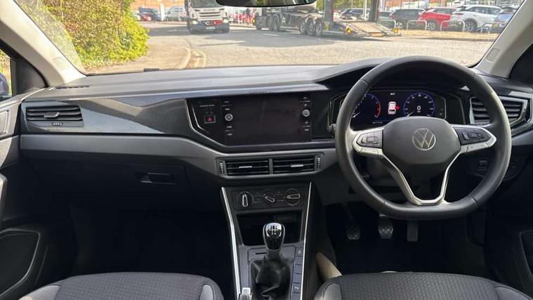 Adaptive cruise control without follow-to-stop and speed limiter, Bluetooth mobile phone interface, Driver alert system, Emergency call service, Front assist system, Power assisted speed sensitive steering, Preparation for We connect and We connect plus, Speedo and rev counter, electronic odometer, trip, service interval display and fuel gauge, Standard rear axle, Travel Assist - Lane keeping system and traffic jam assist, Travel assist including emergency assist, Trip computer, Warning signal and warning light for front and rear seatbelts not fastened, Washer fluid level indicator, Wireless app connect, Front wheel drive, Rear shock absorpion, Start-stop system with battery regeneration (recuperation - energy recovery during braking), DAB Digital radio, Diversity antenna for FM reception, Front and rear 6 speakers, Automatic dimming interior rear view mirror, Body colour bumpers, Body colour door handles, Body colour door mirrors, Electric front windows, Heat insulating darkened glass in side and rear windows, Heat insulating glass windscreen, Power folding adjustable/heated exterior mirrors and front passenger exterior mirror lowering function, Rain sensor, Rear electric windows, Rear fog light, Rear side wing doors, Rear windscreen washer and wiper with interval delay, Third brake light, 12V power socket in centre console, 2 front and 2 rear reading lights, 2 USB-C ports in the front, 2 USB-C charging sockets on the center console in the rear, 3 rear head restraints, 60/40 split folding rear seat and rear seat bench not split, Ceramique headliner, Chrome plated radiator grille inserts, air vent surrounds and light switch surrounds, Door and side trim panel, Driver and front passenger seat height adjustment, Driver/passenger sunvisors with illuminated vanity mirrors, Front centre armrest, Front seat backrest storage pockets, Front standard seats, Handbrake lever handle in leather, Hartley/Thomas cloth upholstery, Isofix child seat preparation easy-fit (for two outer rear seats, and front passenger seat) compatible with I-size, Leather trimmed gear knob, Luggage compartment cover, Luggage compartment floor, Luggage compartment lighting, Multifunction steering wheel, Single front passenger seat, Standard pedal cluster, Light and vision pack - Polo, 3 point height adj front seatbelts + pretensioners, 3x3 point rear seatbelts, ABS, Driver and front passenger airbag with front passenger airbag deactivation, Drivers and front passengers safety optimised head restraints, ESC (Electronic stability control) + EDL (Electronic Differntial lock) and ASR (Traction control), Extended and predictive pedestrian/ cyclist protection, Front curtain and side airbags with center airbag, Front disc brakes, Hill hold control, Manual child lock in rear doors, Rear drum brakes, Single tone horn, Tyre pressure loss indicator, Alarm with interior protection, Anti-theft alarm system with interior monitoring, backup horn, and towing protection, Anti-theft wheel bolts, Electronic engine immobiliser, Lava stone black gloss/matt decorative inserts in dash and front door panels, Low rolling resistance tyres,