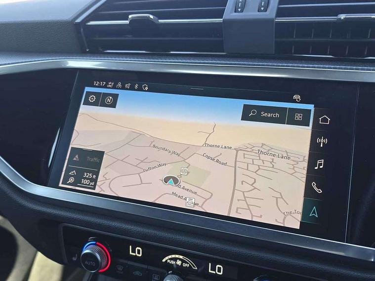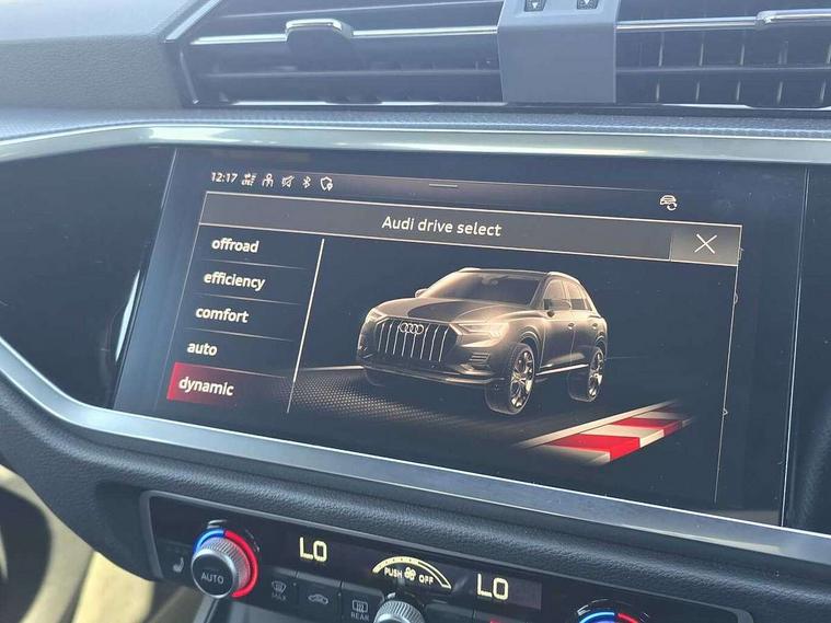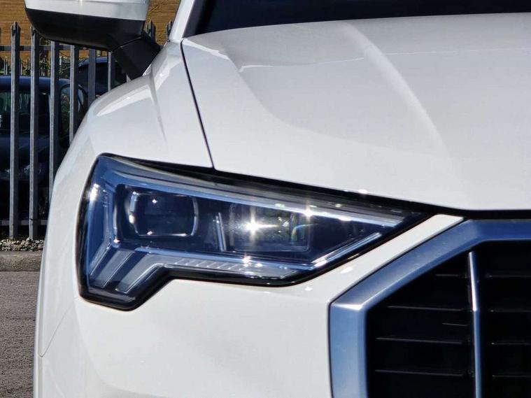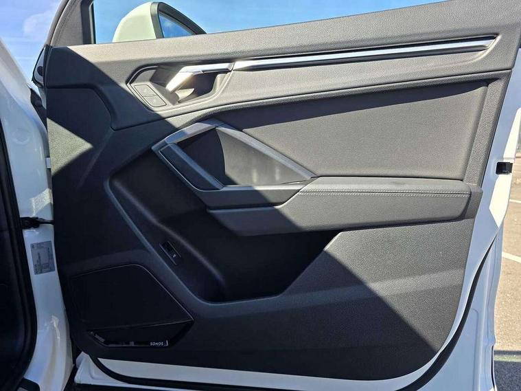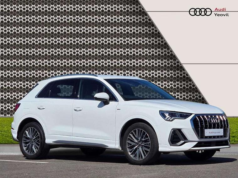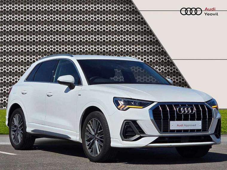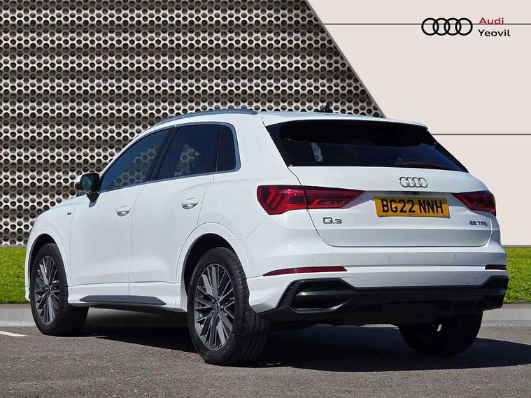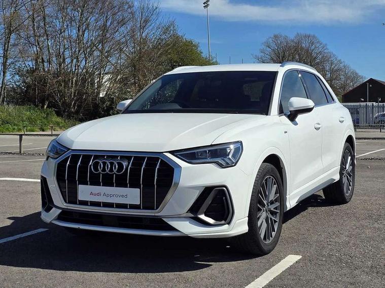 Amazon alexa Integration, Audi connect safety and service (e-call), Audi drive select, Audi lane departure warning, Audi Virtual Cockpit - 10.25" display, Bluetooth interface, Camera based traffic sign recognition, MMI Navigation Plus with high resolution 10.1 inch touchscreen colour display, Power operated tailgate, Progressive steering, Service interval indicator, Smartphone interface includes wireless Apple carplay/Android Auto, Start stop system with recuperation, Voice control system with natural language interaction, 48V Mild hybrid technology, Sports suspension, 2 USB-C ports with charge and data functions, 6 passive loudspeakers, DAB digital radio module, Acoustic windscreen, Aluminium roof rails, Aluminium window trim, Auto dimming frameless rear view mirror, Body coloured bumpers, Electrically folding, adjustable and heated door mirrors with integrated LED side indicators and kerb view function for passenger side, Front and rear electric windows, Front fog lights, Front side air inlets in matt platinum grey, Front spoiler blade in matt platinum grey, Grille vertical bars in aluminium silver/Matt, High gloss black finish B and C pillars, LED headlights with LED daytime running lights, LED rear lights, LED third brake light, Privacy glass dark tinted rear and rear-side windows (from B-pillar backwards), Rain and light sensors, Rear diffuser strip in matt titanium black, Rear side wing doors, Rear wiper, S line badges on front wings, S Line front and rear bumpers, Side skirt insert in matt Platinium grey, Silver chrome grille surround, Titanium black radiator grille, Variable front intermittent wipers, 12V socket in rear centre console, 3 seat bench in 2nd row, 40:20:40 folding with manual adjustment for 60:40 forwards/backwards position and backrest angle, Adjustable rear seat bench/backrest with centre armrest and cupholder, Black cloth headlining, Dual zone electronic climate control, Front and rear black floor mats with contrast stitching in rock grey, Front and rear headrests, Front and rear roof module including reading lights, Front centre armrest, Glove compartment lighting, Height and reach adjustable steering wheel, Illuminated door sill trims with S logo, ISOFIX child seat mounting for front passenger with airbag deactivation and outer rear seat including top tether attachment point for outer rear seats, Luggage compartment light, Manual front seats with height adjustment, Perforated leather gearknob, Single front passenger seat, Stainless steel luggage compartment sill finisher, Stainless steel pedals, Non smoking pack - Q3, 3x3 point rear seatbelts, 6 airbags - Driver, front passenger, curtain and side windows, Audi pre-sense front with pedestrain and cyclist recognition, Electromechanical parking brake, Electronic stabilisation control including ABS, ASR and EDL, Front seatbelt reminder, Hill descent control, Hill hold assist, Manual child lock in rear doors, Pre sense basic, Seatbelt monitoring, Tyre pressure warning, Warning triangle and first aid kit, Anti theft alarm, Anti theft wheel bolts, Immobiliser, Remote central locking, Dark matt brushed aluminium inlay, Detail dashboard around MMI touch colour display in glass look, black with surround in aluminium look, Leatherette door armrest, Tool kit, Tyre repair kit,