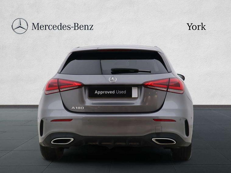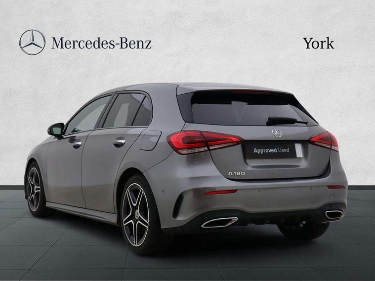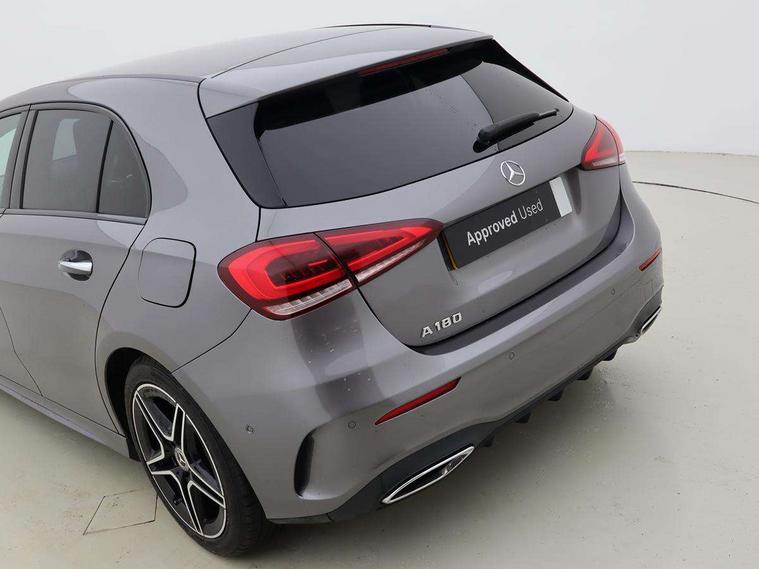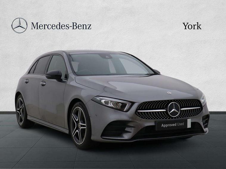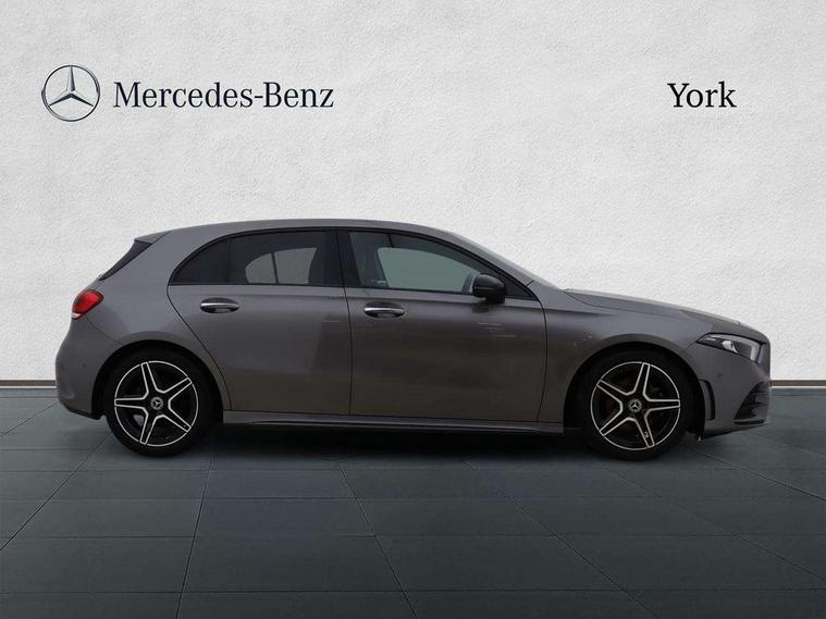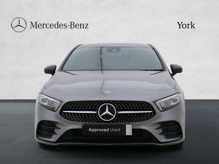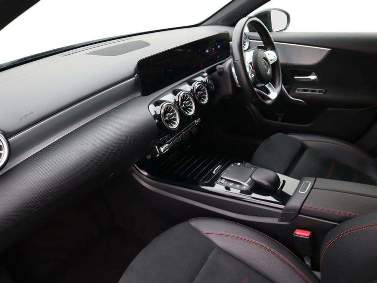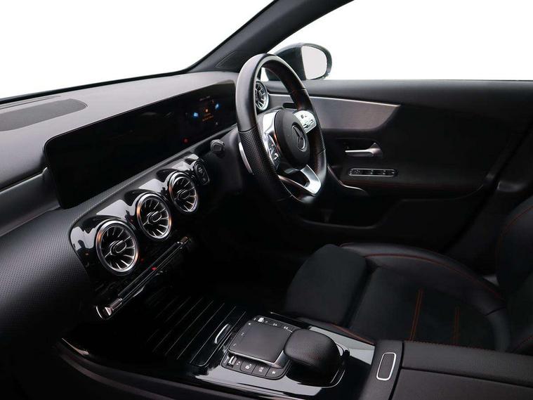 10.25" Digital instrument cluster display screen, 10.25" media display, 180 degree rear view camera with parking guidelines, Active parking assist with visual and audible warning of detected obstacles, Attention assist, Brake pad wear indicator warning light, Car wash mode, Cruise control + speed limiter, Direct steering, Dual bluetooth interfaces, DYNAMIC SELECT with a choice of driving modes (ECO, Comfort, Sport and Individual), ECO start/stop function, Fluid level warning indicator for fuel, oil, coolant and washer fluid, Hard-disk navigation, Hey Mercedes Voice activation, Lamp failure indicator, Lane keeping system, Mercedes me connect including emergency call system, accident recovery, breakdown and maintenance management, Mercedes me remote services, Outside temperature gauge, Owners manual in English, Pre-installation for private car sharing, Preinstallation for Mercedes Benz link, Service indicator (ASSYST), Smartphone integration with Apple CarPlay and Android auto, Speed limit assist, Speed sensitive power steering, Trip computer, Ultrasonic sensors positioned in the front and rear bumpers, Lowered comfort suspension, Rear axle torsion beam, 2 USB ports (type C) in rear stowage compartment and one in front of center console, 6 speakers, DAB Digital radio, MBUX multimedia system with DAB digital radio and touchpad including satellite navigation, Mercedes-Benz sound system - 100W, 4 Electric Front and Rear windows, Adaptive brake lights, AMG bodystyling - Front apron with splitter in chrome, rear apron with chrome trim and chrome visible trim elements in tailpipe, Automatic headlights, Black weather strip, Body colour bumpers, Body colour door handles with chrome inserts, Body colour side skirt, Electric adjustable and heated door mirrors with integrated LED side indicators, Exclusive diamond radiator grille, Exhaust system - Twin visible tailpipes in polished stainless steel, Headlamp assist automatic headlamp activation, Heated glass rear windscreen + timer control, LED High level third brake light, LED high performance headlamps with integrated LED daytime running lights, LED tail lamp, Privacy glass, Radio aerial, Rain sensing windscreen wipers with two sensitivity settings, Rear fog lights, Rear side wing doors, Rear wiper, 3 seat bench in 2nd row, 3 Spoke flat bottom leather multi function steering wheel with perforated leather in grip area, 40:20:40 split folding rear seats, Artico man-made leather/Microfibre Dinamica upholstery with red contrast stitching, Auto Mercedes-Benz child seat recognition sensor, Black air vents with surround in silver chrome, Black roof lining, Brushed stainless steel sports pedals with rubber studs, Controller on centre console with chrome surround, Floor mats with AMG lettering, Front centre armrest with storage compartment, Front seat backs luggage nets, Galvanished gear shift paddles on steering wheel, Heated front seats, Height/reach adjustable steering column, Illuminated Mercedes Benz lettering front door sills with changeable cover, Interior lighting - 64 colour Ambient lighting, Interior mirror with reading lamps in black and frameless, Manual height adjustable front seats, Rear armrest with 2 cupholders, Rear head restraints, Seat occupancy sensor for front passenger seat, Single front passenger seat, Sports seats with integrated headrests, Stowage compartment in centre console with retractable cover, Sunvisors with illuminated vanity mirrors, Touchpad on center console, Twin front cupholders, Two zone thermotronic luxury automatic climate control, Light and sight pack - A Class, Mirror package - A Class, Night pack - A Class Saloon/Hatchback, Seat comfort pack - A Class, 3 rear 3 point seatbelts, ABS with Brake Assist, Active bonnet, Active brake assist includes forward collision warning system with autonomous braking, Adaptive brake assist with hold function and hill start assist, Childproof locks manually operated for rear doors and electrically operated for rear power windows, Crash responsive emergency lighting, Driver and passenger head and side airbags, Drivers knee airbag, Dual stage driver/passenger airbags, Electronic parking brake, ESP curve dynamic assist, ESP with ASR, Front and rear seatbelt reminder, Front brake callipers with Mercedes Benz lettering, ISOFIX and top tether child seat fixing points in two outer rear seats, Tyre pressure monitoring system, Warning triangle and first aid kit, Window airbags, Alarm system/interior protection/immobiliser, Keyless entry lock/unlock, Keyless Go, Remote central locking and crash sensor with emergency opening function, Urban guard vehicle protection system with immobiliser and interior protection, Black seatbelts, Matrix look light longitudinal grain aluminium trim element, 18" AMG 5 twin spoke light alloy wheels aerodynamically optimised painted in black with highsheen finish, Summer tyres, Tirefit sealant kit,
