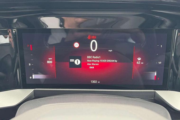 10" digital instrument cluster, Active drive assist, Adaptive cruise control, Digital instrumentation with digital speedometer, rev counter, fuel and water temperature gauge, Driver attention alert, Driver drowsiness alert system, Driver information display with multi function trip computer, audio info, digital clock and outside air temperature with ice warning function, Front and rear parking distance sensors, Lane keep assist system (LAS) with Lane departure warning system (LDWS), Lights on audible warning, Panoramic rear view camera, Power assisted speed sensitive steering, RDS with traffic programme, Side blind spot alert and flank guard, Speech recognition, Start/stop system, Vauxhall connect with e-Call, WiFi connectivity, Wireless phone projection with Apple CarPlay and Android Auto, Sports chassis, 2 rear USB connection, 6 speakers, AM/FM stereo radio with 36 station presets, DAB Digital radio, Front USB connection, Mobile phone portal - bluetooth connect, vehicle microphone, handsfree calls, SMS read out and reply, phone book access, Multimedia pure panel navigation system with 10" colour touchscreen and 15W wireless charger, Steering wheel mounted controls, Adaptive brake lights, Automatic headlamp levelling, Automatic lighting control with tunnel detection, Black DLO, Black door mirror housings, Black Griffin logo and vizor frame, Black lettering and emblems, Black upper window moulding, Body colour door handles, Body colour front and rear bumpers, Body colour skid plates, Dark tinted rear side windows, Electrically adjustable and heated door mirrors, Electrically foldable door mirrors, Electrically operated front and rear windows with safety auto reverse and one touch up/down facility, Electrochromatic frameless auto dimming rear view mirror, Hazard warning lights, Heated rear window+rear wash/wipe, High gloss black front and rear bumper inserts, High gloss black painted claddings, lower grille and front lateral inserts, High gloss black painted lateral moulding, Integrated black tailgate spoiler, IntelliLux matrix headlights with advanced forward lightning and anti glare beam, LED 3rd brake light, LED daytime running lights, LED side repeat indicators, Rain sensitive windscreen wipers, Rear side wing doors, Reversing light, Shark fin antenna, Solar heat absorbing windscreen and windows, Windscreen and side window demist vents, 12V Accessory socket, 3 seat bench in 2nd row, 4 speed fan with illuminated controls, 4 way electrical driver lumbar adjustment, 6 way adjustable front passenger seat including height adjustment, 60/40 split folding rear seat, Air recirculation system, Ambient lighting, Black headliner, Cabin particulate filter - removes dust, airborne particles and pollen, Chrome effect interior door handles, Door pockets with two litre capacity, Driver and passenger heated seats, Driver and passenger sun visors with vanity mirror, Driver seat massage function, Electronic climate control (ECC), Four adjustable facia vents, Four load restraint lashing eyes, Front centre armrest with storage, Front driver and co-driver side articulated grab handles, Front head restraints, Front map reading lights, Front seat back storage pockets, Fully carpeted load area, Heated steering wheel, Interior courtesy light, Interior tailgate handle, Luggage compartment cover, Luggage compartment lighting, Moveable boot floor, Reach + rake adjustable steering column, Rear Reading Lamps, ReNewKnit fabric/leather upholstery, Single front passenger seat, Three height adjustable rear seat head restraints, Twin gas assisted tailgate struts, 2x Isofix child seat fitting on outer rear seats, 3x3 point rear seat belts, Anti-lock braking system (ABS), Child proof locks on rear doors, Cornering brake control, Deactivation switch for front passenger front and side impact airbags, Drag torque control, Driver and front passenger airbags, front seat side impact airbags, full size curtain airbags, Electronic brake force distribution, Electronic Stability Programme (ESP), Emergency brake assist, Enhanced automatic emergency braking with pedestrian and bicycle detection, Forward brake assist, Forward collision alert at all speed, Hill start assist, Inertia reel lap and diagonal seatbelts for all seats, Manual parking brake, Seatbelt unfastened audible warning and warning light, Straight line stability control, Traction control, Tyre pressure monitoring system, Electronically protected audio equipment, Engine deadlock immobiliser, Freewheeling door locks, Key left in ignition audible warning, Keyless entry and start, Locking wheel nuts, Remote control central locking, Remote control ultrasonic security alarm system, Visible vehicle identification number, Black facia with silver trim insert, Light grey trim inserts on front doors, Vegan door inserts, 18" Black diamond cut alloy wheels,