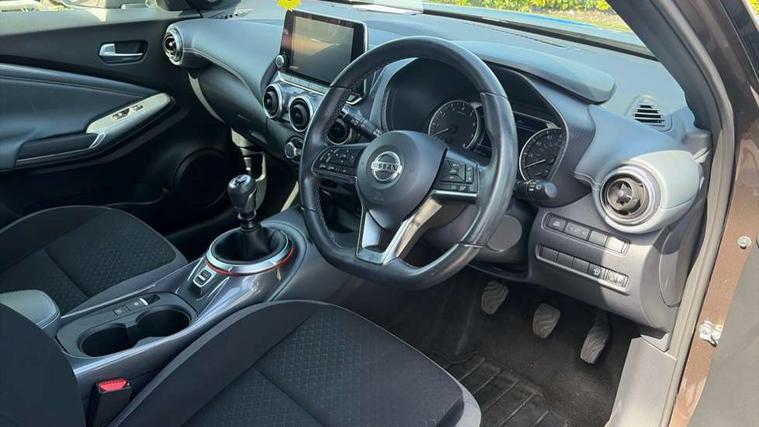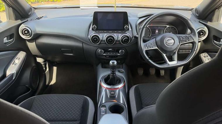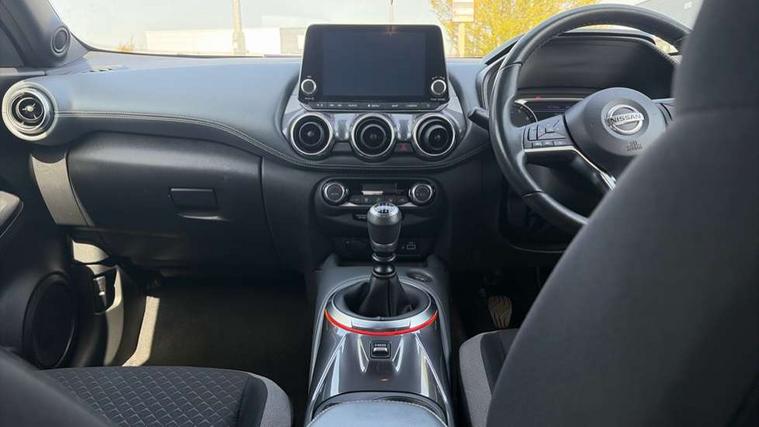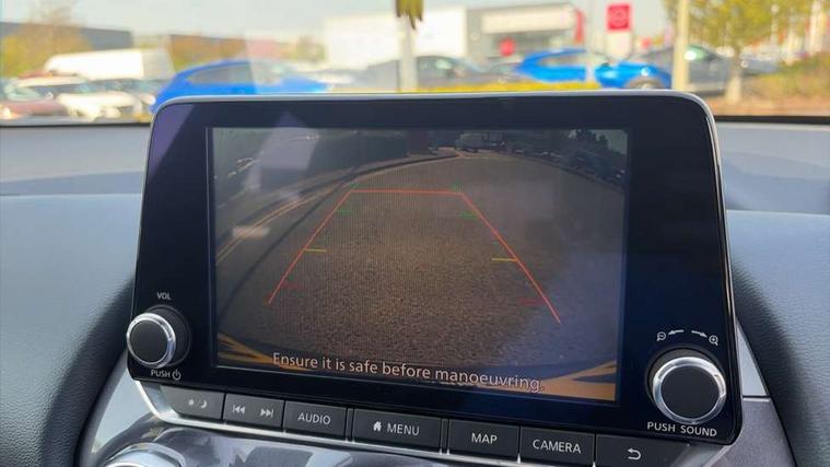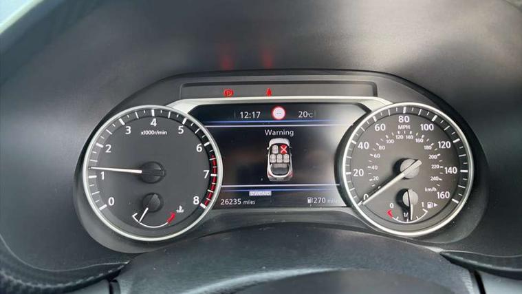 7" full colour TFT screen combimeter, 8" infotainment colour display with touch screen, Apple CarPlay and Google Android auto, Drive modes select (Eco, normal and sport), Emergency and breakdown call, Front parking sensor, Idle start/stop system, Intelligent lane intervention, Lane departure warning system, Nissan connect nav with TomTom traffic, Nissan connect services and Wifi connection, Outside temperature sensor, Power Steering, Rear parking sensor, Traffic sign recognition, Trip computer, Gasoline particulate filter, 6 speakers, Bluetooth system, USB, Aux-in and 12V socket, DAB Digital radio, Rear console USB port, Auto dimming interior rear view mirror, Automatic hazard signal with emergency stop signal, Body colour bumpers, Body colour door handles, Electrically adjustable door mirrors with integrated indicators, Follow me home headlights, Front and rear electric window with one touch driver and passenger window, Heated and auto folding door mirrors, High beam assist, LED daytime running lights, LED front fog lights, LED headlamps, LED rear fog lamp, LED rear lamps, Rain sensor windscreen wipers, Rear privacy glass, Rear spoiler, Rear wiper, Three blink turn signal, 3 height adjustable rear headrests, 60/40 split folding rear seat, Automatic climate control, Card holder on driver sunvisor, Cloth upholstery, Door ambient lighting, Driver and passenger sliding and reclining seats, Driver seat back pocket, Driver side rear coat hanger, Driver/passenger sunvisors and illuminated vanity mirrors, Front and rear cabin lights, Front armrest, Front door pockets with bottle holders, Front head restraints, Front/rear passenger grab handles, Gear console ambient circle lighting, Grey synthetic leather kneepad, Height adjustable driver's seat, Internal chrome door handles, Leather gearshift knob, Leather steering wheel, Luggage board, Luggage space lighting, Monoform sporty seats, Multifunction steering wheel, Passenger seat back pocket, Rear door bottle holders, Telescopic steering wheel adjustment, Two cupholders in front centre console, Two rear isofix child seat anchorage points with top tether, Voice recognition switch on steering wheel, Welcome light and console tray ambient lighting, ABS with EBD and brake assist, Active ride control, Active Trace Control, Driver and passenger airbags, Driver and passenger side airbags, Electric handbrake with auto hold function, Electronic Stability Programme (ESP), Front and rear curtain airbags, Height adjustable seatbelts, Hill start assist, Intelligent emergency braking with pedestrian and cyclist recognition, Seatbelt reminder for driver/front passenger and rear seats, Single tone horn, Three 3 point rear seatbelts, Traction control, Tyre pressure monitoring system, VDC Dynamic Vehicle Control, Ventilated rear brake discs, Alarm, Immobiliser, Intelligent Key with push button starter, Remote central locking,