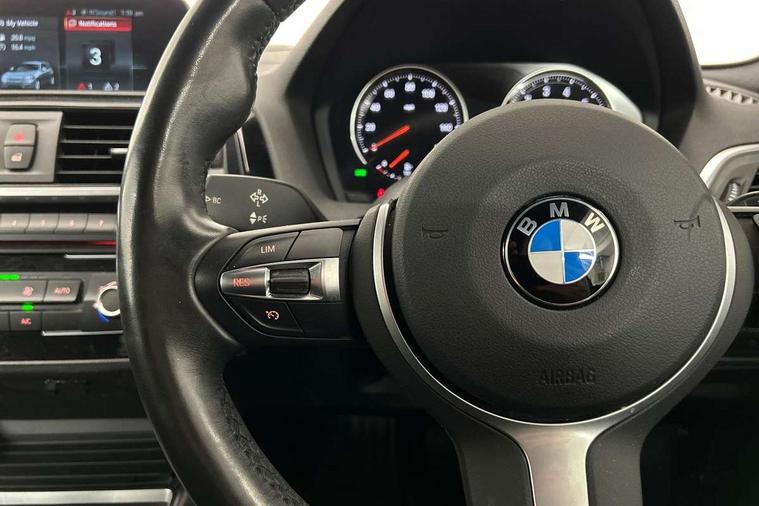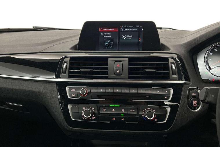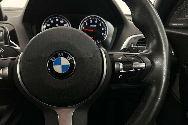 'Lights On' Reminder warning buzzer, BMW Online services, BMW remote services, BMW Teleservices, Brake force display, Cruise control with brake assist, Engine start/stop button, Oil level indicator, On board computer, On board diagnostics, Outside temperature display, Service interval indicator, Speed limiter, Drive Performance Control, BMW professional radio with CD player, DAB Digital radio, Harman Kardon HiFi loudspeaker system, Body colour bumpers, Body colour door handles, Body coloured door mirrors, Chrome kidney grille with black vertical slats, Dark chrome exhaust tailpipe, Electric front windows + one touch + anti-pinch, Electrically adjustable door mirrors, Follow me home headlights, Green tinted heat insulating glass, Heated door mirrors, Heated windscreen washer jets, M aerodynamic bodystyling, Rain sensor including auto headlights activation, Rear wash/wipe, Sun protection glass, Welcome lighting, 12V power socket in centre console, 12V power socket in passenger footwell, 2 grab handles, 60/40 split rear seats, Anthracite Velour floor mats, Door armrests, Door sill finishers with illuminated M designation, Driver/passenger sunvisors with ticket holders, Folding rear seat head rests, Front folding/sliding centre armrest with storage, Front head restraints, Front sports seats with electric side bolster adjustment, Front/rear courtesy lights with soft on/off dimming, Glovebox, Individual anthracite headlining, Isofix rear child seat preparation, Leather gear knob and handbrake grip, Load restraint lashing eyes, M sports leather steering wheel, Multifunction steering wheel with audio controls, Reach + rake adjustable steering column, Storage compartments in doors, ABS/EBD, Automatic Stability Control (ASC), BMW emergency call, Child locks on rear doors, Cornering brake control (CBC), Crash sensor, Driver/Passenger airbags (Impact dependent), DSC+, Dynamic brake control, Dynamic Traction Control - DTC, Front passenger airbag deactivation, Front side airbags, Hill start assist, ITS head airbags for front/rear, M Sport braking system, Pyrotechnically pre-tensioned front seatbelts, Seat belt force limiter, Three 3 point rear seatbelts, Tyre pressure monitor, Warning triangle and first aid kit, Automatic drive away locking facility, Electronic immobiliser, Remote central locking, Thatcham Cat.1 alarm, Run flat tyres,