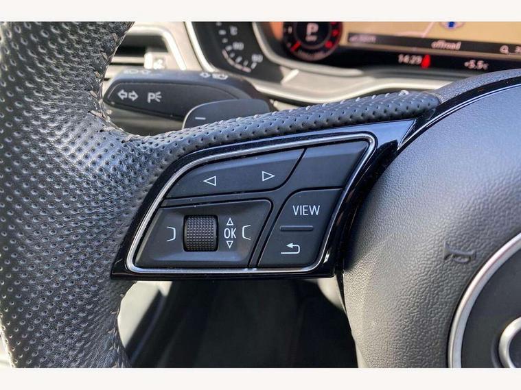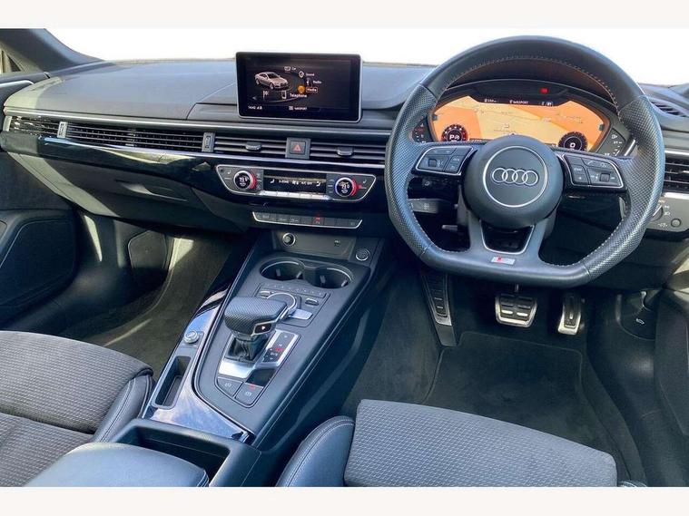 7" Colour driver information system, Audi connect, Audi drive select, Audi parking system plus with front and rear sensors, Audi smartphone interface, Automatic start-stop system with coasting functionality and efficiency programme, Bluetooth interface, Electric boot release, Electro-mechanical power steering, MMI Navigation, Service interval indicator, Voice control system, 2 x USB charging port with aux input socket, CD player, DAB Digital radio, Two SDXC card slots, Air inlets in titanium black with matt aluminium inlay, Auto dimming rear view mirror, Body colour bumpers, Chrome plated exhaust pipe, Electric adjustable heated door mirrors, Electric front windows, Front fog lights, High beam assistant, High gloss black door mirrors, Rain and light sensors, Rear diffuser in Twilight grey matt with honeycomb grille, S Line body styling, S line sill plates, S style high gloss black rear spoiler, Side and rear windows privacy glass, Titanium black frame and radiator grille, Titanium black front and rear air intakes, Titanium black window surround, Windscreen with acoustic glazing, 3 spoke flat bottom high multi-function leather steering wheel, 40/20/40 split folding 2 seater rear seat bench with rear centre armrest, Adjustable steering column, Black headlining, Black perforated leather gearknob, Centre console with cupholders, Contrast stitching on seats, steering wheel and gear lever gaiter, Deluxe 3 zone electronic climate control, Front centre armrest, Front head restraints, Front/rear floor mats, Gearshift paddles, Illuminated door sills, ISOFIX child seat mounting and top tether, Jack and tool kit, Luggage compartment mat, Rear headrests, S embossed logo on front sport seats, Stainless steel pedals and foot rest, Non Smokers pack, 6 airbags - Driver, front passenger, curtain and side airbags, Electromechanical parking brake, Electronic Stabilisation Control (ESC) including ABS, ASR and EDL, Front passenger airbag deactivation, Height adjustable front seatbelts, Hill hold function, Multi-Collision braking, Pop-up bonnet for pedestrian protection, Pre sense city, Seatbelt monitoring, Tyre pressure warning, Variable restraint system, Warning triangle and first aid kit, Anti theft alarm system, Anti theft wheel bolts, Immobiliser, Keyless Go, Remote central locking, Piano black finish inlay, 20" 5 arm rotor alloy design wheels with matt titanium finish, Tyre repair kit,
