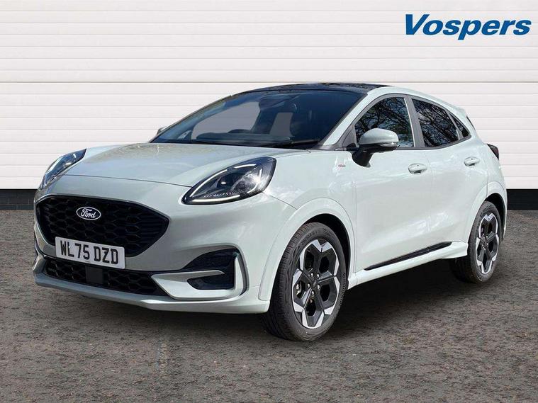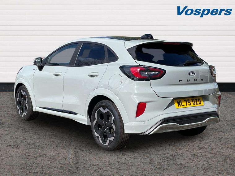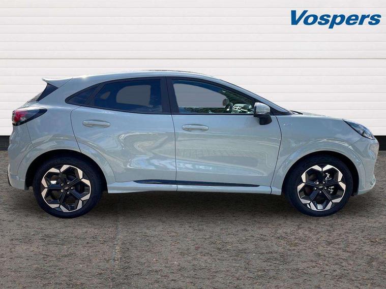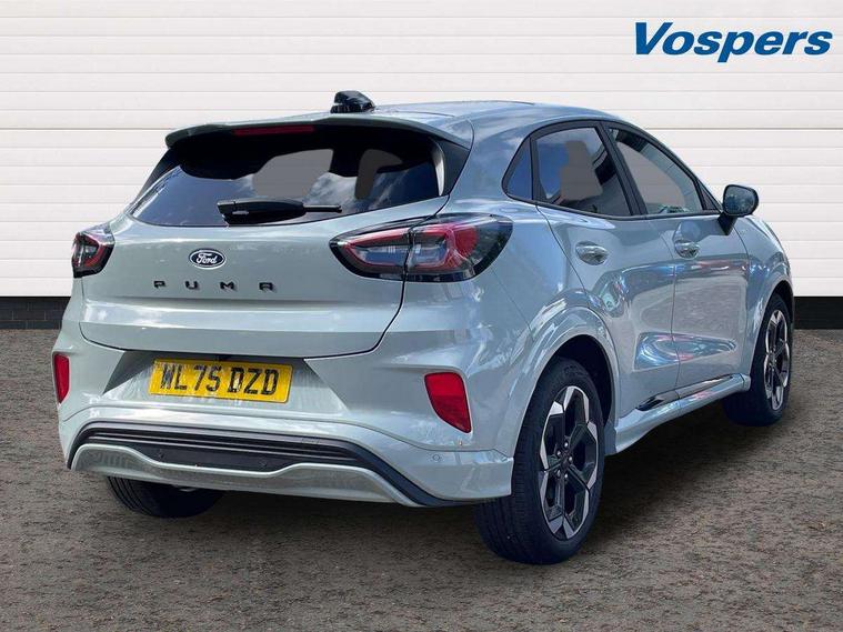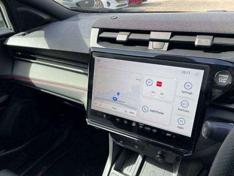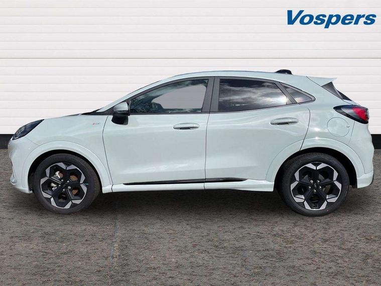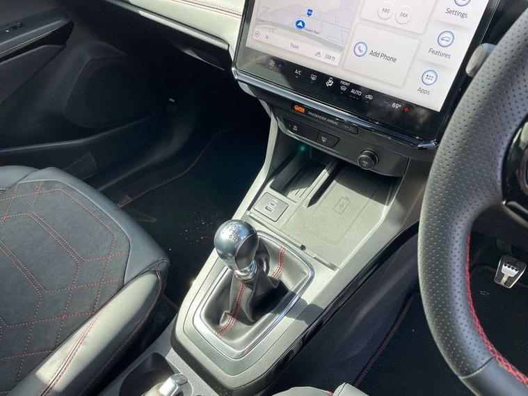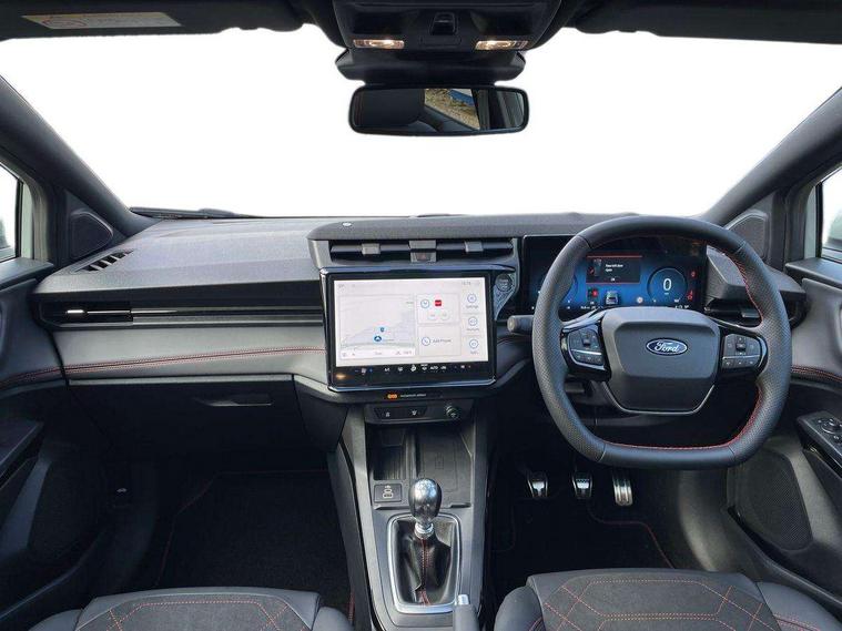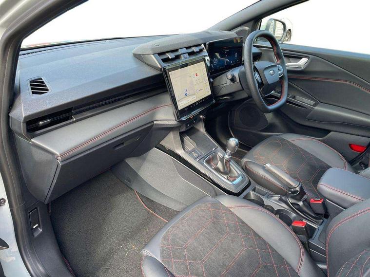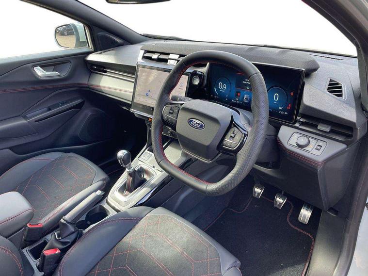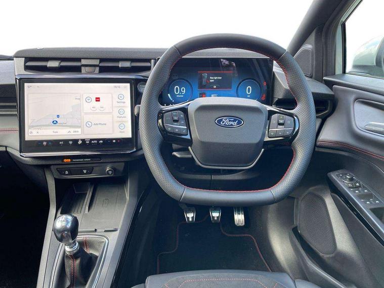 Driver impairment monitor, Emergency call service, Ford easy fuel, Full digital 12.8" instrument cluster, Lane keeping aid with lane departure warning, Power assist steering, Selectable drive modes(Normal, Eco, Sport, Slippery and Trail), Speed sign recognition, Sport suspension, 12" landscape touchscreen display with wireless apple car play and android auto premium B&O audio system with 10 speakers, Ford pass connect and emergency assistance, Ford SYNC4 with connected navigation, Automatic headlights with rain sensing wipers and auto high beam, Front fog lamps, LED daytime running lights, LED rear lamps, LED third brake light, Power foldable heated door mirrors with puddle lamps and puma logo protection, Quickclear heated windscreen, Rear privacy glass, Rear side wing doors, Rear wiper, ST-Line X body styling kit, 3 seat bench in 2nd row, 4 way lumbar support for passenger seat, Centre console with armrest and stowage, Electronic automatic temperature control (EATC), Ford megabox extended bootspace, Front and rear head restraints, Front floor mats, Manual 4 way driver seat adjust with lumbar adjustment, Single front passenger seat, ST-Line X Premium synthetic leather upholstery, Comfort pack with power lift tailgate - Puma, 3 rear seatbelts, Child safety lock, Electronic stability control (ESC) and hill start assist, Pre-collision assist with autonomous emergency braking, pedestrian/cyclist detection & post-collision braking, Tyre pressure monitoring system (TPMS), Thatcham alarm,
