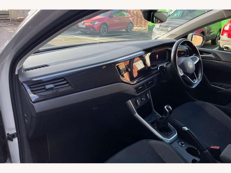Adaptive cruise control without follow-to-stop and speed limiter, Bluetooth mobile phone interface, Driver alert system, Emergency call service, Front assist system, Power assisted speed sensitive steering, Preparation for We connect and We connect plus, Speedo and rev counter, electronic odometer, trip, service interval display and fuel gauge, Standard rear axle, Travel Assist - Lane keeping system and traffic jam assist, Travel assist including emergency assist, Trip computer, Warning signal and warning light for front and rear seatbelts not fastened, Washer fluid level indicator, Wireless app connect, Front wheel drive, Rear shock absorpion, Start-stop system with battery regeneration (recuperation - energy recovery during braking), DAB Digital radio, Diversity antenna for FM reception, Front and rear 6 speakers, Automatic dimming interior rear view mirror, Body colour bumpers, Body colour door handles, Body colour door mirrors, Electric front windows, Heat insulating darkened glass in side and rear windows, Heat insulating glass windscreen, Power folding adjustable/heated exterior mirrors and front passenger exterior mirror lowering function, Rain sensor, Rear electric windows, Rear fog light, Rear side wing doors, Rear windscreen washer and wiper with interval delay, Third brake light, 12V power socket in centre console, 2 front and 2 rear reading lights, 2 USB-C ports in the front, 2 USB-C charging sockets on the center console in the rear, 3 rear head restraints, 60/40 split folding rear seat and rear seat bench not split, Ceramique headliner, Chrome plated radiator grille inserts, air vent surrounds and light switch surrounds, Door and side trim panel, Driver and front passenger seat height adjustment, Driver/passenger sunvisors with illuminated vanity mirrors, Front centre armrest, Front seat backrest storage pockets, Front standard seats, Handbrake lever handle in leather, Hartley/Thomas cloth upholstery, Isofix child seat preparation easy-fit (for two outer rear seats, and front passenger seat) compatible with I-size, Leather trimmed gear knob, Luggage compartment cover, Luggage compartment floor, Luggage compartment lighting, Multifunction steering wheel, Single front passenger seat, Standard pedal cluster, Light and vision pack - Polo, 3 point height adj front seatbelts + pretensioners, 3x3 point rear seatbelts, ABS, Driver and front passenger airbag with front passenger airbag deactivation, Drivers and front passengers safety optimised head restraints, ESC (Electronic stability control) + EDL (Electronic Differntial lock) and ASR (Traction control), Extended and predictive pedestrian/ cyclist protection, Front curtain and side airbags with center airbag, Front disc brakes, Hill hold control, Manual child lock in rear doors, Rear drum brakes, Single tone horn, Tyre pressure loss indicator, Alarm with interior protection, Anti-theft alarm system with interior monitoring, backup horn, and towing protection, Anti-theft wheel bolts, Electronic engine immobiliser, Lava stone black gloss/matt decorative inserts in dash and front door panels, Low rolling resistance tyres,