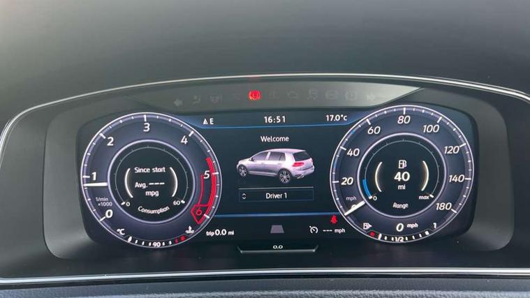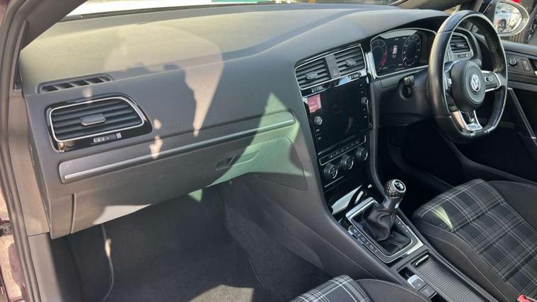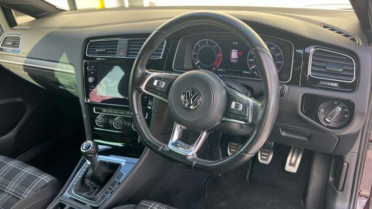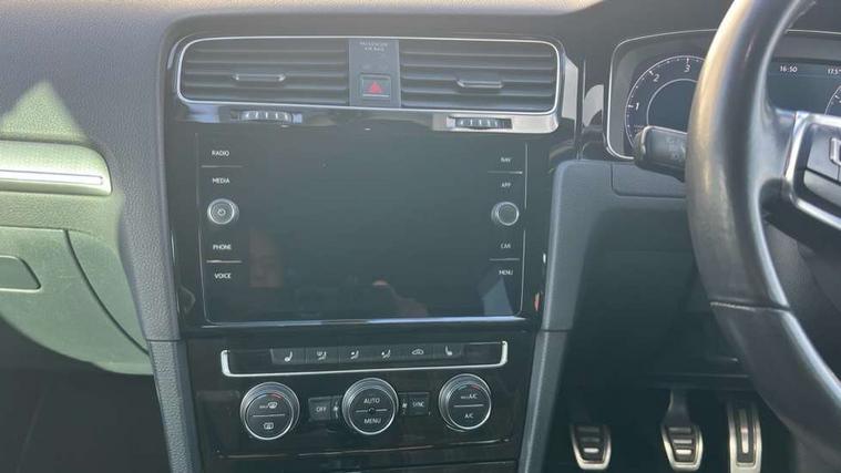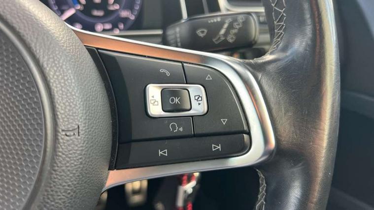 'Lights On' Reminder warning buzzer, 8" touch screen, Adaptive Cruise Control with pedestrian detection and speed limiter, App-Connect, Bluetooth hands free telephone connection, Brake pad wear indicator warning light, Drive mode selector, Driver alert system, Driver profile selection, Exterior temperature gauge, Instrument cluster in white, Multifunction computer, Progressive power assisted steering, Rev counter, Trip and service interval display, Ultrasonic front and rear optical and audible parking sensors, Warning buzzer and light for front seatbelts unfastened, Anti-tramp function, Diesel particulate filter, Lowered sports suspension, XDS plus electronic differential lock, CD/MP3/WMA, USB and SD card reader, aux-in, Composition media system, DAB Digital radio, 3D-LED-SBBR with sweeping indicator, Auto dimming rear view mirror, Automatic coming/leaving home lighting function, Automatic headlights, Black rear diffuser, Body colour door handles, Body colour door mirrors, Body colour rear roof spoiler, Body colour sports bumpers, Electric front windows, Electric rear windows, Electrically adjustable and heated door mirrors, Heated rear windscreen, Honeycomb radiator grille - black, LED daytime running lights, LED front fog lights, LED rear lights, Rain sensor, Rear windscreen washer and wiper with interval delay, Twin exhaust tailpipe, 12V socket in luggage compartment, 3 rear headrests, 3 spoke steering wheel, 60/40 split folding rear seat, Air conditioning - 2 zone electronic climate control, Bag hook in luggage compartment, Black headlining, Boot lashing points, Cooled glovebox, Courtesy light delay, Cover for storage compartment in centre, Dust/pollen filter, Front + rear carpet mats, Front centre armrest with storage box and rear air vents, Front passenger drawer stowage, Front passenger seat height adjust, Front seat back storage pockets, Grab handles, Height adjustable driver's seat, Height/reach adjust steering wheel, Illuminated door sills, Illuminated vanity mirrors, Isofix preparation for 2 rear child seats, Leather gear knob and handbrake grip, Load through provision with rear centre armrest and cupholders x2, Luggage compartment cover, Luggage compartment lighting, Multifunction leather steering wheel with grey stitching leather trimmed gear knob including paddle shift, Overhead storage box, Stainless steel pedals, Storage box in luggage compartment, Storage compartments in doors, Sun visors, Variable boot floor, height adjustable and removable, Ambient lighting pack - Golf, Mirror pack - Golf, 3 point height adj front seatbelts + pretensioners, 3 rear 3 point seatbelts, ABS, Automatic post collision braking, Child locks on rear doors, Driver/Front Passenger airbags, Driver/Passenger whiplash optimised head restraints, Drivers knee airbag, Electronic parking brake with auto hold, ESP with EDL + ASR, Front and rear curtain airbags, Front passenger airbag deactivation, Front side airbags, Pre crash system, Tyre pressure monitor, Alarm with interior protection, Electronic engine immobiliser, Remote central locking with 2 remote folding keys, Chrome-plated light switch surround, Honeycomb black decorative inserts, Piano black centre console, Space saver spare wheel,