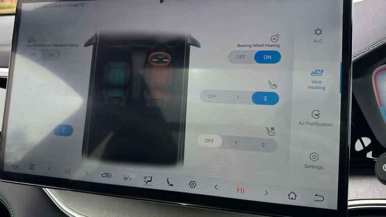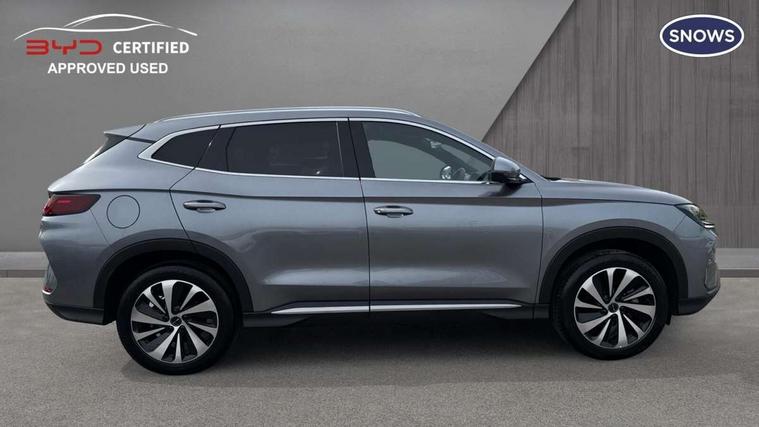 12.3" TFT full LCD instrument panel, 360 camera, Adaptive Cruise Control (ACC) and Intelligent Cruise Control (ICC), Automatic vehicle hold, Blind spot detection, BYD voice control assistant "Hi, BYD", Controller Deceleration Parking (CDP), Drive mode select (Eco, normal, sport, snow), e-Call (emergency call), Electric tailgate release, Emergency Lane Keeping Assist (ELKA), Forward collision warning, Front and rear parking sensors, Front cross traffic alert and front cross traffic brake, Head up Display, Indirect driver fatigue management, Intelligent Speed Limit Control (ISLC), Keyless system entry and start, Lane change assist, Lane Departure Assistant (LDA) and Lane Departure Warning (LDW), Lane departure prevention, PAS, Predictive collision warning, Rear collision warning, Rear cross traffic alert and rear cross traffic brake, Rollover Control System (RMI), Smartphone wireless charging, 2 x 15W, Traffic sign recognition (TSR), Vehicle-to-Load (V2L) function, 11kW on board charger, Mode 3 Type 2 charging cable (3 phase), V2L (Vehicle to load) power strip - Type F, 15.6" Electrically rotatable touchscreen, FM/DAB+ radio, Front USB ports, 1 x 18W Type C, 1 x 60W Type C, Infinity sound system with 10 speakers, Rear USB ports, 2 x 18W Type C, Aluminium roof rails, Auto dimming interior rear view mirror, Auto headlamps (on/off), Dynamic welcome lights, Electric folding and heated door mirrors, Emergency tow hook, Exterior mirror footlights, Follow me home headlights (The headlights turned on in advance and delayed off function), Front windscreen, UV protection, thermal insulation and sound proofing, High beam assist, LED 3rd brake light, LED daytime running lights, LED Headlights, LED taillights, One touch electric front/rear windows with pinch protection, Panoramic sunroof with anti-pinch sensor and electrically adjustable sunshade, Rain sensor windscreen wipers, Rear fog lights, Rear side wing doors, Rear window and rear windscreen with tinted glass, Rear wiper, 12V power outlet, 3 seat bench in 2nd row, 8 way electrically adjustable drivers seat, Adjustable rear headrests, Boot parcel shelf, Driver and passenger sunvisors with illuminated vanity mirrors, Driver seat memory function, Front centre armrest with 2 cupholders, Front LED reading lights, Front passenger seat with 4-way electric adjustment, Front seat footlights, Heat pump, Heated front seats, Heated steering wheel, Integrated headrest in front seats, ISOFIX and i-Size for front passenger and outer rear seats, LED front door lights, Nylon floor mats, PM2.5 air filter, PM2.5 air purification system, Rear air vents, Rear armrest with 2 cupholders, Rear side LED reading lights, Rhythm-reactive multi-colour ambient lighting, Single front passenger seat, Split folding rear seats - 40/60, Vegan leather multifunction steering wheel, Vegan leather upholstery, Ventilated front seats, 3x3 point rear seatbelts, ABS/EBD, Automatic emergency braking system, Brake override system (BOS), Child presence detection, Comfort stop, Door open warning, Driver airbag, Electric parking brake, Force limiting pre-tensioned front seat belts, Front centre airbag, Front passenger airbag, Front passenger airbag deactivation, Front side airbags, Hill descent control, Hill hold control, Hydraulic Brake Assist (HBA), Hydraulic brake boost, Mechanical child safety lock, Rear middle seat force limiting seat belt, Rear seat belt pretensioners, Reflective vest, Side curtain airbags, Traction control system (TCS), Tyre pressure monitoring system (TPMS), Vehicle Dynamics Control System (VDC), Warning triangle, 2 x Smart keys, Anti theft alarm system, Automatic door locking, 19" Bi-colour alloy wheels, Tyre nut covers remover, Tyre repair kit,