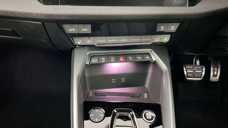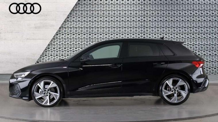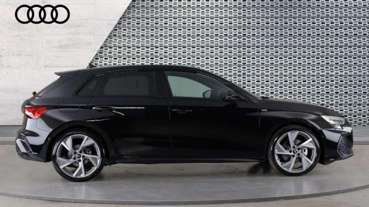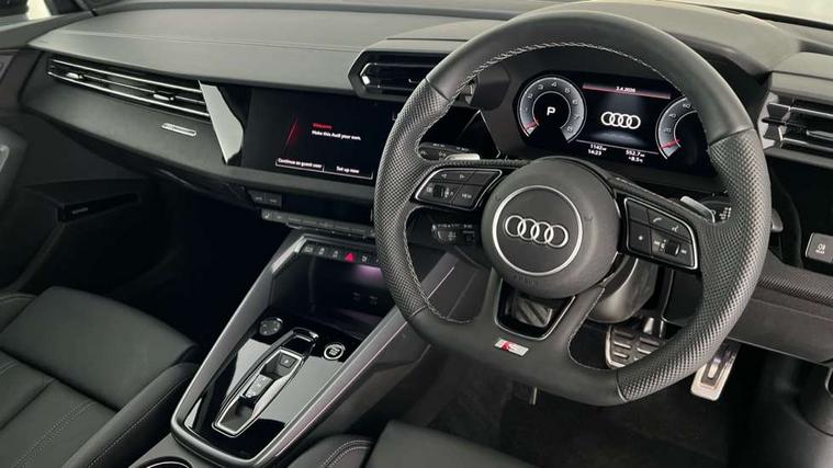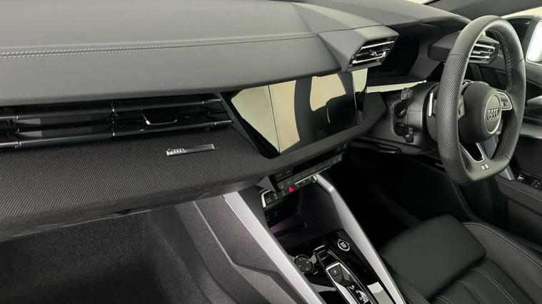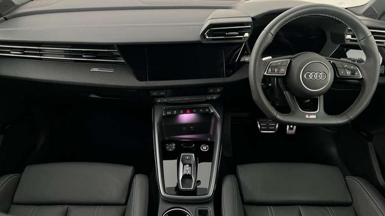 Adjustable speed limiter, Audi drive select, Audi smartphone interface with app store includes wireless Apple carplay, Android auto and Amazon alexa integration, Audi virtual cockpit plus - 12.3" full HD resolution dynamic digital instrument cluster, Automatic start/stop system with recuperation, Bluetooth interface, Camera based traffic sign recognition, Collision avoidance assistant, Cruise control, Distraction and Fatigue warning, e-Call (emergency call), Electromechanical power speed sensitive steering, Emergency assist, Lane departure warning system, MMI Navigation Plus with high resolution 10.1" colour touch screen display, Park Assist with parking system Plus, Service indicator, Tailgate, Trip computer, Voice control system with natural language interaction, Sports suspension, Audi Phonebox light with wireless charging, Audi sound system - 10 loudspeakers including centre loudspeaker and subwoofer, DAB Digital radio, USB ports with charging function in the rear, Acoustic glass windscreen, All weather light, Anthracite grey Audi rings (front and rear), Audi beam uses LEDs to project the Audi logo onto the ground as you exit your A3, Auto dimming frameless rear view mirror, Automatic dynamic range control, Black accents front and rear bumpers, Black accents in the area of the Audi single frame grille, Black accents window trims strips, Dipped beam, main beam, position light and turning light, Electrically adjustable/heated/folding/auto dimming door mirrors with integrated LED indications + kerb view function for passenger side, Exterior model badging, Front and rear side air inlets in grained matt black with dark liquid chrome frame, Front electric windows, Heat insulating glass windscreen, Illuminated door sills with aluminium inserts at the front with S logo, Intersection light, LED 3rd brake light, LED brake lights, LED daytime running x3, LED headlights with LED rear lights and dynamic rear indicators, LED rear number plate lights, LED reverse light, LED tail lights, Light and rain sensors, Manoeuvring light, Motorway light, Privacy glass - dark tinted rear window, rear door and side windows, Rear diffuser and grill in grained matt black with inlay in dark liquid chrome, Rear electric windows, Rear side wing doors, Rear wiper, S roof spoiler, Static cornering light, 12V socket and storage compartment in front centre console, 3 seat bench in 2nd row, 3 spoke flat bottomed leather multifunction sport steering wheel with gear shift paddles, 3-zone deluxe automatic air conditioning, 4 way electrically adjustable lumbar support for driver and front passenger, 40/20/40 split folding rear seat bench, Black cloth headlining, Black front and rear floor mats, Front and rear centre armrest in artificial leather with contrasting stitching on armrests and instrument panel, Front and rear headrests, Heated front seats, Height and reach adjustable steering wheel, Manual boot compartment lid, Manually adjustable front seats, Rear centre armrest with cupholder, S badging on the steering wheel, Seat side bolsters, Single front passenger seat, Stainless steel pedals and front footrest in black, Twin leather upholstery with front sports seats S embossed logo, Aluminium interior elements pack - A3, 3x3 point rear seat belts, Driver and front passenger airbag with passenger airbag deactivation, Electronic Stabilisation Control (ESC) including ABS, ASR and EDL, First aid kit with warning triangle and 2 safety vests, Front side airbags with head airbags and interaction airbag, Hill hold assist, Pre-sense front with pedestrian and cyclist detection, Seatbelt monitoring, Tyre pressure loss indicator, Anti theft alarm, Anti-theft wheel bolts, Electronically operated child locks, Immobiliser, Remote central locking with safelock, Black dashboard,
