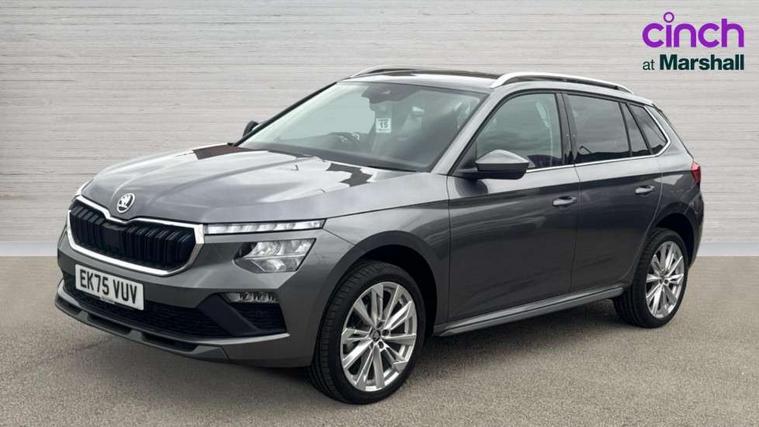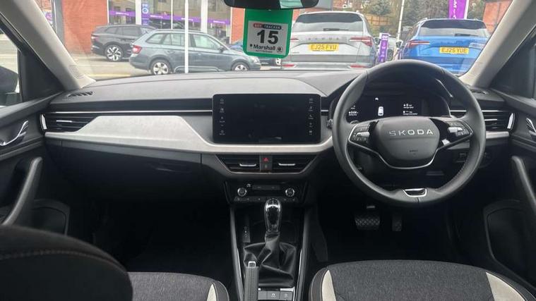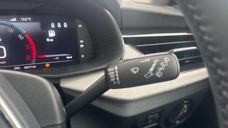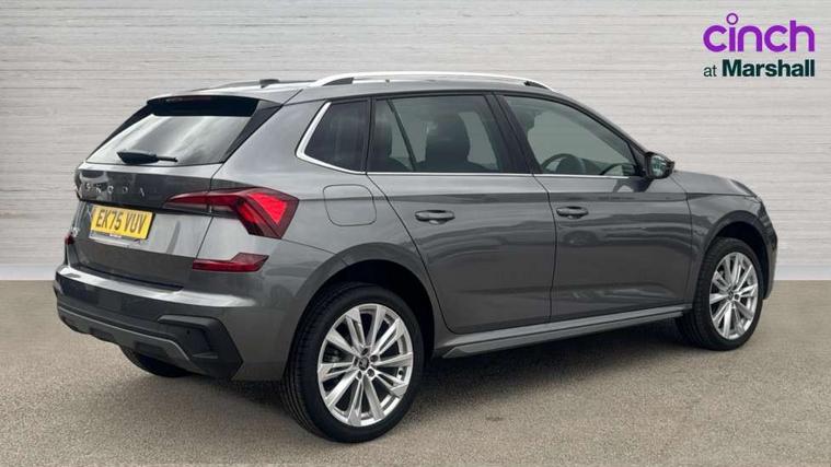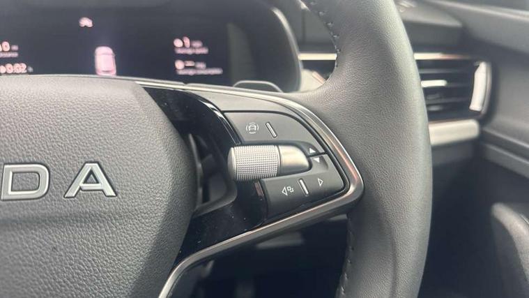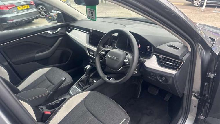 Advanced driver attention and drowsiness monitor, Bluetooth system, E-call, Front assist system, PAS, Rear parking sensors, Rear view camera, Service indicator, Speed limiter, Traffic sign recognition, Virtual cockpit with 10.25" display, Voice control system, Wireless smartlink, 4 USB C ports, 8 Speakers, 9.2" Skoda navigation display, DAB Digital radio, Auto dimming rear view mirror, Automatic headlight control with coming home and leaving home feature, Body colour bumpers, Body colour door mirrors and handles, Chrome grille surround, Chrome roof rails with chrome window surround, Front and rear electric windows, Heated rear window, LED daytime running lights, LED high beam, LED low beam, LED third brake light, Light sensors, Privacy glass, Rear side wing doors, Rear wiper, Ticket holder inside windscreen, 12V socket in luggage compartment, 3 seat bench in 2nd row, Accent black door inserts, Ambient lighting in white/red, Cargo elements, Chrome inner door handles, Copper hotstamping, Driver and passenger sun visors with vanity mirror, Dual zone climate control, Front and rear roof lights, Front centre armrest, Front head restraints, Glove compartment with illumination, Height adjustable driver seat, Height adjustable front passenger seat, Ice scraper, Inner circulation control with pollen filter, ISOFIX on front passenger seat, Isofix preparation for back seats, Leather gearknob and handbrake lever, Lodge cloth upholstery, Manual lumbar support for front seats, Net package and top tether hooks in boot space, Net under rear shelf, Overhead glasses storage compartment, Pocket on the back of both front seats include mobile phone pockets, Rake/reach adjustable steering wheel, Reading lights, Rear centre armrests, Single front passenger seat, Suedia grey decor inserts, Textile floor mats, Third rear headrest, Top tether for front passenger seat, Umbrella in driver's door, Convenience pack - Kamiq, 3x3 point rear seatbelts, Airbags - driver and front passenger, Disc brakes, ESP, Extended and predictive pedestrian/cyclist protection, Front passenger airbag deactivation switch, Front side airbags with curtain airbags, Hill hold control, Manual leather parking brake, Manual rear child locks, One tone horn, Seatbelt reminder for driver an co-driver, Traction control, Tyre pressure monitor, Anti-theft alarm system with interior monitoring, backup horn, towing protection and remote central locking with SAFE system, Anti-theft wheel bolts, Electronic engine immobilizer,