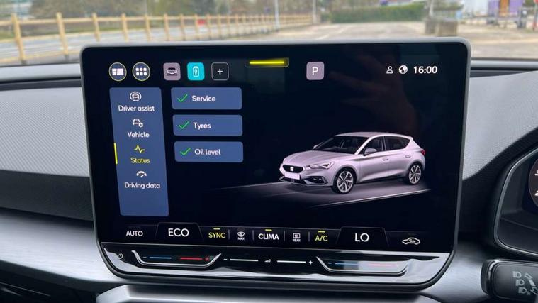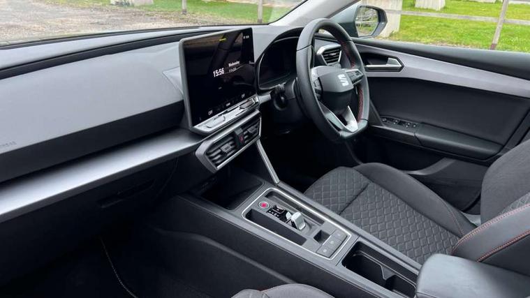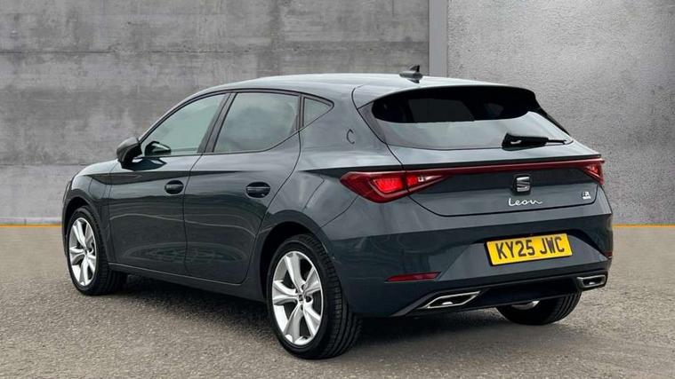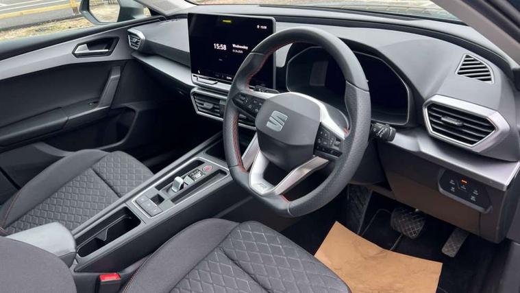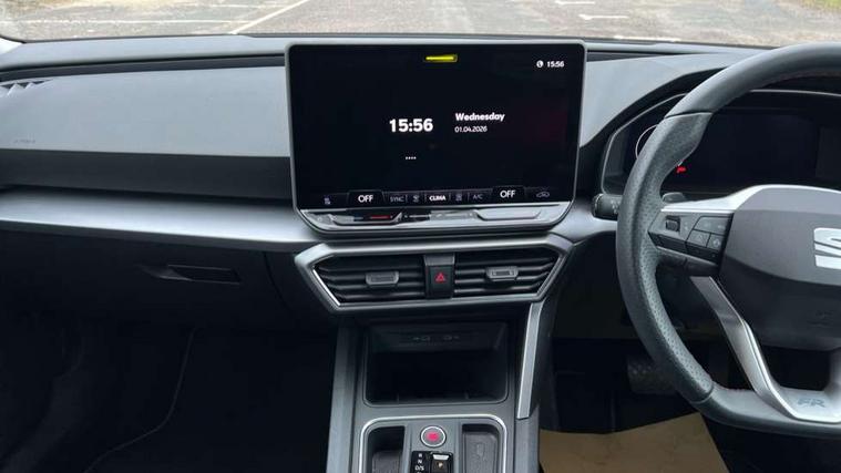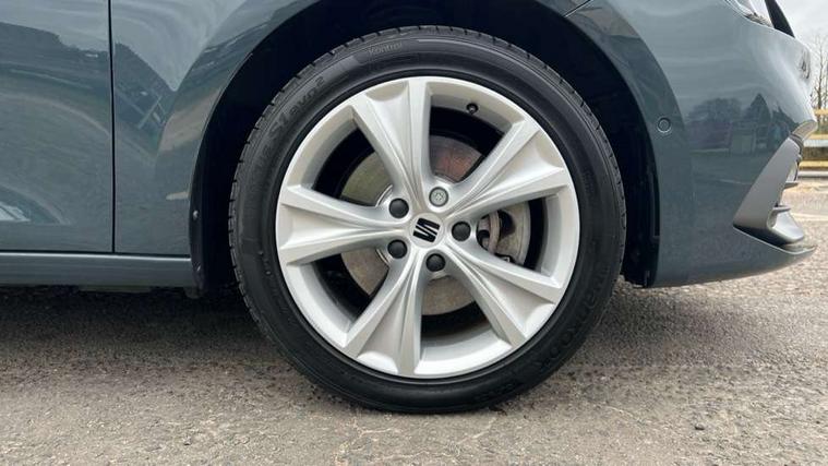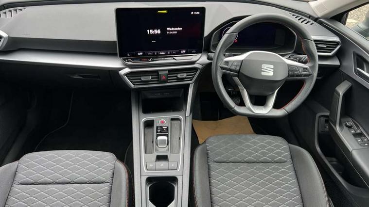 Digital cockpit with multifunction display, Driver attention alert with drowsiness warning, E-call, Front assist with forward collision warning braking reaction to vehicles, pedestrians and cyclists, Full link smartphone integration with Mirror Link, wireless Apple CarPlay and wired Google Android Auto, Intelligent speed assist, Lane assist, Lockable tailgate, Park assist (inc front/rear parking sensors), Power assisted speed sensitive electro-mechanical steering, Rear view camera, RPM, trip computer, outside temp gauge, instrument light brightness, low fuel warning light, lights on reminder, gearshift indicator, SEAT drive profile with 4 modes (Eco/Normal/Sport/Individual), throttle response and gearshift mode, Service interval indicator, Start/stop system with regenerative braking, Wireless phone charging, 10 amp mode 2 charging cable, 16 amp mode 3 charging cable, XDS electronic differential lock and dynamic traction support, 2 front and 2 rear USB-C ports, 7 speakers, Auxiliary input socket, Auto dimming rear view mirror, Body colour door handles, Body coloured bumpers, Cosmo grey exterior mirrors with integrated LED indicators, Dark tinted rear windows, Electric front/rear windows, Electrically adjustable, heated and folding door mirrors, FR sports bumper, Illuminated front door sill, LED front fog lamps, LED headlights and infinite rear tail lights, LED rear fog lamp, Rear side wing doors, Rear wash/wipe, Separate daytime running light with automatic headlight control and coming home feature, Third brake light, Welcome light silhouette from exterior mirrors, Windshield wiper intermittent control with light/rain sensor, 12v power point in centre console, 3 seat bench in 2nd row, 60/40 split rear bench seat with armrest, Ambient lighting with glovebox, footwell and single monocolour, Driver/passenger manual seat height adjustment, Dust/pollen filter, Folding boot cover, Front and rear height adjustable headrests, Front and rear reading lights X 4, Front centre armrest, Front seatback storage pockets, Grey headlining, Height/reach adjust steering wheel, ISOFIX points in outer rear seats with top tether anchorage points, Luggage tie-down hooks, Lumbar adjustment for front seats, Single front passenger seat, Sunvisors with covered illuminated mirror, Three zone climate control, Two tone cloth upholstery, Media system plus with navigation - Leon, 3 point seatbelts on all rear seats, ABS, Brake control system - ESC and brake booster, Child proof door locks, Driver and front passenger airbags with front passenger airbag de-activation, front side and curtain airbags, Electronic parking brake, Extended safety system - seat belt tensioner, window closure and hazard lights, Hill hold control, Rear disc brakes, Seat belt reminder for front and rear seats, Tyre pressure monitoring system, Anti theft alarm system with interior monitoring in cab, backup horn and towing protection, KESSY Go (Keyless start), Locking wheel bolts, Chrome interior detailing, 17" Dynamic Bi-spoke alloy wheels with 91W tyres, Emergency tyre repair kit, Tool kit,
