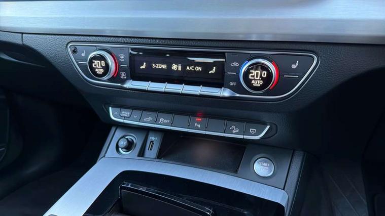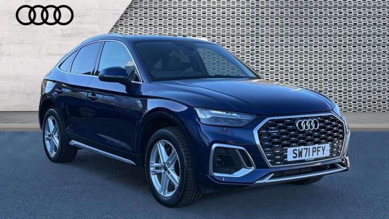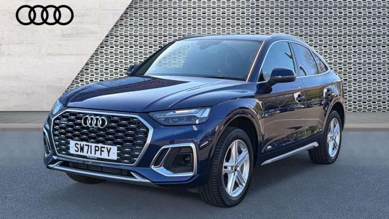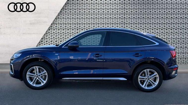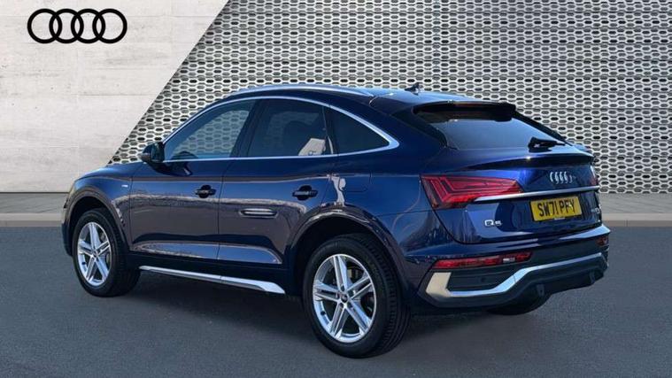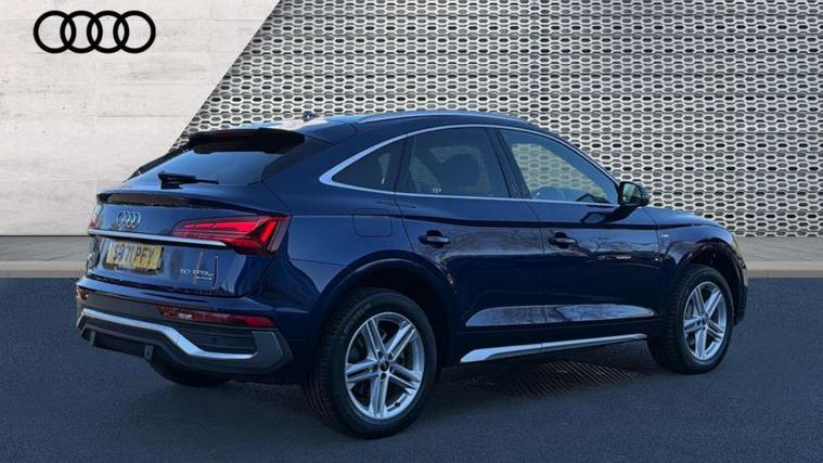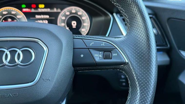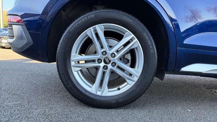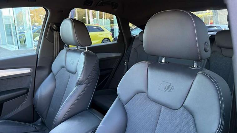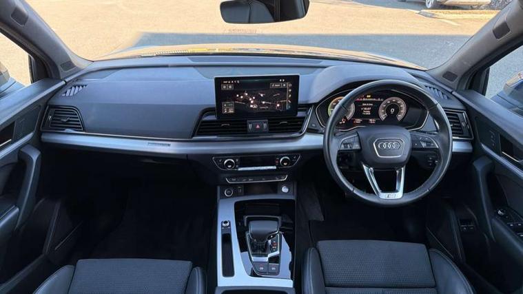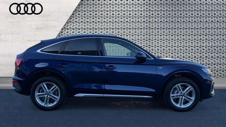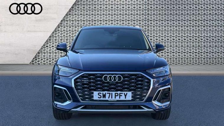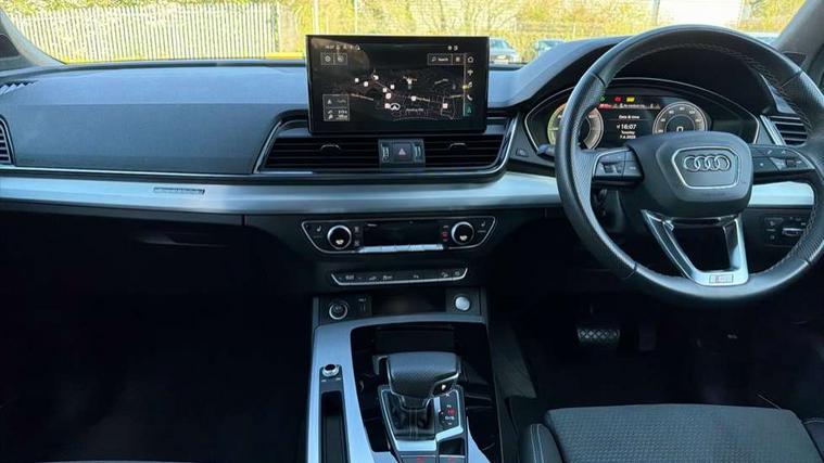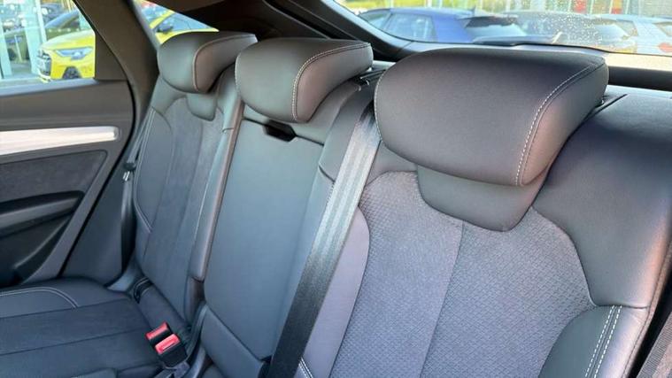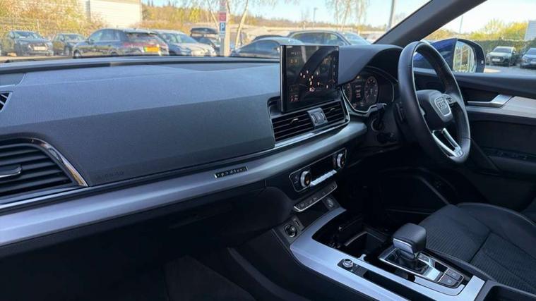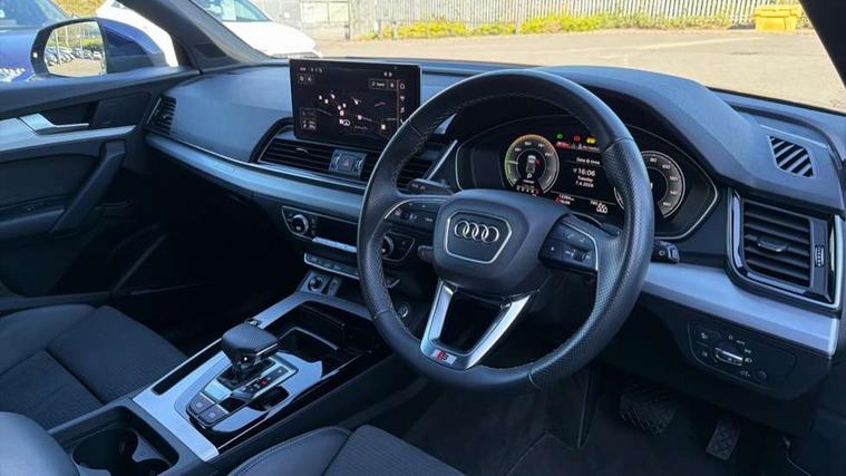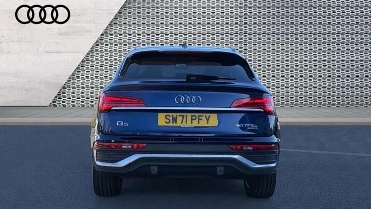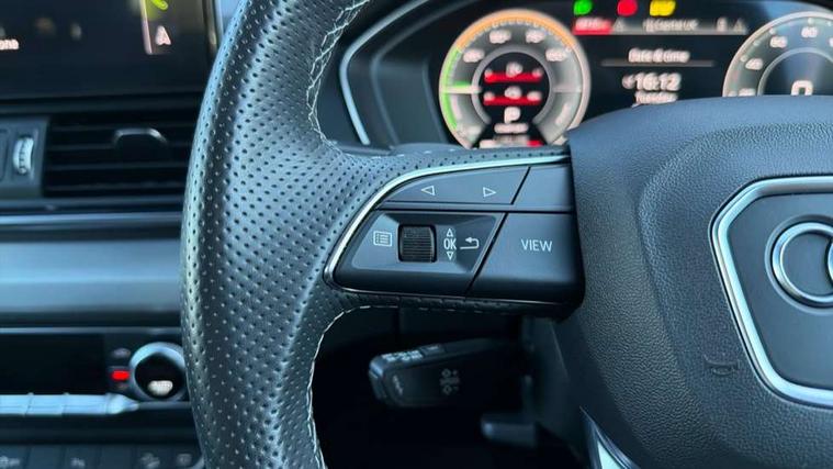 Audi connect safety and service (e-call), Audi connect with Amazon Alexa Integration, Audi drive select, Audi virtual cockpit plus with 12.3" screen and three different layout designs, Audi wireless smartphone interface, Automatic start-stop system with coasting functionality and efficiency programme, Bluetooth interface, Electro - mechanical power assisted steering, MMI navigation plus with 10.1" touch screen, Power tailgate, Reversing camera, Service interval indicator, Voice control system with Audi hotword activation "Hey Audi", 3 pin 10 amp domestic charging cable, Dynamic suspension, Quattro on demand, Type 2 mode 3 22kW 32 amp charging cable, Type 2 socket for AC charging, DAB Digital radio, Acoustic windscreen, Aluminium roof rails, Audi matrix LED headlights with dynamic front and rear indicators, Auto dimming rear view mirror, Automatic headlights and windscreen wipers, Body colour bumpers, Body colour door mirrors, Body colour rear diffuser with matt aluminium silver surrounds, Body colour underbody protection, Chrome plated exhaust trims, Door sills in Selenite silver, Electric adjustable/heated/folding door mirrors, Front air inlet surrounds in aluminium, Front and rear electric windows, Front radiator grille in honeycomb design, Headlight washers, Lower bumpers painted in contrast Manhattan grey, Rear chrome trim strip below lights, Rear privacy glass and rear side windows, Rear spoiler, Rear wiper, Roof bars, S Line badges on the front wings, S Line front and rear bumpers, S Line side skirts, 2 x USB charging port with aux input socket, 3 rear headrests, 40:20:40 split folding rear seat with rear centre armrest, Black cloth headlining, Comfort front centre armrest, Contrast stitching on seats, steering wheel and gear lever gaiter, Deluxe 3 zone electronic climate control, Front/rear floor mats, Gear lever in black leather, Heated front seats, Height adjustable front head restraints, Height/reach adjustable steering column, Illuminated door sill trims with S logo, ISOFIX child seat mounting and top tether, Manual seat adjustment with 4-way electric lumbar support, Rear seat bench plus, Sunvisors with vanity mirrors, Trunk roller cover, High gloss pack - Q5, LED interior light pack - Q5, 3 point seatbelts on all seats, 6 airbags - Driver, front passenger, curtain and side airbags, Electrically operated child locks on rear doors, Electromechanical parking brake, Electronic stabilisation control including ABS, ASR and EDL, Front passenger airbag deactivation, Hill descent control, Hill hold assist, Multi collision brake assist, Pop-up bonnet for pedestrian protection, Pre sense city, Seat belt force limiter, Seatbelt monitoring, Tyre pressure warning, Warning triangle and first aid kit, Anti theft alarm, Anti-theft wheel bolts, Keyless Go access/ignition system, Matt brushed aluminium inlays, Tool kit, Tyre repair kit,