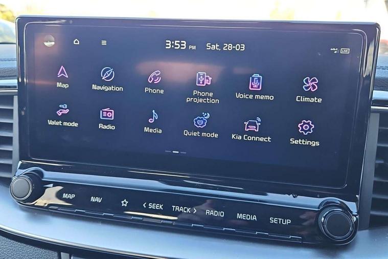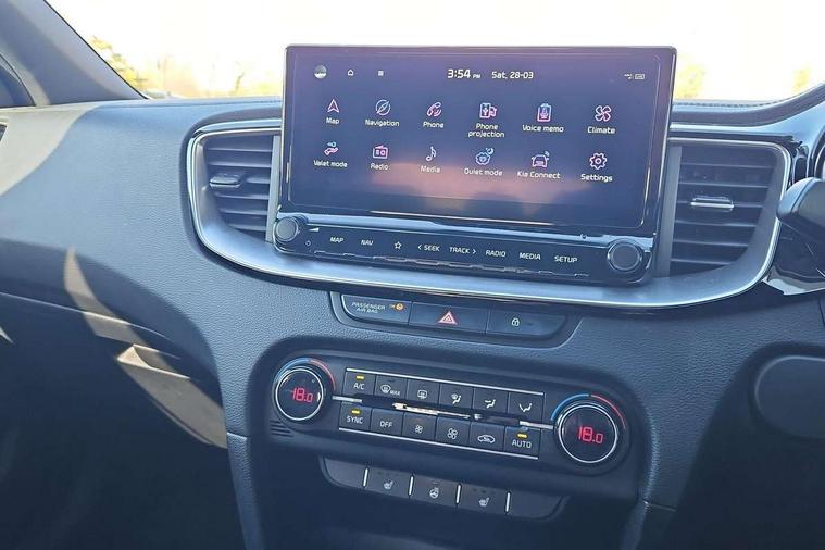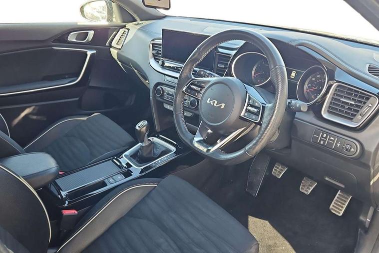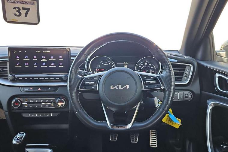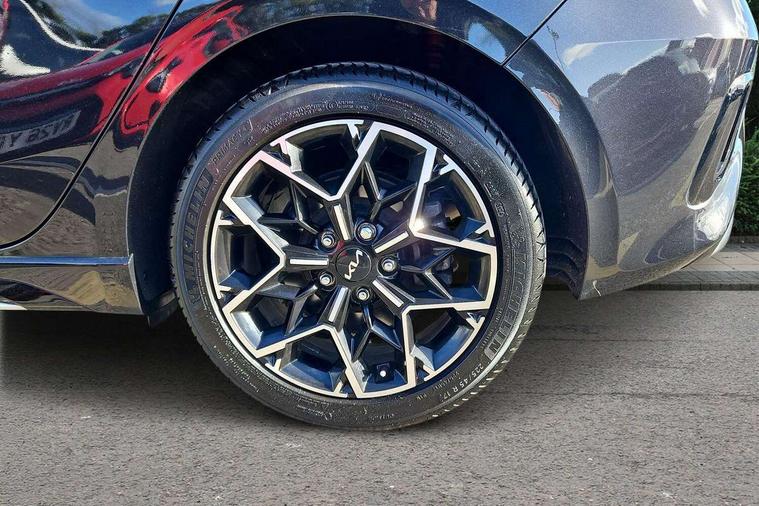 10.25" touchscreen satellite navigation, 4.2" supervision colour cluster display, Apple car play/Android Auto with voice control, Bluetooth with Voice Recognition & Music Streaming, Cruise control + speed limiter, Driver Attention Warning (DAW), Emergency call service, Emergency stop signalling system, Forward Collision-Avoidance Assist (FCA) - City/Pedestrian/Cyclist, Kia connect UVO, Lane Following Assist (LFA), Lane keep assist, Manual speed limit assist, Motor driven power steering, Rear parking sensor, Reversing camera system with dynamic guidelines (Integrated into centre fascia screen), Trip computer, Intelligent Stop and Go, 6 speaker audio system, DAB Radio with MP3, Illuminated USB ports, Steering wheel mounted controls, USB Fast Charger in Front Centre Console, USB port for connection of a media device, All-round Electric Windows with Front Auto Up & Down Function, Auto dimming rear view mirror, Automatic defog system, Automatic headlights control, Body colour bumpers, Body colour exterior door handles, Body coloured and dark chrome rear skid plate, Body coloured side sill mouldings, Dark chrome window surround, Electric adjustable/heated/folding door mirrors with LED Indicators, Heated rear window with timer, High beam assist, High gloss black and dark chrome radiator grille, High gloss black door mirrors, High Gloss Black rear spoiler, LED daytime running lights, LED front fog lights, LED Headlights, LED High-mounted Brake Light, LED honeycomb rear light, LED rear combination lights, LED rear fog light, Privacy glass (rear side windows and tailgate), Rain sensing front wipers, Rear side wing doors, Rear wash/wipe, Satin chrome dual exhaust trim, Tinted glass, Wide view drivers door mirror, Windscreen Washer Level Warning, 1 x Front 12V socket, 12V power socket in luggage compartment, 3 seat bench in 2nd row, 3 x passenger assist grips, 60/40 split folding rear seat, All-round height adjustable headrests, Aluminium pedals, Black headlining, Centre console storage box/armrest, Cloth/faux leather upholstery, Cupholders in centre console, Cupholders in rear armrest, Dash illumination dimmer switch, Door courtesy lamps, Driver & Front Passenger Sunvisors with Vanity Mirror Illumination & Ticket Holder, Driver + front passenger electric lumbar support, Driver's seat height adjuster, Dual Height Luggage Area Floor, Dual zone automatic air conditioning, Faux leather door centre trim, Front and rear door storage, Front cabin map light with sunglasses case, Front Passenger Seat Height Adjuster, Front seat back pockets, Gear shift indicator, Heated front seats, Heated steering wheel, Interior door lock/unlock function, ISOFIX Child seat top tethers and anchor fixings, Leather D-Cut steering wheel, Leather handbrake, Luggage area light, Luggage area parcel shelf, Luggage hooks, Rear centre armrest, Rear coat hooks, Satin chrome interior door handles, Single front passenger seat, Tilt/telescopic adjustable steering wheel, All round 3-point seatbelts, Anti-lock braking system (ABS), Brake assist system, Dual front side airbags, Dual horn, EBD - Electronic brakeforce distribution, Electronic parking brake, Electronic stability control (ESC) and vehicle stability management (VSM), Front passenger airbag cut-off switch, Height adjustable front seatbelts, Hill start assist control (HAC), Impact sensing auto door unlocking, Rear door child safety locks, Seatbelt reminder warning, Twin curtain airbags, Twin front airbags, Tyre pressure monitoring system, Alarm system, Engine Immobiliser & Deadlocks, Locking wheel nuts, Remote central door locking with fold away key, Speed sensitive auto door locking, Black high gloss front console garnish & door trim, Satin Chrome Fascia Trim, 17" GT-Line alloy wheels, Tyre mobility kit,