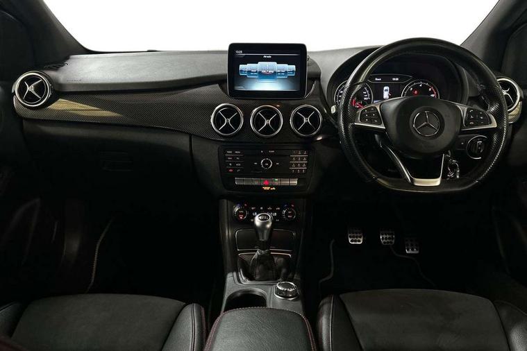 8" colour display screen, Attention assist, Collision prevention assist, Cruise control + speed limiter, Direct steering, Drive mode selector, External temperature gauge, Instrument cluster with 4.5-inch TFT colour display, Low fluid warning light, Mercedes-Benz emergency call, Multi function trip computer, Reversing camera, Service indicator (ASSYST PLUS), Smartphone integration with Apple CarPlay, Diesel particulate filter, Lowered suspension, Bluetooth audio streaming, Media interface, USB port, Adaptive brake lights, Aluminium front door sills, AMG body styling, Automatic headlamp activation, Body colour bumpers, Body colour door handles, Body colour door mirrors, Chrome beltline trim, Door sill plates with "Mercedes-Benz" lettering, Electric front/rear windows/one touch operation, Electric heated + adjustable door mirrors, Heated rear window with timer, Heated windscreen wash system, LED daytime running lights, LED rear lights, Radiator grille with 2 louvres in Iridium silver with chrome trim, Rain sensor windscreen wipers, Rear wiper, Twin exhaust tailpipes with chrome finishers, 1/3 to 2/3 split folding rear seats, 12V power points in front + rear centre consoles, 2 Position luggage floor, 3 spoke flat bottomed sports leather multi function steering wheel with red contrast stitching, Ambient interior lighting, AMG brushed stainless steel sports pedals with rubber studs, AMG floor mats with red stitching, Artico man-made leather/Dinamica upholstery, Auto Mercedes-Benz child seat recognition sensor, Black roof liner, Centre console with cupholders, Door centre panels in dinamica, Driver and passenger underseat storage box, Driver/front passenger seat height adjustment, Driver/passenger sunvisors and illuminated vanity mirrors, Dual zone automatic climate control, Footwell lights, Front centre armrest with storage compartment, Front headrests, Height adjustable headrests, Height/reach adjustable steering column, Isofix rear child seat fastenings, Leather trimmed gearshift with chrome inserts, Load compartment cover, Luggage compartment lighting, Reading lights, Rear armrest with 2 cupholders and load through provision, Rear headrests, Seat cushion angle adjustment, Sliding front centre armrest with storage compartment, Sliding rear seats, Storage compartment in centre console, Storage compartment in front doors, 5 x 3 point seatbelts, ABS with Brake Assist, Brake calipers with Mercedes-Benz lettering + perforated brake discs, Child proof door locks, Crash responsive emergency lighting, Drivers knee airbag, Dual stage driver/passenger airbags, Electronic parking brake, ESP with ASR, Front and rear seatbelt reminder, Front passenger airbag deactivation, Front seat side impact airbags, Hill start assist, Seat occupancy sensor, Tyre pressure monitoring system, Warning triangle and first aid kit, Window airbags, Alarm system/interior protection/immobiliser, Locking wheel bolts, Remote central locking, Air vents in Silver-chrome, Carbon fibre dash trim, Tirefit sealant with electric air pump,