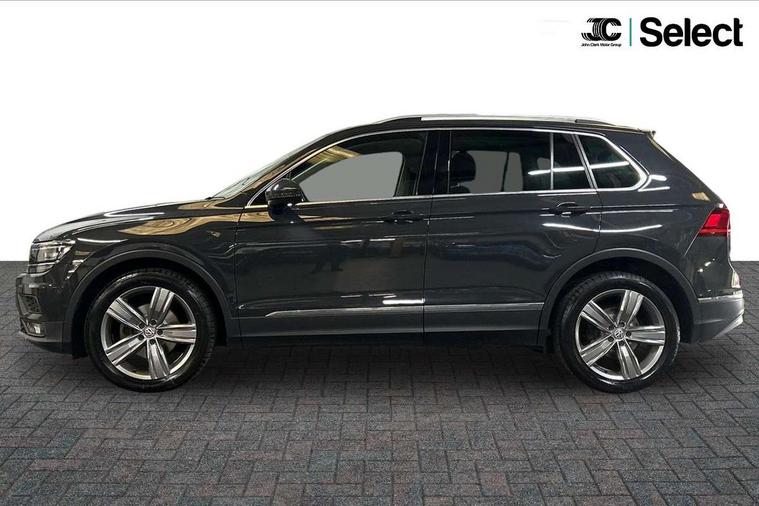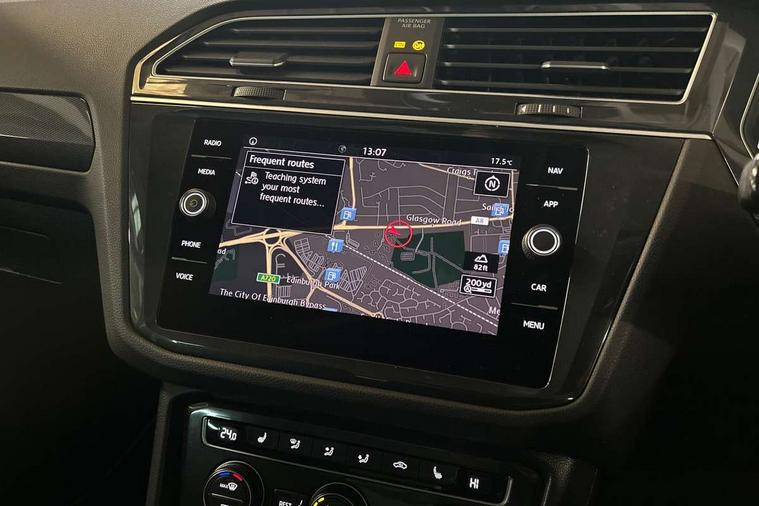 Active information display, Adaptive cruise control, App-Connect, Bluetooth phone integration system, Car-Net Security and Service, Distance control assist, Driver profile selection, Fatigue detection system, Front assist, radar sensor controlled distance monitor, city emergency braking + predictive pedestrian protection, Instrument cluster, Lane assist, Low washer fluid warning light, Multifunction colour display, Outside temperature display, Service interval indicator, Speed limiter, Start/Stop function, Warning lights, Diesel particulate filter, Misfuel prevention device for diesel engine, XDS electronic differential lock, 2x USB sockets in front, 4 X 20 watt output, DAB Digital radio, MP3 compatible single CD player, SD card slot, Simultaneous pairing of 2 compatible mobile devices, SMS functionality - read, compose and send SMS messages using touch-screen display, Title and cover art display, 3D effect cherry red LED rear tail lights, Auto dimming interior mirror, Automatic activation of hazard warning lights, Black door protector with chrome inserts, Body colour door handles, Body colour door mirrors, Body coloured bumpers, Chrome side body trim, Chrome side window surrounds, Chrome trimmed radiator grille, Coming/leaving home lighting function, Dusk sensor + auto driving lights, Electric folding door mirrors, Electric heated + adjustable door mirrors, Electric panoramic sunroof with sunblind, Front air intake with chrome strip, Front and rear electric windows, Halogen clear headlights with integrated indicators and range adjustable, Heated rear window, High level 3rd brake light, LED headlights with dynamic light assist daytime running lights and cornering front fog lights, LED rear number plate lights, Rain sensor windscreen wipers, Rear windscreen washer and wiper with interval delay, Side door sills with chrome inserts, Side skirts and rear bumper with chrome insert, Silver rear diffuser trim, Silver roof rails, Silver under body guard, Tinted windows (B pillar backwards), Windscreen wipers/ intermittent wipe + 4 position delay, 12V Accessory socket in centre console, 3 rear headrests, 3 zone climate control, 4 load lashing points, 40:20:40 split folding rear seats, Bag hook in luggage compartment, Driver + front passenger lumbar support, Foldable passenger seatback, Front + rear carpet mats, Front centre armrest with 12v socket, Front centre armrest with storage + rear 2 air vents + cupholders, Front seat back storage pockets, Front seatback folding tables, Height/reach adjust steering wheel, Illuminated driver/passenger vanity mirrors, Illuminated scuff plates, Instrument lighting white adjustable panel illumination, Interior light with delay, Isofix Preparation 2 Rear child seats, Leather gear knob, Load through provision with 2 cupholders when folded, Lockable cooled glovebox, Luggage compartment lighting, Luggage compartment side storage, Map pockets on front seats, Passenger seat height adjuster, Passenger underseat drawer, Rear cupholders, Removable luggage cover, Sliding/reclining rear seats, Storage compartment in driver's door, Storage compartment in passenger's door, Storage compartment in rear doors, Storage tray on dashboard, Sunglasses storage, Variable boot floor, Ambient lighting pack - Tiguan, Winter pack - Tiguan/Tiguan Allspace, 3 rear 3 point seatbelts, ABS+EBD+Brake assist, Active bonnet, Active pedestrian safety system, Curtain airbags, Driver/Front Passenger airbags, Driver/Passenger whiplash optimised head restraints, Drivers knee airbag, DTC - Drag torque control, Electronic parking brake with auto hold, ESP with EDL + ASR, First aid kit, Front side airbags, Front ventilated disc brakes and rear disc brakes, Head airbag system, Height adjustable front 3 point seatbelts + pretensioners, Hill hold control, Passenger airbag deactivate switch, Passenger knee airbag, Proactive preventive occupant protection, Rear side airbags, Rigid safety cell with front and rear crumple zones, Seatbelt warning lamp and buzzer, Two tone horn, Warning triangle, Alarm with interior protection, Electronic engine immobiliser, Remote central locking with 2 remote folding keys, Chrome door trim inserts, Piano black interior trim, Steel space saver spare wheel,