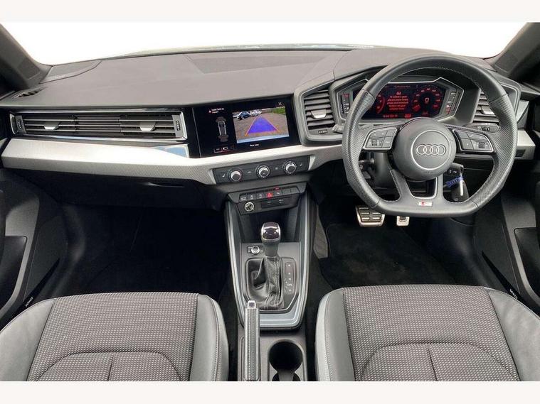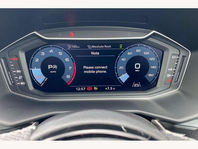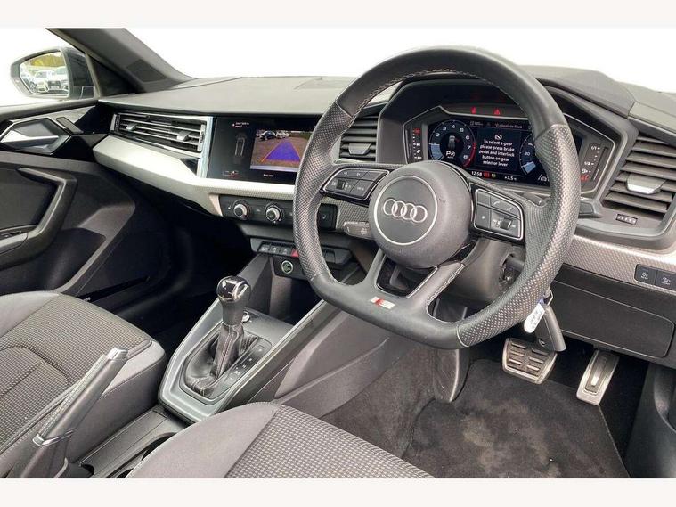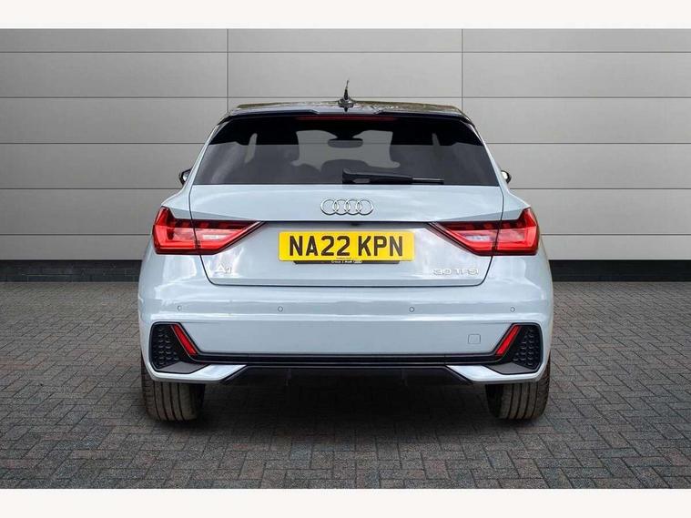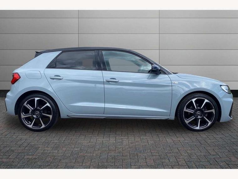 10.25" Digital instrument cluster display classis style instrument dials + speed, odometer, time, outside temperature, telephone menu + fuel level warning, Audi connect safety emergency and service including E-call, Audi drive select - power steering assistance + engine + gear shift 3 preset modes (auto, dynamic, efficiency and an Individual mode), Audi smartphone interface with connect compatible smartphone via USB directly MMI display + Nav, music, third party apps controlled via MMI controller, Automatic start/stop system, Bluetooth interface, Cruise control, Driver's information system, Electromechanical power steering, Emergency services call system, Lane departure warning system, Service interval indicator, Speed limiter, Voice control system, Washer fluid level indicator, Sports suspension, 1 x SDXC card reader, 2 x USB type C connection points, DAB Digital radio, MMI radio plus with 8.8" colour MMI display screen and MMI touch, Auto dimming rear view mirror, Black door mirrors, Black side skirts, Body coloured bumpers, Contrast roof - Mythos black, Door sill trims with aluminium inlays and logo, Electric front and rear windows, Electrically adjustable, heated, folding door mirrors with integrated LED side indicator, Front side air inlets in grained matt black and C frame in titanium black, Front wing badges, Heat insulating glass windscreen and side windows, Heated rear windscreen, High level LED brake light, LED headlights with LED rear lights + dynamic rear indicators + headlight adjustment and high beam, turning light + LED daytime running lights, Radiator protective grille frame in matt aluminium silver, Rain and light sensors, Rear diffuser strip in matt titanium black, Rear fog lights, Rear side wing doors, Rear wing door, Rear wiper, Side front spoiler lips in grained matt black, 12V socket in centre console with two cup holders, 3 rear seats with headrests, 3 seat bench in 2nd row, 3 spoke flat bottomed multi-function plus leather steering wheel with S badging, grips in preforated leather, contrast stitching and paddle shift, 40:60 Split folding rear seat or folded fully, Black cloth headlining, Driver and passenger seat with manual height adjust with forward and backwards adjustment, Front and rear black floor mats with contrast stitching in fine silver, Front head restraints, Front passenger seat, Height and reach adjustable steering wheel, ISOFIX child seat mounting for front passenger and outer rear seats including top tether attachment point of outer rear seats, Leather gear knob with aluminium trim, Luggage compartment light with front and rear reading lights, Manually adjustable lumbar support in front seats, Stainless steel pedals, Black styling pack - A1 Sportback Black Edition, LED interior lighting pack - A1, Luggage compartment pack - A1, 3x3 point rear seatbelts, Audi pre-sense front with pedestrain and cyclist recognition, Brake assist function, Driver and front passenger airbag with front side and head airbags, Electronic Stability Control including ABS, EBD, ASR and EDL, Front passenger airbag deactivation switch, Hill hold assist, Manual rear child locks, Seatbelt height adjustment for front seats, Seatbelt monitoring, Tyre pressure warning light, Warning triangle and first aid kit, Anti theft alarm, Anti theft wheel bolts and loose wheel warning, Immobiliser, Remote central locking with 2 foldaway keys, Aluminium trim for control switches, air vents and digital instrument cluster, Silver grey inlays polygon structure in diamond paint finish, Structured grey accent areas including air vents, door handle recesses and centre console in quartz paint finish, 18" 7 spoke rotor design alloy wheels in gloss anthracite black, diamond cut finish,