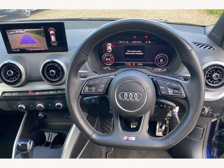 Audi connect navigation and infotainment includes innovative services, Audi connect remote and control connects your vehicle to your smartphone, Audi drive select, Audi drive select - Power steering assistance + engine + gearshift, Audi drive select with efficiency, Audi smartphone interface, Audi virtual cockpit, Automatic start/stop system with recuperation, Bluetooth interface includes bluetooth audio streaming, Cruise control, E-call, MMI navigation plus with MMI touch, Power operated tailgate, Progressive steering, Rear parking sensors, 2 x SDXC card reader, 8 passive loudspeakers, DAB Digital radio, DVD Drive, Auto dimming rear view mirror, Black window trims, Bumper in full body colour paint finish, Electrically adjustable, folding, auto dimming and heated door mirrors with integrated LED side indicators, Front windscreen with grey tinted sunband, LED daytime running lights, LED headlights with LED rear lights, LED third brake light, Privacy glass - dark tinted rear and rear side windows from B-pillar backwards, Rear side wing doors, Rear wiper, Variable front intermittent wipers, Wheel arch trims in manhattan grey, 12V socket in front, 3 seat bench in 2nd row, 3 spoke flat bottomed multi-function leather sport steering wheel with gear shift paddles, 4-way electric lumbar support for front seats including seat height adjustment for both front seat, 60/40 split folding rear seat bench, Black cloth headlining, Front and rear head restraints, Front centre armrest, Front/rear floor mats, Height/reach adjust steering wheel, Illuminated door sill trims with S logo, ISOFIX child seat mounting for front passenger with airbag deactivation and outer rear seat including top tether attachment point for outer rear seats, Single front passenger seat, Stainless steel pedals, Black styling pack - Q2, 3x3 point rear seatbelts, 6 airbags - Front, curtain and front side airbags, Electromechanical parking brake, Electronic stabilisation control including ABS, ASR and EDL, Hill hold assist, Pre-sense front with pedestrian recognition, Seatbelt monitoring, Tyre pressure warning light, Warning triangle and first aid kit, Anti theft alarm, Anti theft wheel bolts, Electronically operated child locks, Remote central door locking, Aluminium interior element, Matt brushed aluminium trim inlays, Tool kit,