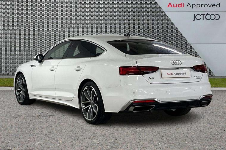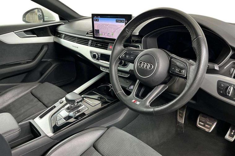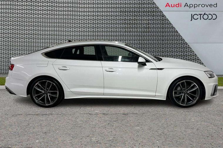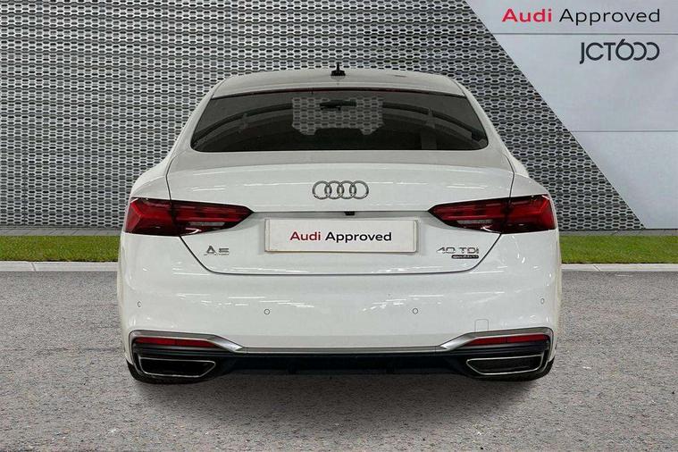 Audi connect safety and service (e-call), Audi connect with Amazon Alexa Integration, Audi drive select (Auto, Comfort, Dynamic, Efficiency and Individual), Audi parking system plus with front and rear sensors, Audi smartphone interface, Audi virtual cockpit - 12.3" full colour digital instrument cluster, vehicle/engine speed, Radio/media information+Driver assistance systems, Automatic start-stop system with coasting functionality and efficiency programme, Bluetooth interface, Electro-mechanical power steering, Email, calendar and text messages displayed via MMI, MMI nav+ with MMI touch - 10.1" high resolution MMI display, touch sensitive, 3D map, route/country info, dynamic route guide, personal route assist, Power operated tailgate, Rear view camera, Service interval indicator, Voice control system, Diesel particulate filter, Sports suspension lowered by 23mm, 8 passive loudspeakers, CD player, DAB digital radio reception, Two additional USB ports for rear passenger in rear centre console, Two SDXC card slots, Audi matrix LED headlights with LED rear lights + dynamic front and rear indicators, Auto dimming rear view mirror, Body colour bumpers, Body colour door handles, Body colour front spoiler lip, Body colour side sill trim, Body coloured door mirrors, Electric adjustable heated door mirrors, Electric folding door mirrors, Electric front windows, Front fog lights, Honeycomb structure radiator grille in grained matt black, LED daytime running lights, LED third brake light, Matt aluminium silver tailpipe trim, Privacy glass, Rain and light sensors, Rear side wing doors, S line badges on front wings, S line front and rear bumpers with side skirts, S Line rear diffuser in matt titanium black with trim strip in matt aluminium silver, Side air inlets in grained matt black with matt aluminium silver inlay, Variable front intermittent wipers, Windscreen with acoustic glazing, 4 way electric lumbar support for driver and front passenger, 40/20/40 split folding 3 seater rear bench seat, Adjustable steering column, Black cloth headlining, Black perforated leather gearknob, Contrast stitching on seats, steering wheel and gear lever gaiter, Deluxe 3 zone electronic climate control, Front centre armrest, Front head restraints, Front/rear floor mats, Heated front seats, Illuminated door sill trim with S logo, ISOFIX child seat mounting and top tether, Luggage compartment mat, Manual seat adjustment, Rear headrests, Single front passenger seat, Stainless steel pedals, Sunvisors with vanity mirrors, LED interior light pack - A5/RS5, 3x3 point rear seatbelts, 6 airbags - Driver, front passenger, curtain and side airbags, Electromechanical parking brake, Electronic Stabilisation Control (ESC) including ABS, ASR and EDL, Front passenger airbag deactivation, Height adjustable front seatbelts, Hill hold assist, Manual child lock in rear doors, Multi collision brake assist, Pop-up bonnet for pedestrian protection, Pre sense city, Seatbelt monitoring, Tyre pressure warning, Variable restraint system, Warning triangle and first aid kit, Anti theft alarm system, Anti theft wheel bolts, Immobiliser, Keyless Go, Remote central locking, Matt brushed aluminium inlays, Tool kit, Tyre repair kit,