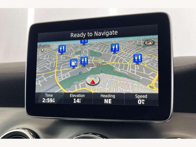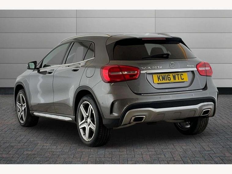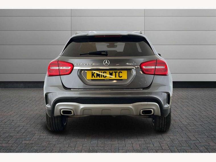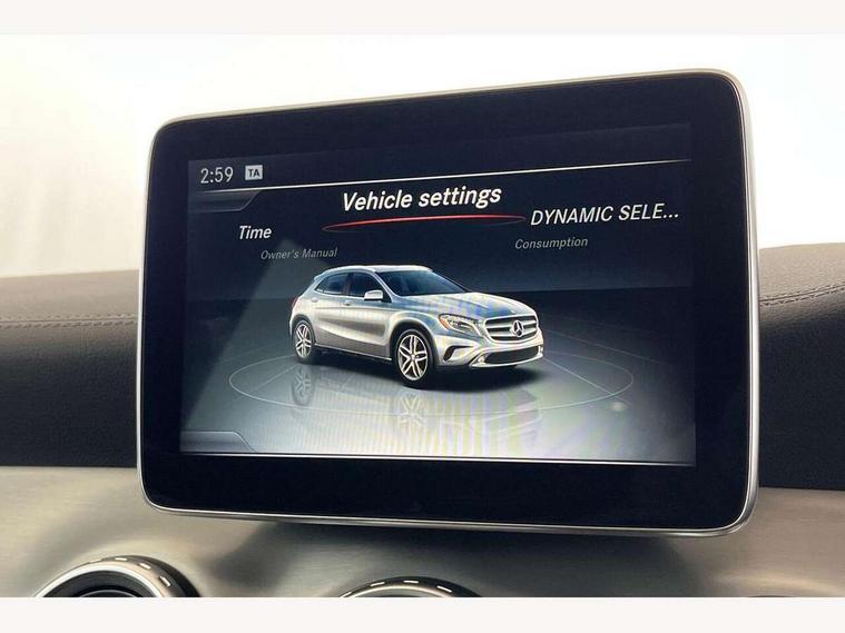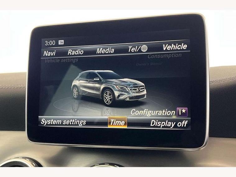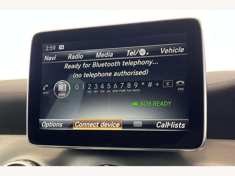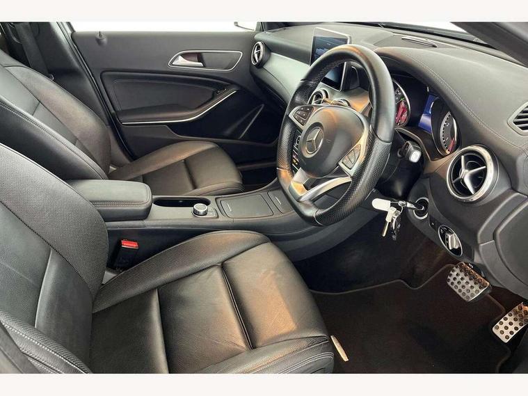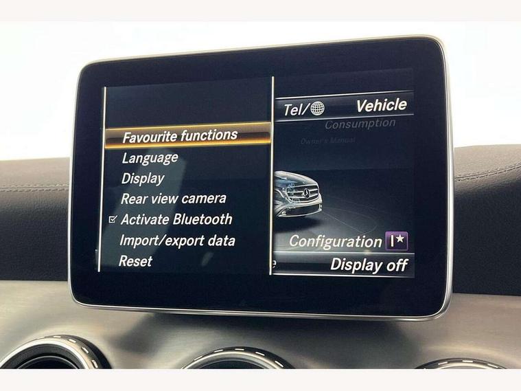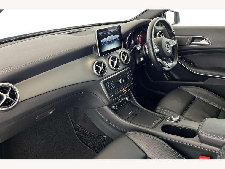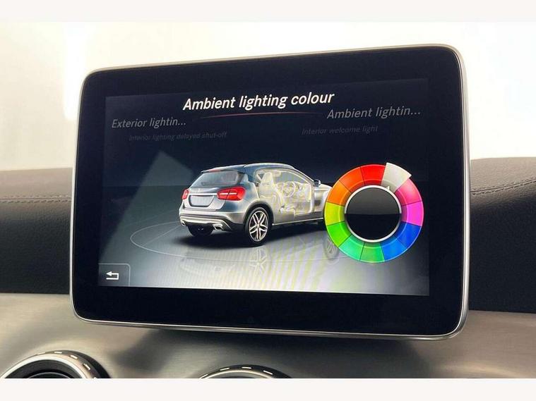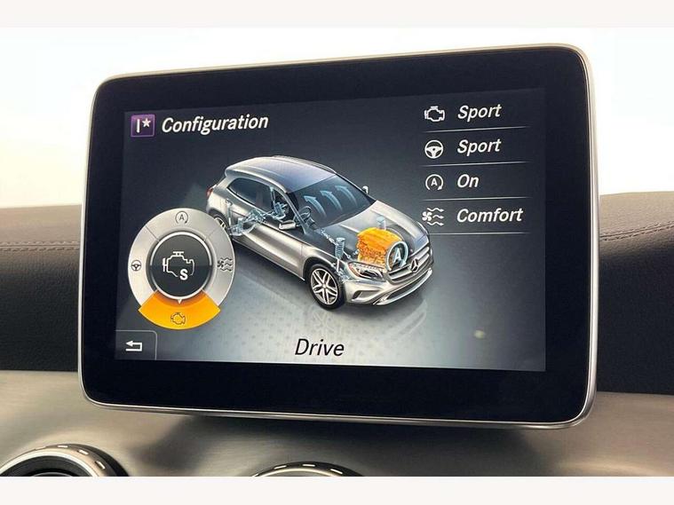 8" colour display screen, Active park assist with parktronic system, Attention assist, Collision prevention assist plus, Cruise control + speed limiter, DYNAMIC SELECT with a choice of driving modes (ECO, Comfort, Sport, Sport+ and Individual), Easy-pack tailgate - Powered opening/closing automatically, Multi function trip computer, Outside temperature gauge, Reversing camera, Service indicator (ASSYST PLUS), Sports steering system, Comfort suspension, Bluetooth connectivity including audio streaming, Media interface, SD card slot, USB port, Adaptive brake lights, Aspherically curved door mirror glass, Auto dimming interior + exterior mirrors, Automatic headlamp activation, Body colour bumpers, Body colour door handles, Body colour side skirt, Electric folding door mirrors, Electric front windows, Electric heated + adjustable door mirrors, Electric rear windows, Heated rear window with timer, Heated windscreen wash system, LED indicators in door mirrors, LED tail lights, Matt titanium grey front and rear apron trim, Privacy glass, Rain sensor windscreen wipers, Rear windscreen wiper with auto activation when reversing, Roof spoiler, Twin chrome exhaust tailpipes, 1/3 to 2/3 split folding rear seats, 12 colour Ambient lighting, 12V power socket in centre console, 12V socket in luggage compartment, 3 spoke flat bottom multifunction leather steering wheel, Auto Mercedes-Benz child seat recognition sensor, Black headlining, Centre console storage, Centre console with cupholders, Footwell lights, Front and rear headrests, Front centre armrest with storage compartment, Gearshift paddles, Heated front seats, Height adjustable front seats, Height/reach adjustable steering column, Illuminated door sills, Illuminated glovebox, Isofix rear child seat preparation, Load securing rings in luggage compartment, Luggage compartment cover, Luggage compartment lighting, Luggage nets in boot, Overhead storage box/sunglasses holder, Parcel net in front passenger footwell, Parcel net on driver and front seat backrests, Rear armrest with 2 cupholders and load through provision, Rear Reading Lamps, Sports seats, Sunvisors with illuminated vanity mirrors, THERMOTRONIC automatic climate control, Storage Pack - GLA Class, 3 rear 3 point seatbelts, ABS with Brake Assist, Active bonnet, Adaptive brake system, Brake calipers with Mercedes-Benz lettering + perforated brake discs, Child proof door locks, Crash responsive emergency lighting, Drivers knee airbag, Dual stage driver/passenger airbags, Electronic parking brake, ESP with ASR, Front and rear seatbelt reminder, Front passenger seat occupancy sensor, Front side airbags, Hill descent control, Hill start assist, Tyre pressure monitoring system, Warning triangle and first aid kit, Window airbags, Alarm system/interior protection/immobiliser, Remote central locking, Chrome air vent surrounds, Leather gear knob with chrome insert, Light aluminium with longitudinal grain interior trim,