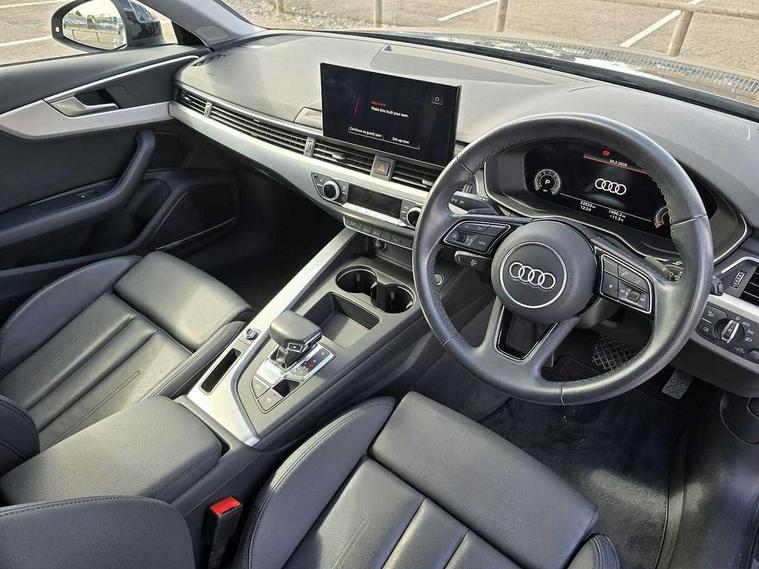 Audi connect safety and service (e-call), Audi connect with Amazon Alexa Integration, Audi drive select, Audi parking system plus with front and rear sensors, Audi smartphone interface, Audi virtual cockpit, Automatic start-stop system with coasting functionality and efficiency programme, Bluetooth interface, Cruise control system with speed limiter, Electromechanical power steering, Email, calendar and text messages displayed via MMI, MMI Navigation plus with MMI touch includes 10.1" high resolution colour MMI display, 3D map, Power operated tailgate, Rear view camera, Voice control system, 54 litre fuel tank, Comfort dynamic suspension, 2 USB charging ports, 8 passive loudspeakers, DAB digital radio reception, Auto dimming rear view mirror, Body colour door handles, Body colour side sill trim, Body coloured door mirrors, Electrically folding auto dimming/adjustable/heated door mirrors with LED side indicators and kerb view function for passenger side, LED headlights and rear lights with LED daytime running lights, LED third brake light, Matt aluminium silver tailpipe trim, Privacy glass, Rain and light sensors, Rear diffuser in matt titanium black with trim strip in matt aluminium silver, Rear side wing doors, Rear wiper, Sport front and rear bumpers with side skirts, Variable intermittent front wash/wipe, Windscreen with acoustic glazing, 3 spoke high multi-function leather sport steering wheel with paddle shift and height and reach adjustable, 4 way electric lumbar support for driver and front passenger, 40/20/40 split folding 3 rear seat bench in 3 parts with rear centre armrest, Deluxe 3 zone electronic climate control, Door sill trims with aluminium inlay, Electric load area cover, Front and rear head restraints, Front centre armrest, Heated front seats, ISOFIX child seat mounting and top tether, Manual seat adjustment, Single front passenger seat, Twin leather upholstery + front sports seats, Black styling pack - A4 Avant Sport Edition/S4 Black edition/S4 Vorsprung, High gloss package - A4, LED Interior light pack - A4/S4, 3 rear seatbelts, 6 airbags - Driver, front passenger, curtain and side windows, Electronic Stabilisation Control (ESC) including ABS, ASR and EDL, Hill hold assist, Multi collision brake assist, Pop-up bonnet for pedestrian protection, Pre sense city, Rear door child safety locks, Seatbelt monitoring, Warning triangle and first aid kit, Anti theft alarm, Anti theft wheel bolts, Central locking, Keyless Go, Aluminium ellipse silver inlays, 18" 10 spoke dynamic design alloy wheels, Tool kit, Tyre repair kit,