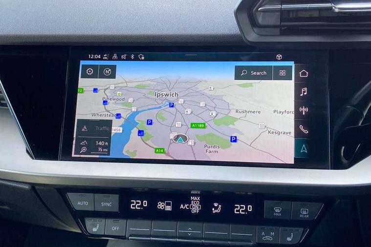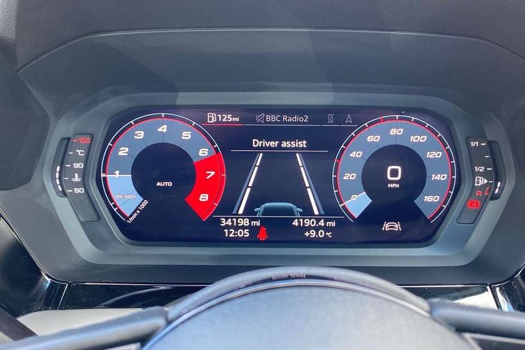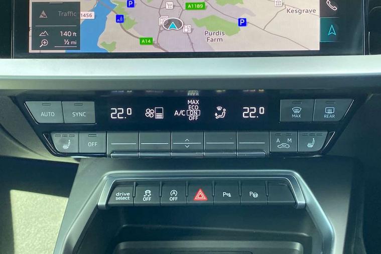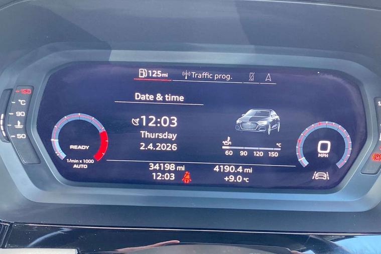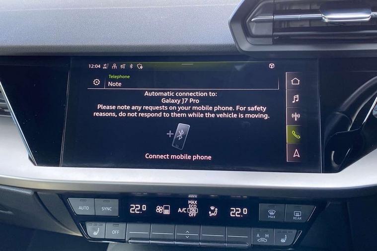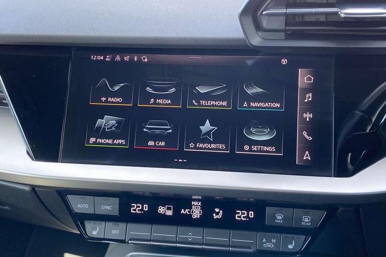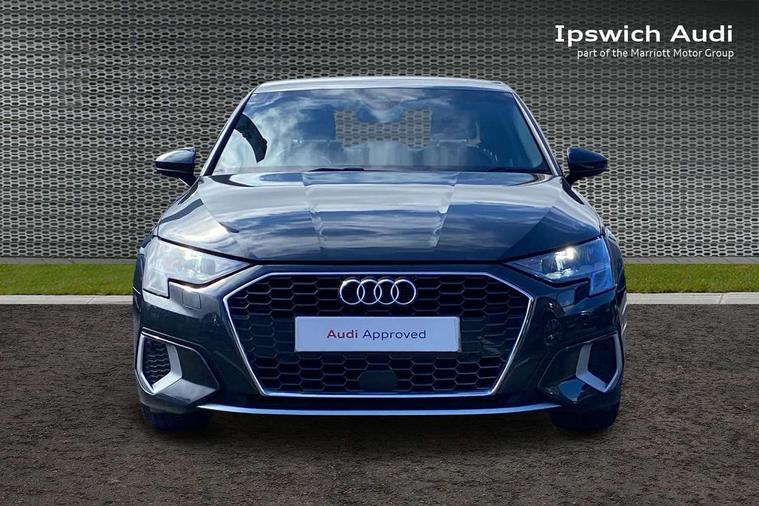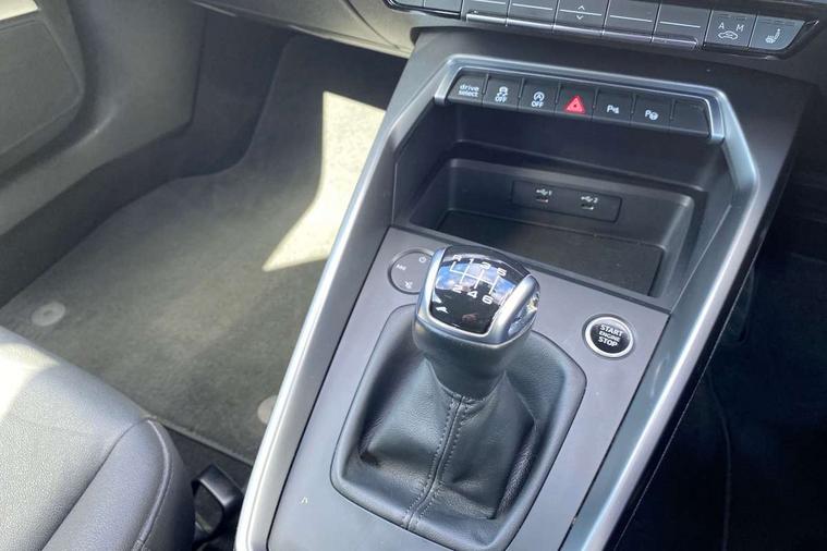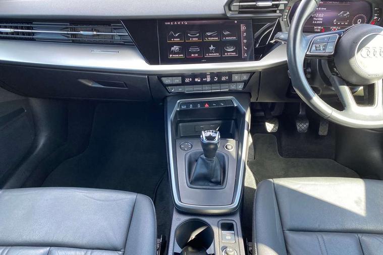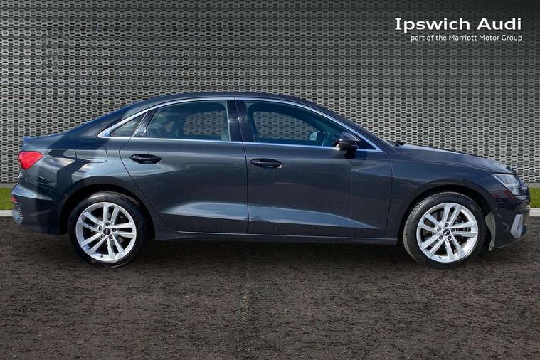 Audi connect emergency call and service, Audi drive select (Auto, Comfort, Dynamic and Individual), Audi smartphone interface, Audi Virtual Cockpit - 10.25" digital and colour instrument cluster, Automatic start/stop system with recuperation, Bluetooth interface, Collision avoidance assistant, Cruise control + speed limiter, Electromechanical power speed sensitive steering, Lane departure warning system, MMI Navigation Plus with high resolution 10.1" colour touch screen display, Rear parking sensors, Service indicator, Voice control system with natural language interaction, Standard suspension, 2x USB Type C ports (for charging and data transfer), 6 passive loudspeakers, CD player, DAB Digital radio, Acoustic glass windscreen, Aluminium window trim, Auto dimming frameless rear view mirror, Body colour exterior mirrors, Body colour roof spoiler, Electrically adjustable/heated/folding/auto dimming door mirrors with integrated LED indications + kerb view function for passenger side, Front electric windows, LED daytime running lights, LED headlights and halogen rear lights, Light and rain sensors, Model and engine designation badges at rear, Rear electric windows, Rear window, rear door windows and rear side windows in clear glass, 12V socket and storage compartment in front centre console, 40/20/40 split folding rear seat bench with cupholder, Dual zone electronic climate control, Front and rear headrests, Front centre armrest, Front door sill trims with aluminium inlay, Front/rear floor mats, Height and reach adjustable steering wheel, Interior lighting - Front and rear roof module including reading lights, glove compartment light and right hand side, Luggage compartment floor covering, Manual boot compartment lid, Manually adjustable front seats, Seat side bolsters, Steel grey cloth headlining, Twin leather upholstery, Aluminium interior elements pack - A3, Sport styling pack - A3 Saloon, 3x3 point rear seat belts, Driver and front passenger airbag with passenger airbag deactivation, Electronic Stabilisation Control (ESC) including ABS, ASR and EDL, First aid kit with warning triangle and 2 safety vests, Front side airbags with head airbags and interaction airbag, Hill hold assist, Pre-sense front with pedestrian and cyclist detection, Seatbelt monitoring, Tyre pressure loss indicator, Anti theft alarm, Anti-theft wheel bolts, Electronically operated child lock, Immobiliser, Remote control central locking, Aluminium air vent surrounds, Aluminium trim elements, Inlays with silk effect paint in platinum grey,