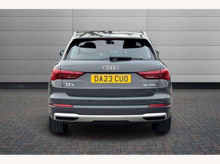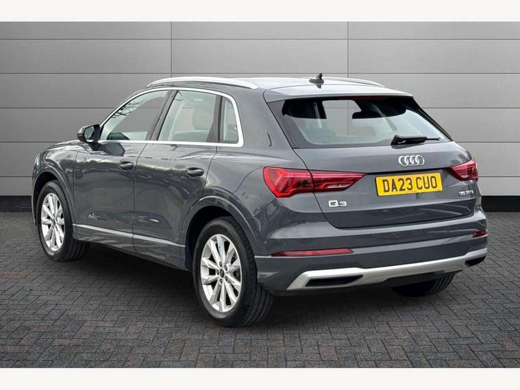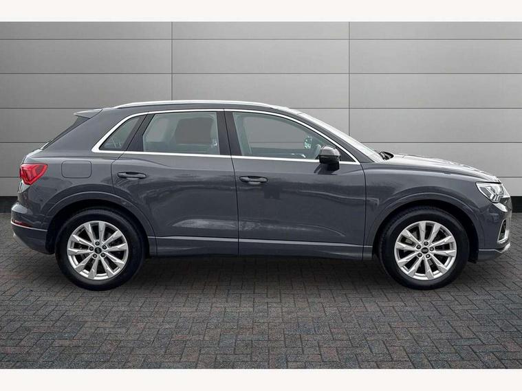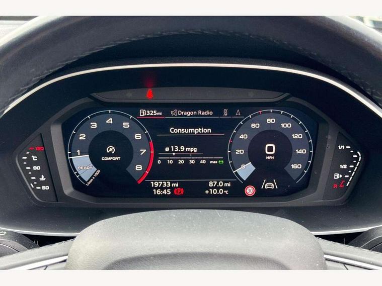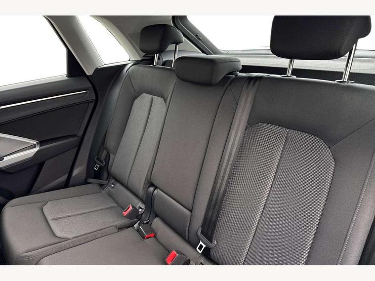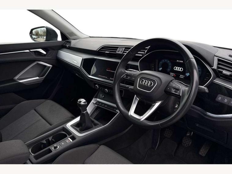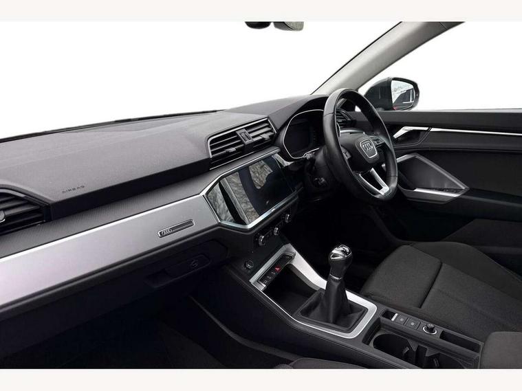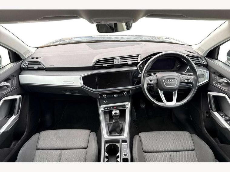 Amazon alexa Integration, Audi connect safety and service, Audi drive select, Audi lane departure warning, Audi smartphone interface includes wireless Apple carplay/Android Auto, Audi Virtual Cockpit - 10.25" display, Bluetooth interface, Camera based traffic sign recognition, Cruise control + speed limiter, Legal emergency call, MMI Navigation Plus with high resolution 10.1 inch touchscreen colour display, Power operated tailgate, Progressive steering, Rear parking sensors, Service interval indicator, Start stop system with recuperation, Voice control system with natural language interaction, Standard suspension, 2 USB-C ports with charge and data functions, 6 passive loudspeakers, DAB digital radio module, Acoustic windscreen, Aluminium roof rails, Aluminium window trim, Anthracite black radiator grille, Auto dimming door mirrors, Auto dimming frameless rear view mirror, Electrically folding, adjustable and heated door mirrors with integrated LED side indicators and kerb view function for passenger side, Front and rear bumpers, wheel arch trims and side sill trims in contrasting Manhattan grey paint finish, Front and rear electric windows, Front fog lights, Front side air inlets in matt selenite silver, Front spoiler in matt selenite silver, Grille vertical bars in aluminium silver/Matt, High gloss black finish B and C pillars, LED headlights with LED daytime running lights, LED third brake light, Rain and light sensors, Rear diffuser strip in matt selenite silver, Rear side wing doors, Rear wiper, Variable front intermittent wipers, 12V socket in rear centre console, 3 seat bench in 2nd row, 3 spoke multi-function leather steering wheel, 40:20:40 folding with manual adjustment for 60:40 forwards/backwards position and backrest angle, Door sill trims with aluminium inlay, Dual zone electronic climate control, Electric lumbar support, Front and rear floor mats, Front and rear headrests, Front centre armrest, Height and reach adjustable steering wheel, ISOFIX child seat mounting for front passenger with airbag deactivation and outer rear seat including top tether attachment point for outer rear seats, Lunar silver cloth headlining, Manual front seats with height adjustment, Single front passenger seat, Stainless steel luggage compartment sill finisher, Non smoking pack - Q3, 3x3 point rear seatbelts, 6 airbags - Driver, front passenger, curtain and side windows, Audi pre-sense front with pedestrain and cyclist recognition, Electrically operated child locks on rear doors, Electromechanical parking brake, Electronic stabilisation control including ABS, ASR and EDL, Front seatbelt reminder, Hill descent control, Hill hold assist, Pre sense basic, Seatbelt monitoring, Tyre pressure warning, Warning triangle and first aid kit, Anti theft alarm, Anti theft wheel bolts, Immobiliser, Remote central locking, Aluminium look interior elements, Detail dashboard around MMI touch colour display in glass look, black with surround in aluminium look, Micrometallic silver inlay,