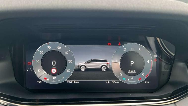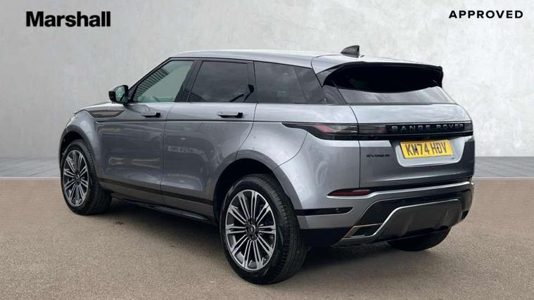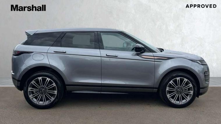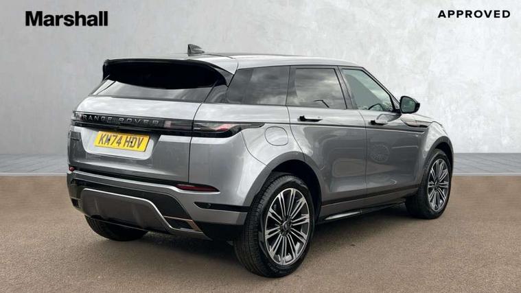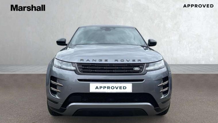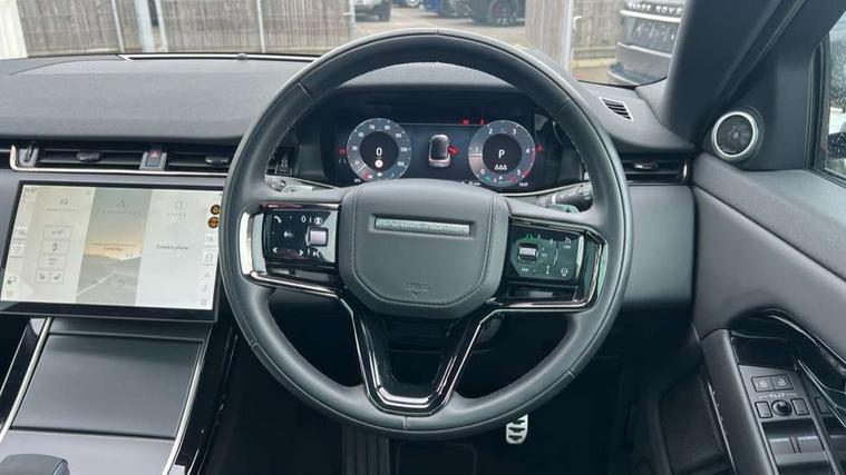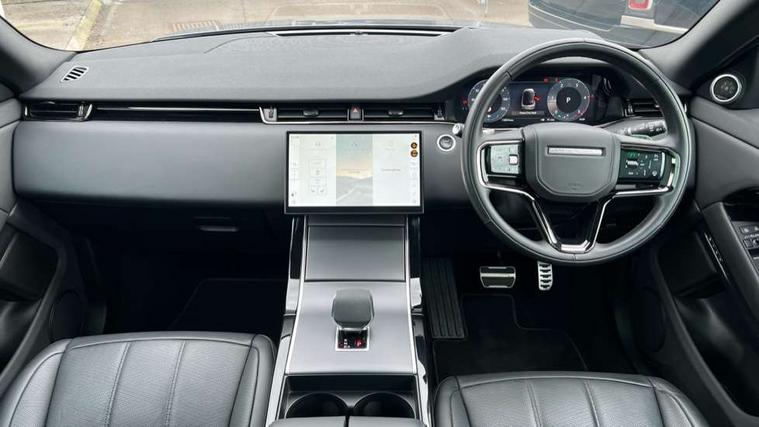 11.4" touch screen, Adaptive cruise control, Android Auto, Apple car play, Blind spot assist, Bluetooth connectivity, Brake pad wear indicator warning light, Driver condition monitor, eCall emergency system, Eco mode, Electronic power assisted steering (EPAS), Front and rear parking aid, InControl remote, Interactive driver display, Land Rover InControl apps, Lane keep assist, Pivi pro connected includes diamond pivi variant, smart settings, connected navigation pro, nuance speech licence, Powered tailgate/boot lid, Rear collision monitor, Rear traffic monitor, Traffic sign recognition with adaptive speed limiter, Voice control system, Wireless device charging, All terrain progress control, Diesel exhaust fluid (DEF) large tank, Efficient Driveline, Large fuel tank, Passive suspension, Terrain Response 2, Digital Audio Broadcast radio-DAB, Steering wheel mounted controls, Acoustic laminated windscreen, Auto headlights, Automatic headlight levelling, Electric windows with one touch open/close and anti trap, Flush deployable exterior door handles, Front and rear recovery eyes, Heated rear window with timer, Heated washer jets, Heated windscreen, Pixel LED headlights with signature DRL and LED tail Lights, Power fold, auto-dimming, heated door mirrors with approach lights and auto dimming driver side, Rain sensing windscreen wipers, Rear animated directional indicators, Rear fog lights, Rear side wing doors, Rear wiper, Side repeater indicators in mirror, Tailgate spoiler, Third brake light, Winter wiper park position, 14 way driver memory electric front seats with 2 way manual headrests + 4 way lumbar support, bolsters, 40:20:40 split folding rear seats with centre headrest and armrest, Ambient interior lighting, Bright metal pedals, Carpet mats, Chrome tread plates with range rover branding Includes stainless steel loadspace scuff plate with etched graphic, Customer configurable single point entry, Electrically adjustable steering column with memory function and easy entry/exit, Front and rear cupholders, Heated steering wheel, Isofix system on outer rear seats, Overhead lighting console, Overhead stowage for sunglasses, Passive front head restraints, Rear air vents, Rear head restraints, Satin chrome gearshift paddles, Single passenger seat, Sunvisors with illuminated vanity mirrors, Twin sliding front centre armrest, Online pack with data plan - Evoque, Power socket pack 2 - Evoque, 3 rear 3 point seatbelts, Anti-lock braking system (ABS), Brake hold function, Customer configurable autolock, DSC - Dynamic Stability Control, Electronic brake force distribution, Electronic parking brake, Electronic traction control, Emergency braking, Front and rear seatbelt reminder, Hill descent control, Hill launch assist, Low traction launch, Occupant protection assist, Passenger seat occupant detector, Power operated child locks, Roll stability control, Six airbags - Driver and passenger airbags/driver knee airbag/front side airbag and curtain airbags, Torque vectoring brake, Tyre pressure monitoring system, Alarm, Immobiliser, Intrusion sensor, Keyless entry, Locking wheel nuts,