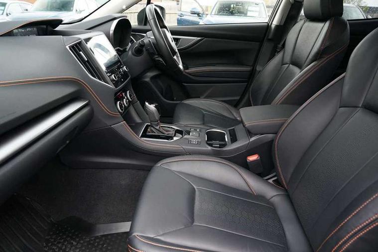 8" touch screen, Apple car play/Android Auto, Blind spot monitoring, Bluetooth system, eCall emergency call system, EyeSight driver assist - Adaptive cruise control, lane keep assist/sway warning and pre-collision braking, Interior fuel flap release, Lane change assistant, Multi function display, Rear cross traffic alert, Rear view camera, Satellite navigation system, Speed sensitive power steering, Trip computer, Voice control system, Sports suspension, SVDC - Subaru Vehicle Dynamics Control, 2 USB ports, 6 speakers, Auxiliary input socket, DAB Digital radio, iPod connection, Radio/CD, Steering wheel mounted audio controls, Subaru Audio system, Automatic headlights, Automatic rain sensing wipers, Body colour bumpers, Body colour door handles, Body colour door mirrors, Daytime running lights, Electric folding door mirrors, Electric front windows + drivers one touch/anti-trap, Electric glass tilt and slide sunroof, Front fog lights, Heated door mirrors, Heated rear window with timer, Heated windscreen + washer jets, High beam assist, LED Headlights, Pop-up headlight washers, Rear privacy glass, Rear side wing doors, Rear wiper, Roof antenna, Roof rails, Roof spoiler, Steering responsive headlights, Third brake light, UV reducing glass, Wheel arch extensions, Windscreen wiper de-icer, 3 seat bench in 2nd row, 60/40 split folding rear seat, 8 way electric adjustable drivers seat, Adjustable height seatbelt anchor, Cargo hooks, Centre console cupholder, Centre console storage box, Defroster vents for front and side windows, Door pockets with bottle holder, Dual zone automatic air conditioning, Front armrest, Front map lights, Front passenger side seatback pocket, Heated front seats, Height adjustable driver's seat, Illuminated centre tray, Illuminated driver/passenger vanity mirror, Isofix child seat attachment, Leather gear knob, Leather upholstery, Luggage area lamp, Luggage hooks, Multifunction leather steering wheel with gearshift paddle, Rear armrest, Rear headrests, Rear seat heater ducts, Retractable luggage cover, Single front passenger seat, Tilt/reach adjustable steering wheel, Tonneau cover, Two 12V accessory power outlets, Under floor storage in luggage area, 3x3 point rear seatbelts, ABS + traction control, Active front headrests, Childproof rear door locks, Curtain airbags, Driver and passenger seatbelts with warning light, Driver/Front Passenger airbags, Drivers knee airbag, EBD + Brake Assist, Electronic parking brake, ESP, Front seatbelt pretensioners + load limiters, Hill descent control, Hill hold control, Safety pedal system, Side airbags, WIL whiplash protection front seats, Immobiliser, Keyless smart entry with push button start, Remote central locking, Thatcham Cat.1 alarm, 18" alloy wheels, Tyre repair kit,