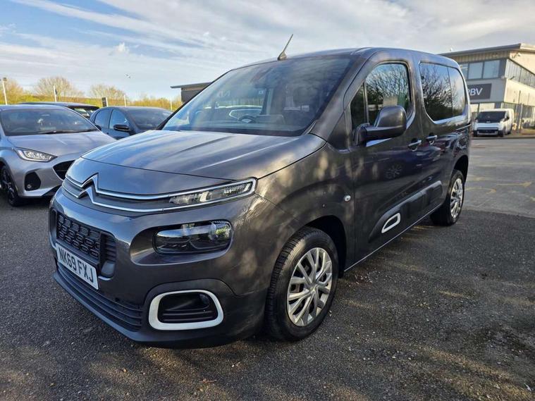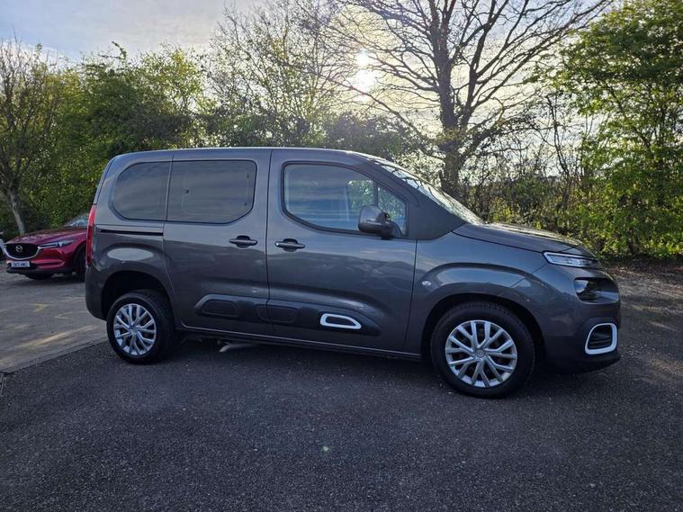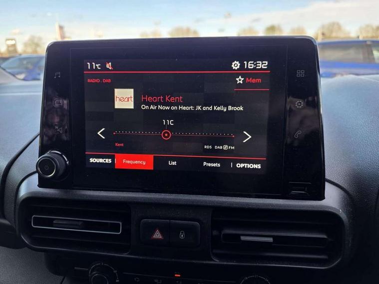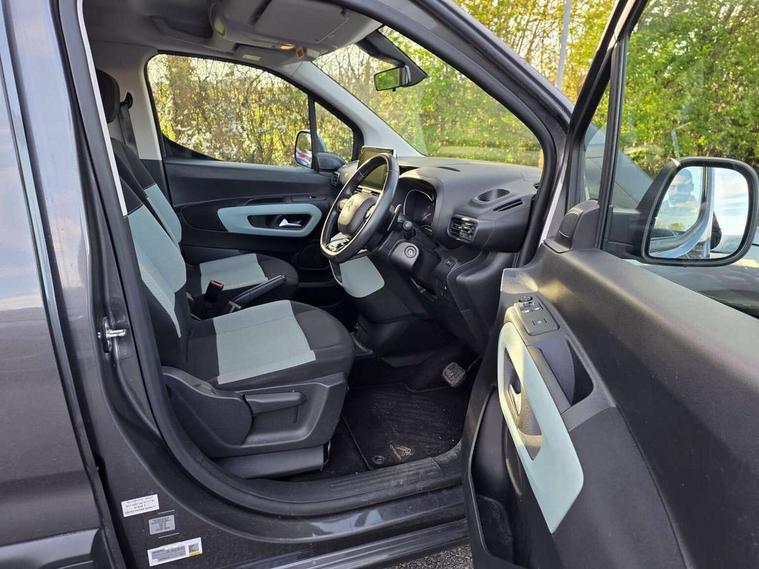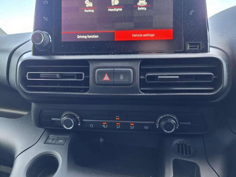8" touch screen, Bluetooth telephone facility, Mirror screen with mirror link, apple carplay and android auto, Multi function trip computer, Programmable cruise control and speed limiter, Start/stop system, Diesel particulate filter, 6 speakers radio with mp3 compatible, DAB Digital radio, USB socket, Airbump, Automatic hazard light activation upon heavy brake application, Automatic triggered rear windscreen wiper in reverse gear, Body colour door handles, Body colour door mirrors, Body coloured front bumper, Chrome chevrons front grille, Daytime running lights, Electric front windows, Electric heated door mirrors, Front fog lights, Front windscreen wiper with multi speed setting, Halogen headlights, Headlights left on audible warning, Heated rear windscreen, Pop out opening rear side windows, Twin sliding side doors, Two tier light signature, White fog light surrounds and airbump coloured surround on first capsule, 1/3 to 2/3 split folding rear seats, 12V socket, 2 height parcel shelf, 3 seat bench in 2nd row ISOFIX child seat mountings, Air conditioning, Driver and passenger dashboard mounted cup holders, Electric power steering with reach and rake adjustable steering column, Fixing rings 4 in load compartment, Front interior light with 2 reading spotlights and rear interior light with timer, Full width front overhead storage shelf, Gear shift indicator, Height adjustable driver's seat, Leather steering wheel, Mica cloth upholstery, Nemo grained interior ambiance, Top box glove compartment, Safety pack - Berlingo, Visibility pack - Berlingo, 3x3 point rear seatbelts, Adaptive driver and front passenger airbags with passenger airbag deactivation function, Anti-locking braking system with electronic braking distribution and emergency braking assistance, Child locks on rear doors, Driver and front passenger side airbags, Electronic stability program with hill start assist, Front and rear curtain airbags, Front and rear seats seatbelt unfastened on the move audible and visual alert, Front optimised safety headrests and 3 x rear retractable headrests with height adjustable, Front three point retractable seatbelts with force limiters, Front/rear disc brakes, Tyre pressure sensor, Automatic door locking when moving off, Deadlocks, Electronic code immobiliser, Remote central locking, 16" Steel wheels with twirl wheel trim, Steel spare wheel,