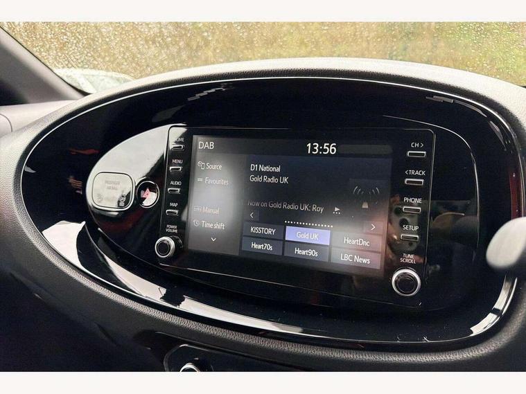 4.2" TFT colour screen, Adjustable speed limiter, Analogue speedometer, Bluetooth connectivity, Digital tachograph, Driver attention alert system, eCall emergency call system, Electric power steering, Intersection turn assist, Key reminder warning, Noise reduction kit, Pre collision system with emergency steering assist, Reversing camera with static guide lines, Smart phone integration with Apple car play/Android Auto, Speed limit display, Start and stop, Vehicle Stability Control (VSC), 4 speakers, DAB digital audio broadcast, Toyota touch 2 multimedia System with 8" Screen display, USB connector, Auto headlights, Auto wipers, Automatic headlights cut-off, Bicycle towing hook, Black side protection mouldings, Black wheel arch mouldings, Body colour door handles, Body coloured front bumper, Boot door scuff plate, Eclipse black rear bumper, Electric heated door mirrors, Follow me home headlights, Front fog lights, Front power windows, Gloss black door mirrors, Gloss black upper front grille, Headlight cut-off reminder, LED daytime running lights, LED front light guide, LED High mounted stop lamp, Manual day/night rear view mirror, Manual headlight levelling, Pagoda roof, Power adjustable door mirrors, Power back door, Privacy glass, Projector halogen headlights, Rain sensor, Rear combination lights LED bulb type, Rear side wing doors, Rear windscreen defogger, Rear windscreen wiper, Short antenna, Variable intermittent windscreen wipers, 12v power outlet - front, 2 seat bench in 2nd row, 3 spoke leather steering wheel, 50/50 split folding rear seat, Adhesive roof headlining, Adjustable speed limiter switch on steering wheel, Audio and telephone switches on steering wheel, Auto air conditioning, Black insert on steering wheel, Black roof lining, Boot light, Centre room light, Chrome interior door handles, Chrome surround on air conditioning buttons, Clean air filter, Console box storage in body color, Fabric upholstery, Floor mats, Front and rear cup holders, Front head rest deco art, Front head restraints, Height adjustable driver seat, Intelligent adaptive cruise control switch on steering wheel, ISOFIX child restraint system on rear seats, Lane departure alert switch on steering wheel, Leather gearshift knob, Manual tilt steering wheel, Manually reclining and sliding driver seat, Manually reclining and sliding front passenger seat, Multimedia switches on steering wheel, Pollen filter, Rear door pockets, Rear head restraints, Satin silver insert on gear shift knob, Single compartment glovebox with lights, Single front passenger seat, Soft tonneau cover, Sun visors with mirror on driver and passenger side, Voice recognition switch on steering wheel, Toyota safety sense pack - Aygo X, Anti lock braking system + Electronic brake force distribution, Child safety door lock, Emergency brake light signal (EBS), Hill start assist control (HAC), Passenger airbag on/off switch, Seat belt reminder for front and rear seats, Supplement restraints system (SRS) - 6 airbags, Traction control, Tyre pressure warning system, Immobiliser, Remote power door locks, Black wheel centre caps, Tyre repair kit,