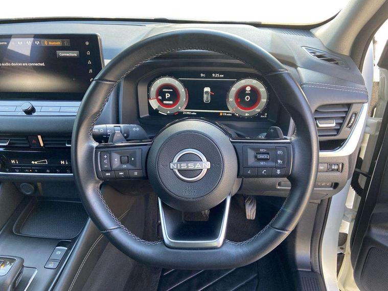 Android auto/Apple CarPlay (Wired), Blind spot warning, Drive modes (sport, normal, eco), Electric speed sensitive power steering, Emergency and breakdown call, Full Digital 12.3" TFT Digital Combimeter, Google maps services - search, weather, 3D maps and Google street view, Idle stop/start system, Intelligent around view monitor, Intelligent Cruise control (ICC), Intelligent driver alert system, Intelligent forward collision warning, Intelligent lane intervention, Lane departure prevention, Lane departure warning system, Maximum speed limiter, Moving object detection, Nissan connect 12.3 inch touchscreen infotainment system, Nissan connect navigation, Push button starter, Rear cross traffic alert, Rear parking sensors, Rear view camera, Remote control services - door locks, lights, horn and car locator, Telematics - notifications and connectivity services, TomTom live traffic services, Traffic sign recognition with legal speed adjustment, Trip computer, Virtual personal assistant and firmware over the air capability, Wireless apple carplay, 6 speakers, AM/FM audio system with DAB, Bluetooth audio streaming, Front USB connections (Type-A and Type-C), Rear USB charging only ports (Type-A and Type-C), Auto dimming rear view mirror, Auto rear wiper when reversing, Automatic hazard signal with emergency stop signal, Body colour mirror caps, Body coloured door handles, Bodyside mouldings, Chrome side window finisher, Door handle with button, Electric auto folding door mirrors, Electrically adjustable and heated door mirrors with LED turn indicator, Follow me home headlights, High beam assist, Intelligent auto headlights, LED daytime running lights, LED Headlights, LED rear lights, One touch front and rear electric windows with remote opening and closing, Partially body coloured bumpers, Privacy glass, Rear bumper with graphite insert, Rear reversing light (bulb lighting), Rear roof spoiler, Rear side wing doors, Rear styling plate, Shark fin antenna, Splash free rain sensing wipers, Super UV and infrared cut glass, Three blink turn signal, 12v power socket in dashboard and luggage, 2x Rear coat hooks, 3 bench rear seats in 2nd row, 3 rear headrests, 4 folding assist grip, 6 Luggage hooks - 4 on floor, 2 on side, 6-way manually adjustable driver's seat, 60/40 split folding rear seat bench, Ambient lighting around centre console, Centre console storage tray, Chrome interior door handles, Cloth monoform upholstery, Driver and front passenger sunvisors with illuminated vanity mirrors, Driver seat back pocket, Dual zone automatic climate control with pollen filter, Electrically adjustable lumbar support for driver, Front and rear door storage, Front centre console and armrest, Front cupholders x 2, Front door with bottle holders, Glovebox with light, Hard trunk cover, Height adjustable driver's seat, Height adjustable front headrests, Height adjustable passenger seat, Leather steering wheel, Luggage board system, Luggage space lighting, Manually adjustable passenger (slide recline + lifter), Multifunction steering wheel, Passenger seat back pocket, Rear armrest with 2 cupholders, Rear door bottle holders, Single front passenger seat, Soft PVC kneepad, Steering wheel gearshift paddles, Steering wheel switches, Sunglasses holder, Tilt/telescopic adjustable steering wheel, Two rear isofix child seat anchorage points with top tether, Welcome light and console tray ambient lighting, 3x3 point rear seatbelt pretensioners + load limiters, ABS with EBD and brake assist, Active brake limited slip, Auto hold function, Child locks on rear doors, Curtain and front side, far side airbags, Driver and passenger airbags, Driver, passenger and 2nd row rear seat belt reminder, Electronic parking brake, Front seatbelt pretensioners + load limiters, Height adjustable front seatbelts, Hill start assist, Intelligent blind spot intervention, Intelligent front emergency braking with pedestrian, cyclist recognition and junction assist, Intelligent rear automatic braking, Tyre pressure monitoring system, Vehicle dynamic control, Capless fuel filler, Engine immobiliser, Intelligent Key, Remote central door locking with deadlocking, Thatcham Cat.1 alarm, Interior instrumental panel B finisher, 18" Diamond cut alloy wheels, Tyre puncture repair kit,