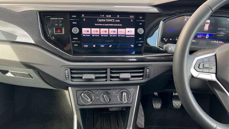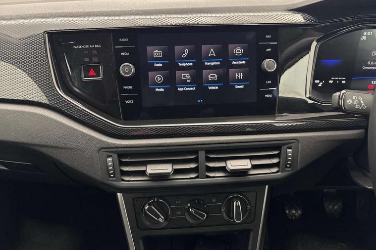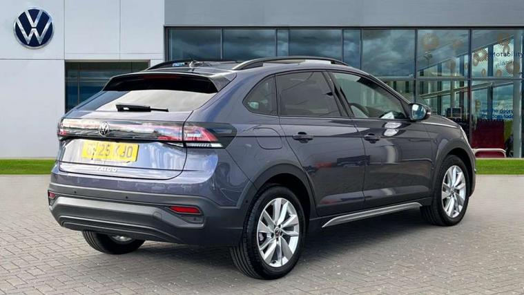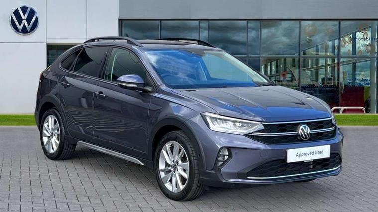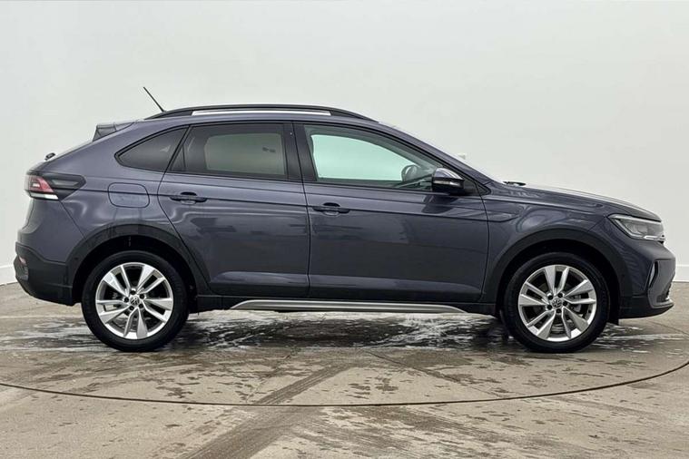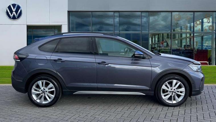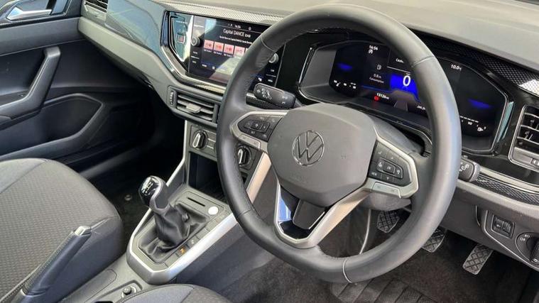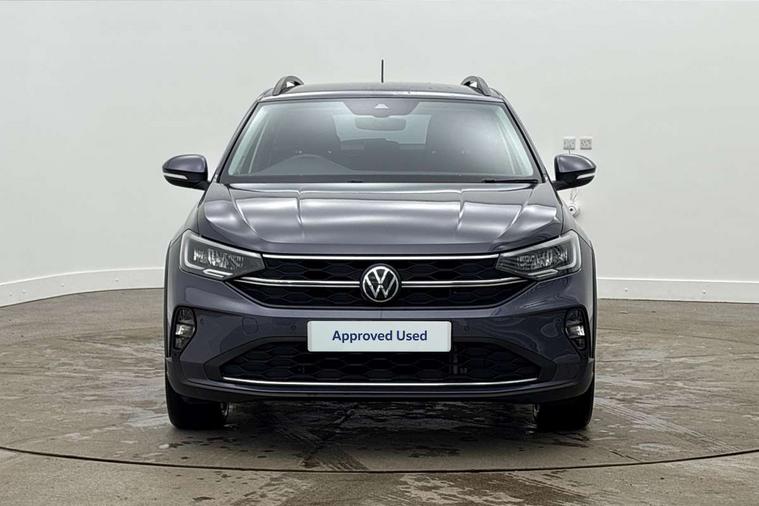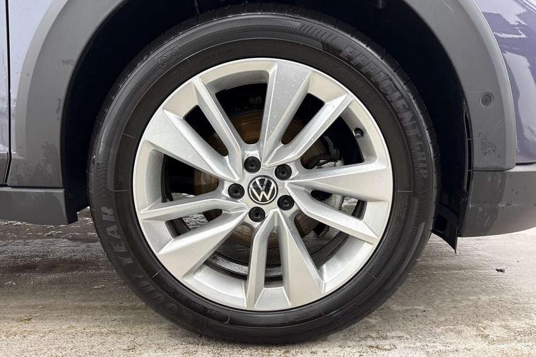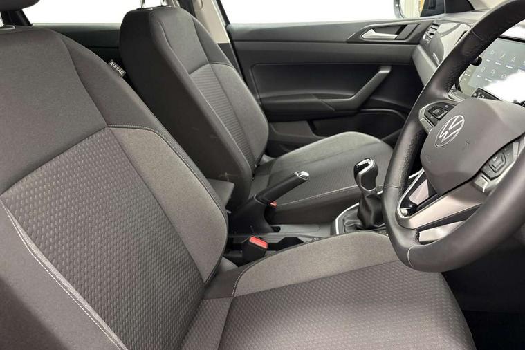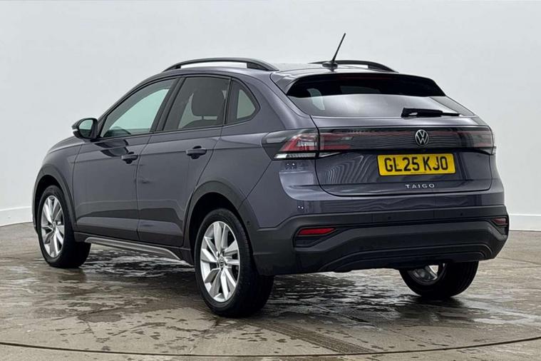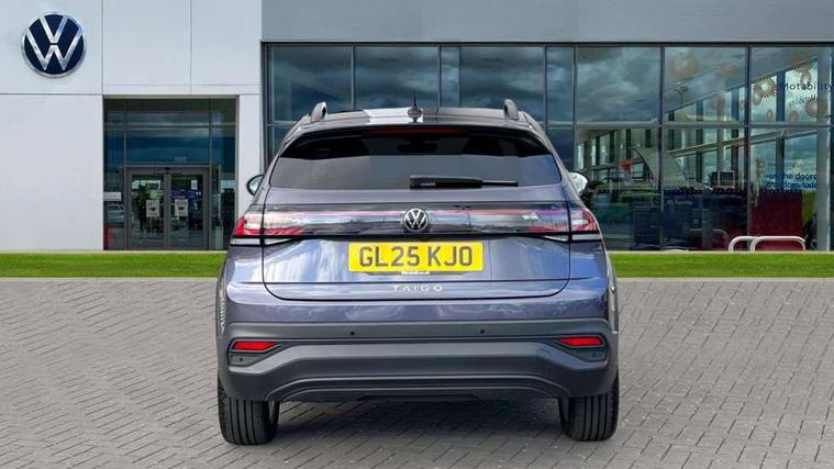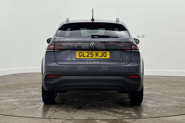Advanced driver attention and drowsiness monitor, Dynamic road sign display, e-Call (emergency call), Power Steering, Predictive adaptive cruise control, Rear view camera, Travel assist including emergency assist, Washer fluid level indicator, Wireless Charging including Bluetooth, Start-stop system with battery regeneration (recuperation - energy recovery during braking), WeConnect plus, Ambient lighting with logo projection, Aspherical driver's exterior mirror, Body coloured bumpers, Body coloured exterior mirror housings and door handles, Electric windows, External USB type C socket and charging sockets, Heat insulating glass windscreen, LED rear combination lamp, LED third brake light, Left convex exterior mirror, Power folding adjustable/heated exterior mirrors and front passenger exterior mirror lowering function, Rear fog light on one side, reversing light on both sides, Rear side wing doors, Rear wash/wipe with intermittent wipe setting, Side windows in heat-insulating glass, from B-pillar and rear window dark tinted, 'Slash/ Austin' Cloth upholstery, 12V socket in centre console, 2 front reading lights, 3 rear head restraints, 3 seat bench in 2nd row, Black carpets, Ceramique headliner, Child seat anchor for child seat system i-Size, 2x top tether and child seat anchor in front on front passenger side, Door and side trim panels in titan black, Driver and front passenger seat height adjustment, Front centre armrest, Handbrake lever handle in leather, Height and reach adjustable steering wheel, Leather trimmed gear knob, Leather wrapped multifunction steering wheel, Luggage compartment floor, Luggage compartment light, Lumbar support for driver's and front passengers seat, Seat covers in titanium black, Single front passenger seat, Split folding backrest with centre armrest and unsplit rear seat bench, Storage compartment under front seats, Sun visors with illuminated vanity mirrors, Titanium black instrument panel, Chrome Package - Taigo, Drivers assistance package - Taigo, Light and sight pack - Taigo, 2 x 3-point seatbelts/outer rear seats with ECE label, 3-point seat belts in front with pretensioner and height adjustment, 3-point seatbelt for centre rear seat, Driver and front passenger airbag with front passenger airbag deactivation, Driver and front passenger safety-optimised head restraints, Electronic stability control, Extended and predictive pedestrian/ cyclist protection, Front and rear disc brakes, Front curtain and side airbags with center airbag, Hill start assist, Manual rear child locks, Single tone horn, Tyre pressure loss indicator, Anti-theft alarm system with interior monitoring, backup horn, and towing protection, Keyless locking and starting system keyless access with safelock, Black (slush) Dashboard, Lava stone black gloss/matt decorative inserts in dash and front door panels, Low rolling resistance tyres,