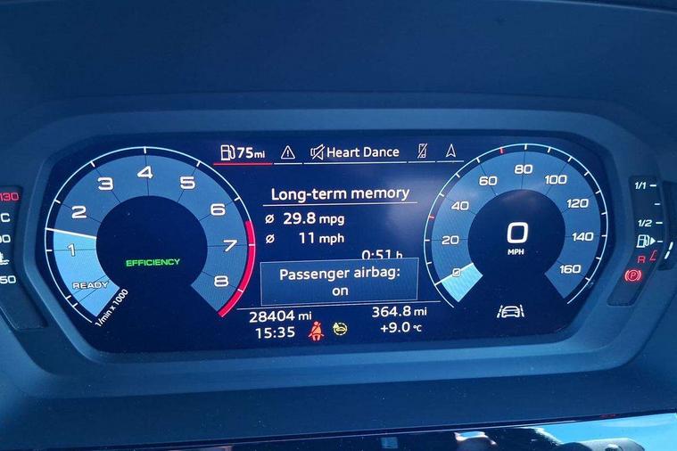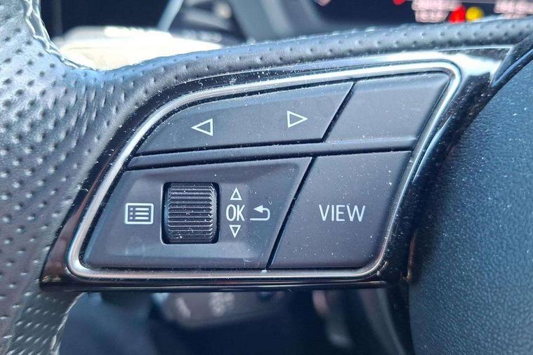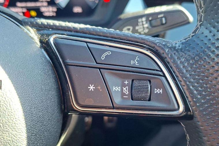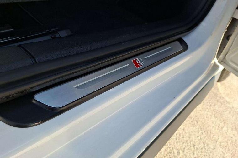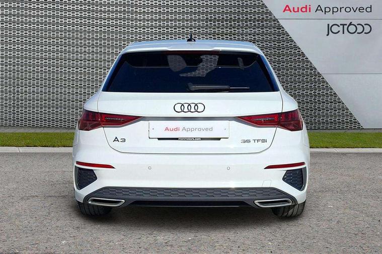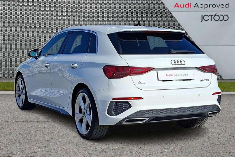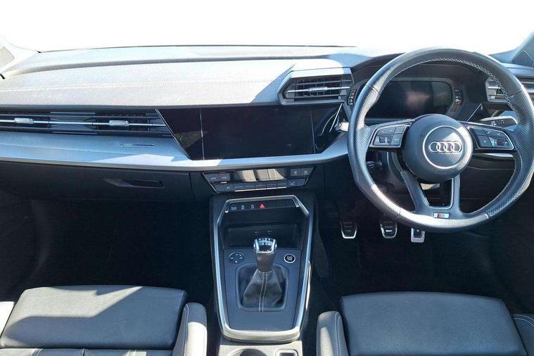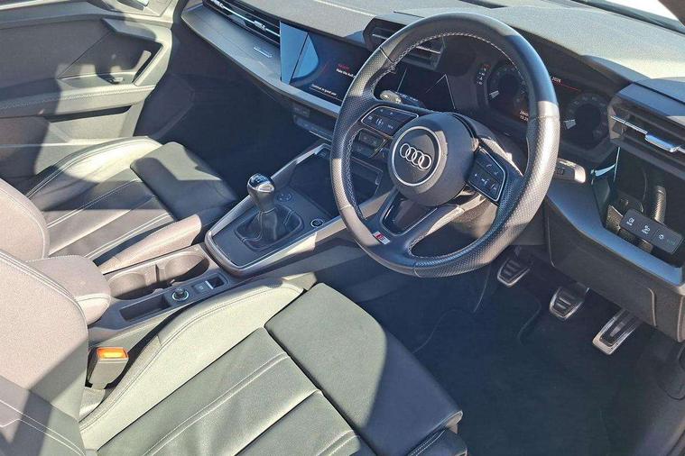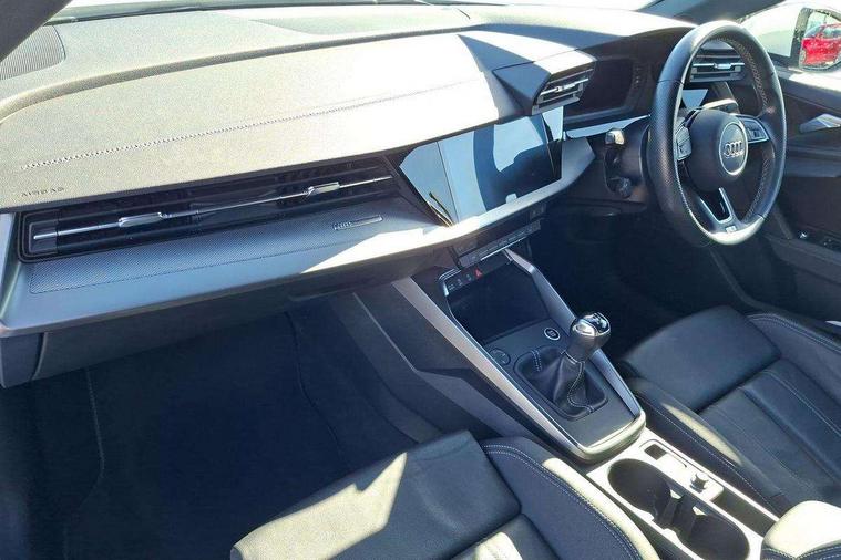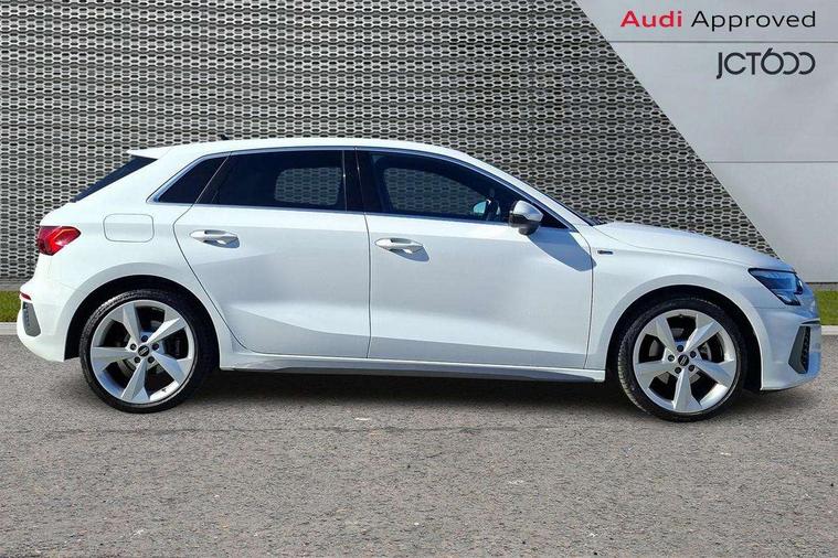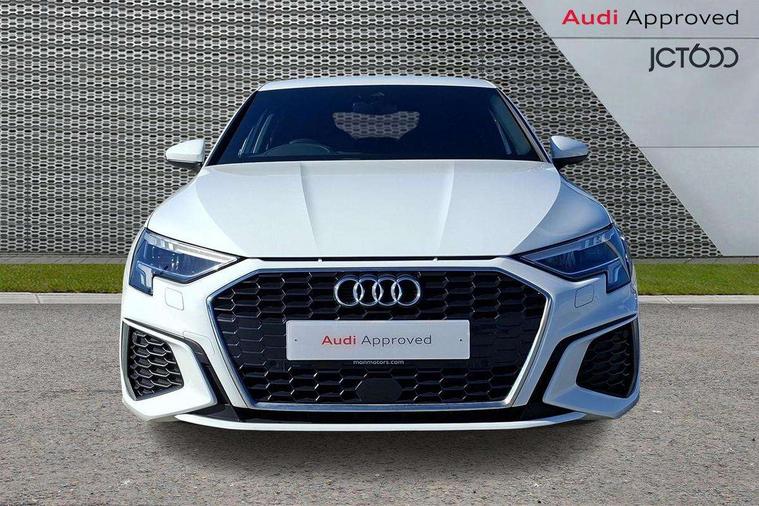 Audi drive select (Auto, Comfort, Dynamic, Efficiency and Individual), Audi smartphone interface, Audi Virtual Cockpit - 10.25" digital and colour instrument cluster, Automatic start/stop system with recuperation, Bluetooth interface, Collision avoidance assistant, Cruise control, e-Call (emergency call), Electromechanical power speed sensitive steering, Lane departure warning system, MMI Navigation Plus with high resolution 10.1" colour touch screen display, Rear parking sensors, Service indicator, Trip computer, Voice control system with natural language interaction, 2xUSB-C connection with data and charging functions, 6 passive loudspeakers, DAB Digital radio, 3rd brake light, Acoustic glass windscreen, Aluminium window trim, Auto dimming frameless rear view mirror, Electrically adjustable/heated/folding/auto dimming door mirrors with integrated LED indications + kerb view function for passenger side, Front electric windows, Illuminated aluminium inserts front door sills with S logo, LED daytime running lights, LED headlights with LED rear lights and dynamic rear indicators, Light and rain sensors, Privacy glass - dark tinted rear window, rear door and side windows, Rear electric windows, Rear side air outlets in grained matt black, Rear side wing doors, Rear wiper, S line bumpers, S roof spoiler, 12V socket and storage compartment in front centre console, 3 seat bench in 2nd row, 40/20/40 split folding rear seat bench with cupholder, Black cloth headlining, Dual zone electronic climate control, Front and rear centre armrest in leather, Front and rear headrests, Front/rear floor mats, Height and reach adjustable steering wheel, Illuminated vanity mirror, Interior lighting - glove compartment light and right hand side, Luggage compartment floor covering, Manual boot compartment lid, Manually adjustable front seats, Seat side bolsters, Single front passenger seat, Stainless steel pedals and front footrest in black, Twin leather upholstery with front sports seats S embossed logo, Aluminium interior elements pack - A3 Sportback, S line styling pack - A3 Sportback, 3x3 point rear seat belts, Audi pre sense front, Driver and front passenger airbag with passenger airbag deactivation, Electronic Stabilisation Control (ESC) including ABS, ASR and EDL, First aid kit with warning triangle and 2 safety vests, Front side airbags with head airbags and interaction airbag, Pre-sense front with pedestrian and cyclist detection, Seatbelt monitoring, Tyre pressure loss indicator, Anti theft alarm, Anti-theft wheel bolts, Immobiliser, Manual child locks, Remote control central locking, Accent surfaces in the dashboard and centre console in platinum grey silk effect paint finish, Dark spectrum aluminium inlays,