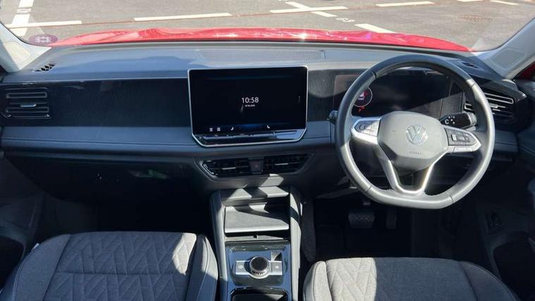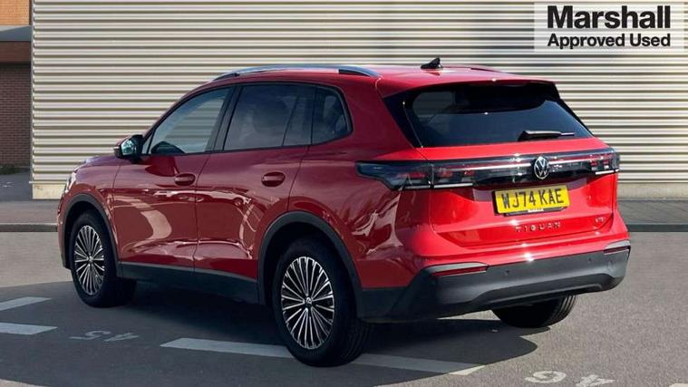 Adaptive cruise control (ACC), Advanced driver attention and drowsiness monitor, Bluetooth mobile phone interface, Car2X technology, Digital Cockpit Pro - 10.25" high resolution dash display screen with customisable menus and information, Dynamic road sign display, E-Sim card for online connectivity, eCall emergency call service, Front Assist - Autonomous emergency braking with pedestrian and cyclist monitoring, Lane change system, Side assist, Rear traffic alert and Exit warning system, Lane keeping system Lane Assist, Multifunction front facing camera, Oncoming vehicle braking when turning including swerve support, Park assistance plus with front and rear parking sensors, Power assisted steering with speed sensitive, Start/stop system with regenerative braking, Warning signal and warning light for front and rear seatbelts not fastened, Wireless App-Connect, Front wheel drive, Digital radio reception (DAB), Diversity antenna for FM reception, Ambient lighting with logo projection, Auto dimming interior rear view mirror, Automatic headlight control system, Body coloured bumpers and air intake with chrome trim, Body coloured door handles, Body-coloured exterior mirror housings, Coming/leaving home lighting function, Heat insulating glass in side and rear windows, Heat insulating windshield, Heated rear window, High level 3rd brake light, Illuminated door handle recesses, Illuminated lightline between headlamps, Rain sensor windscreen wipers, Rear fog light on one side, reversing light on both sides, Rear side wing doors, Rear wiper, 12V outlet in center console rear and in luggage compartment, 12V socket in centre console, 3 bench rear seats in 2nd row, Air care climatronic 3 zone air conditioning system with rear air conditioning control panel, Carpet mats, front and rear, Centre console with illuminated storage compartment with sliding cover and two drinks holders, Ceramique headlining, Door and side trim panel in foam film and woven fabric, Front centre armrest, ISOFIX anchors for child seats on outer rear seats and front passenger seat. Compatible with i-Size, Mechanical rear seat release, Power adjustable lumbar support in front, Rear bench seat, split folding, longitudinally movable and folding with load-through hatch and centre armrest, Safety optimised front head restraints, Single front passenger seat, Sun visors with illuminated vanity mirrors, Three rear head restraints, Variable luggage compartment floor, Comfort package with park assist plus and Safelock - Tiguan, Design package - Tiguan, 3 point seat belt for centre rear seats, 3 Point seat belts in front with pretensioners, 3 point seatbelts in outer rear with ECE label, Driver and front passenger airbag with front passenger airbag deactivation, Electronic parking brake with auto hold, Front and rear curtain airbags, Front and rear side airbags, Front centre airbag, Front disc brakes, Manual child proof rear door locks, Rear disc brakes, Two tone horn, Warning triangle, Anti theft wheel bolts, Soul instrument panel, Airstop tyres,