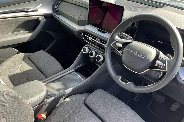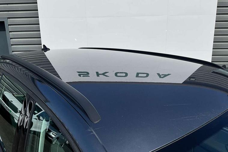 13" satellite navigation touchscreen display, Blind spot detection with door exit warning, Bluetooth system, ChatGPT functionality, Driver alert - Fatigue and drowsiness monitor, Dry display cleaner, Emergency call, Front and rear parking sensors, Front cross traffic assist, Lane assist, PAS, Rear traffic assist, Rear view camera, Tailgate unlocking from outside, Traffic sign recognition, USB C Port x 2 in front centre console, Virtual Cockpit - 10.25" digital display, Voice control system, Wireless charging for two smartphones (15W) with cooling function, Wireless SmartLink for Apple CarPlay and Android Auto, Stop/start function, 2x USB-C in the rear, 8 Speakers, DAB Digital radio, Aero front windscreen wipers with intermittent function, All weather light, Auto dimming rear view mirror, Black wheel arch surrounds, Body colour bumpers, Body colour door mirrors and handles, Cornering light and poor weather light, Electric folding /adjustable/separted heated/folding door mirrors, auto dimming with boarding sports and memory function, Electric front and rear windows, Exterior black decorative trims, Heat insulating glass in windshield, Heated rear window, Ice scraper in fuel tank cap, Invisible tailpipe, LED daytime running lights, LED front fog lamps, LED Headlights, LED rear fog light, LED rear lights, LED third brake light in rear spoiler, Light assistant with automatic headlight control and coming home feature, Logo projection in door mirrors, Rear roof spoiler, Rear side wing doors, Rear window wiper, Safety reflectors on front and rear doors, Unique dark chrome design logo on alloy wheels, Window control switches with black trim, Windscreen wipers with rain sensor, Without engine designation, 1.5l bottle holder points in all door, 1x centre rear reading light, 2 seat bench in 3rd row, 3 configurable smart dials with 32mm coloured display, 3 seat bench in 2nd row, 4 foldable roof handles with rear coat hooks, Ambient interior lighting - Dashboard, front-door stowage compartments, front and rear door panels and footwell lighting, Automatic gear selector on steering column, Chrome interior door handles, Driver/front passenger reading lights, Fabric headlining, Fixed bench 40:60:40 split folding backrests, Front and rear floor mats, Front centre armrest with jumbo box storage compartment, cup holder and 12V socket, Height adjustable front headrests, Isofix child seat fittings in outer middle row rear seats and front passenger with top tether, Manual height adjustment for front passenger seats and thigh support extender, Manual lumbar support for front passenger seat, Manually adjustable steering column, Pollen filter, Rear centre armrest with cupholders, Rear seat boot backrest release, Single front passenger seat, Skoda lettering on steering wheel, Storage pocket including mobile phone pockets on the backs of the front seats, Sunvisors with illuminated vanity mirrors, Three rear height adjustable headrests, Ticket holder on A Pillar, Tri zone climate control, Umbrella in door panel x1 made from sustainable materials, Upper and lower glovebox with card holder and coin compartment, USB C port by rear view mirror for charging only (15W), Variable boot floor, Auto door release and activation of warning lights in the event of an accident, Driver and front passenger airbag with knee airbag and front passenger airbag deactivation, Electric child locks, Electronic parking brake, ESC (incl. ABS+EMD+MSR+ASR+EDL+HBA+DSR+RBS+ESBS+MCB+TSA+XDS), Front assist with braking reaction to vehicles, pedestrians and cyclists, Front disc brakes, Fuel cut off safety device, Height adjustable front 3 point seatbelts + pretensioners, Hill hold assist, Junction assist with automatic emergency braking, Rear disc brakes, Safety vest holder in door, Seat belt reminder for all seats, Three point rear seat belts, Two tone horn, Tyre pressure monitor, Alarm with interior monitoring and tilt sensor with safe function, Anti-theft wheel bolts, Immobiliser, Remote central locking with 2 keys, Breakdown kit, Tool kit,