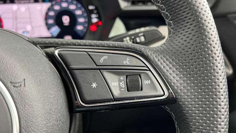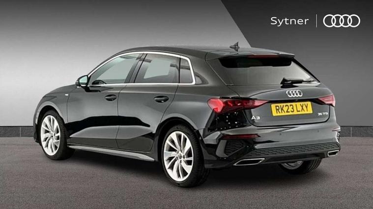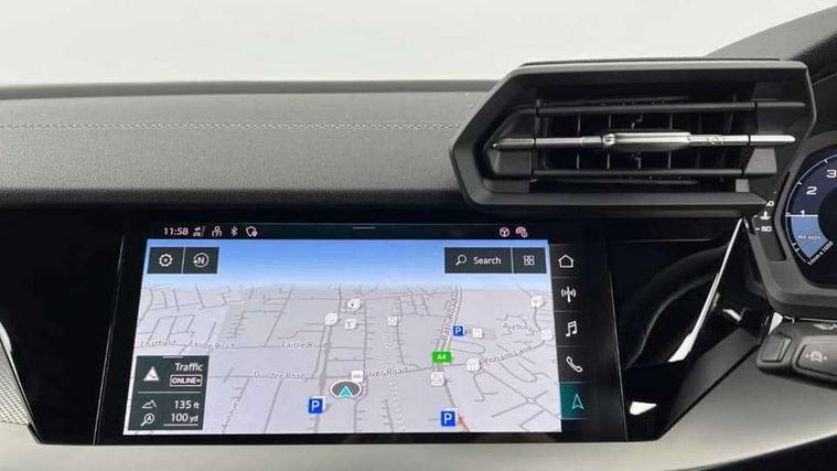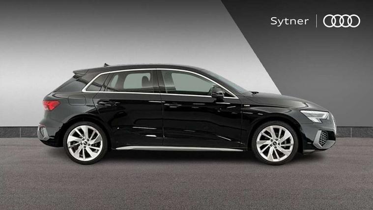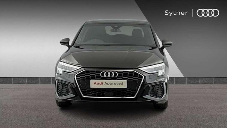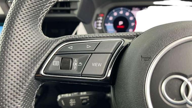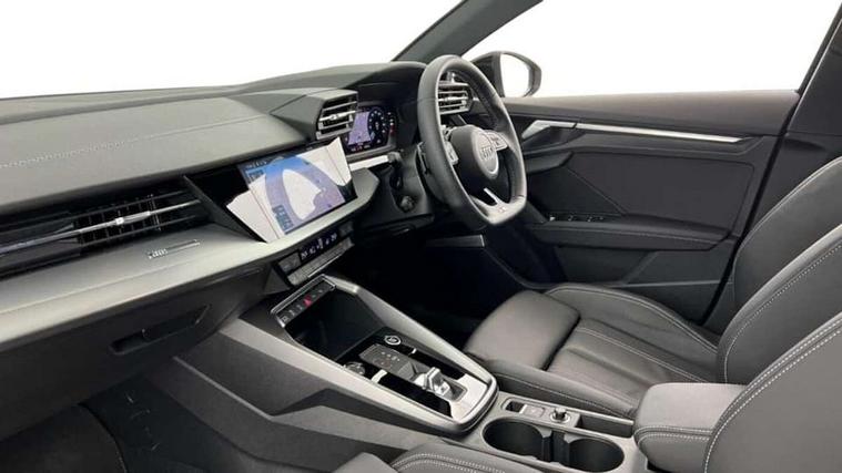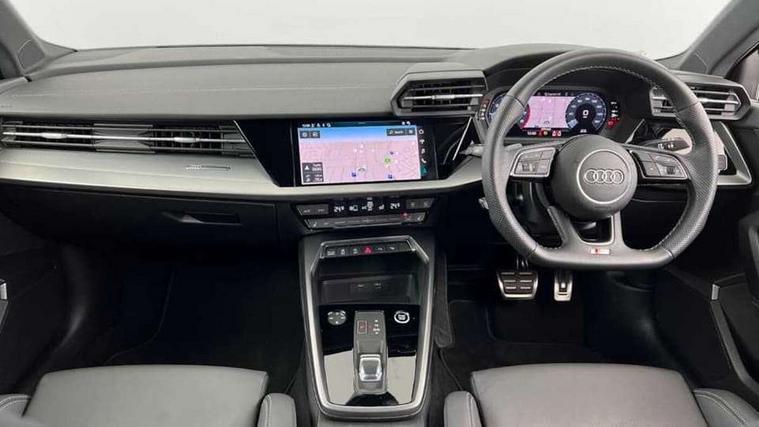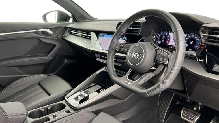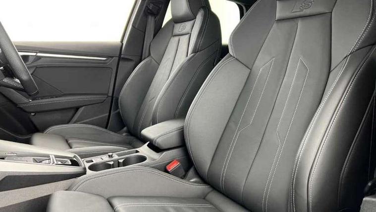 Audi drive select (Auto, Comfort, Dynamic, Efficiency and Individual), Audi smartphone interface, Audi Virtual Cockpit - 10.25" digital and colour instrument cluster, Automatic start/stop system with recuperation, Bluetooth interface, Collision avoidance assistant, e-Call (emergency call), Electromechanical power speed sensitive steering, Lane departure warning system, MMI Navigation Plus with high resolution 10.1" colour touch screen display, Service indicator, Trip computer, Voice control system with natural language interaction, Sports suspension, 2xUSB-C connection with data and charging functions, 6 passive loudspeakers, DAB Digital radio, 3rd brake light, Acoustic glass windscreen, Aluminium window trim, Auto dimming frameless rear view mirror, Body colour exterior mirrors, Electrically adjustable/heated/folding/dimming door mirrors with kerb view includes integrated LED indications + kerb view function for passenger side, Front electric windows, Illuminated aluminium inserts front door sills with S logo, LED daytime running lights, LED headlights with LED rear lights and dynamic rear indicators, Light and rain sensors, Privacy glass - dark tinted rear window, rear door and side windows, Rear electric windows, Rear side air outlets in grained matt black, Rear side wing doors, Rear wiper, S line bumpers, S roof spoiler, 12V socket and storage compartment in front centre console, 3 seat bench in 2nd row, 3 spoke leather multifunction steering wheel with paddle shift, 40/20/40 split folding rear seat bench with cupholder, Black cloth headlining, Dual zone electronic climate control, Front and rear centre armrest in leather, Front and rear headrests, Front/rear floor mats, Height and reach adjustable steering wheel, Illuminated vanity mirror, Interior lighting - glove compartment light and right hand side, Luggage compartment floor covering, Manual boot compartment lid, Manually adjustable front seats, Seat side bolsters, Single front passenger seat, Stainless steel pedals and front footrest in black, Twin leather upholstery with front sports seats S embossed logo, Aluminium interior elements pack - A3 Sportback, LED interior lighting pack - A3 Sportback, S line styling pack - A3 Sportback, 3x3 point rear seat belts, Audi pre sense front, Driver and front passenger airbag with passenger airbag deactivation, Electronic Stabilisation Control (ESC) including ABS, ASR and EDL, First aid kit with warning triangle and 2 safety vests, Front side airbags with head airbags and interaction airbag, Pre-sense front with pedestrian and cyclist detection, Seatbelt monitoring, Tyre pressure loss indicator, Anti theft alarm, Anti-theft wheel bolts, Electronically operated child lock, Immobiliser, Remote control central locking, Accent surfaces in the dashboard and centre console in platinum grey silk effect paint finish, Dark spectrum aluminium inlays,