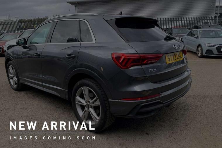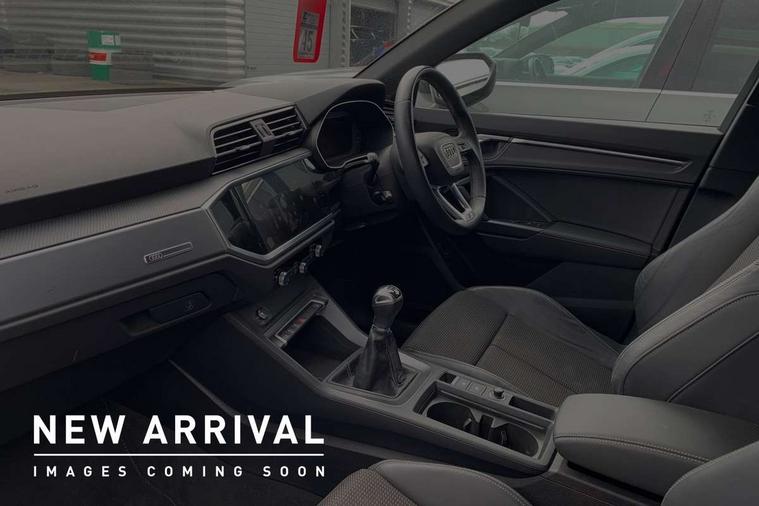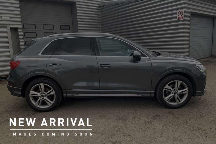 Amazon alexa Integration, Audi drive select, Audi lane departure warning, Audi Virtual Cockpit - 10.25" display, Bluetooth interface, Camera based traffic sign recognition, Cruise control + speed limiter, Legal emergency call, MMI Navigation Plus with high resolution 10.1 inch touchscreen colour display, Power operated tailgate, Progressive steering, Rear parking sensors, Service interval indicator, Smartphone interface includes wireless Apple carplay/Android Auto, Start stop system with recuperation, Voice control system with natural language interaction, Sports suspension, 2 USB-C ports with charge and data functions, 6 passive loudspeakers, DAB digital radio module, Acoustic windscreen, Aluminium roof rails, Aluminium window trim, Anthracite black radiator grille, Auto dimming frameless rear view mirror, Body colour front spoiler blade, Body coloured bumpers, Electrically folding, adjustable and heated door mirrors with integrated LED side indicators and kerb view function for passenger side, Front and rear electric windows, Front fog lights, Front side air inlets in matt platinum grey, Grille vertical bars in aluminium silver/Matt, High gloss black finish B and C pillars, LED Dynamic rear indicators, LED headlights with LED daytime running lights, LED rear lights, LED third brake light, Privacy glass dark tinted rear and rear-side windows (from B-pillar backwards), Rain and light sensors, Rear diffuser grille in grained matt black, Rear diffuser strip in matt anthracite black, Rear side wing doors, Rear wiper, S line badges on front wings, S Line front and rear bumpers, Side skirt insert in matt Platinium grey, Variable front intermittent wipers, 12V socket in rear centre console, 3 seat bench in 2nd row, 3 spoke leather multifunction steering wheel features S badging and grips in perforated leather with contrast stitching, 40:20:40 folding with manual adjustment for 60:40 forwards/backwards position and backrest angle, Adjustable rear seat bench/backrest with centre armrest and cupholder, Black cloth headlining, Dual zone electronic climate control, Front and rear black floor mats with contrast stitching in rock grey, Front and rear headrests, Front and rear roof module including reading lights, Front centre armrest, Glove compartment lighting, Height and reach adjustable steering wheel, Illuminated door sill trims with S logo, ISOFIX child seat mounting for front passenger with airbag deactivation and outer rear seat including top tether attachment point for outer rear seats, Luggage compartment light, Manual front seats with height adjustment, Perforated leather gearknob, Single front passenger seat, Stainless steel luggage compartment sill finisher, Stainless steel pedals, Ambient lighting pack - Q3, Non smoking pack - Q3, 3x3 point rear seatbelts, 6 airbags - Driver, front passenger, curtain and side windows, Audi pre-sense front with pedestrain and cyclist recognition, Electrically operated child locks on rear doors, Electromechanical parking brake, Electronic stabilisation control including ABS, ASR and EDL, Front seatbelt reminder, Hill descent control, Hill hold assist, Pre sense basic, Seatbelt monitoring, Tyre pressure warning, Warning triangle and first aid kit, Anti theft alarm, Anti theft wheel bolts, Immobiliser, Remote central locking, Aluminium look interior elements, Dark matt brushed aluminium inlay, Detail dashboard around MMI touch colour display in glass look, black with surround in aluminium look, Leatherette door armrest,
