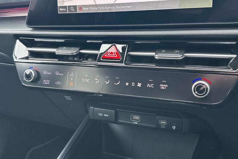 10.25" driver display screen, 10.25" touchscreen satellite navigation, Apple car play/Android Auto with voice control, Blind spot collision avoidance assist, Customisable Head Up Display, Drive mode select (Eco, normal, sport, snow), E-call, Emergency stop signalling system, Forward Collision-Avoidance Assist (FCA) 1.5 - City/Pedestrian/Cyclist/Junction turning, Front parking sensors, Highway Driving Assist (HDA), Intelligent speed limit assist, Kia Connect (UVO), Lane Following Assist (LFA), Lane keep assist, Motor driven power steering, Parking collision avoidance assist (PCA), Rear cross traffic collision avoidance assist (RCCA), Rear parking sensors, Remote smart parking assist, Reversing camera system, Safe exit warning (SEW), Smart cruise control with stop and go functionality, Smart power tailgate, Trip computer with distance/fuel consumption/average speed, Wireless Smartphone charger, 220v AC Inverter, 'Shark fin' mobile antenna, 6 speakers, Bluetooth with music streaming, DAB Digital radio, Steering wheel mounted controls, USB port for connection of a media device, Acoustic windshield, All round electric windows with drivers and front passenger auto up/down and safety function, Auto dimming rear view mirror, Automatic defog system, Automatic headlight control system, Black grille with chrome surround, Black window surrounds, Body colour bumpers, Body colour door mirrors, Body colour exterior door handles, Deluxe door scuff plates, Electrically adjustable and heated door mirrors with LED turn indicator, Electrically folding door mirrors, Front and rear chrome skid plates, Front fog lights, Gloss black wheel arches, Heated rear window, LED daytime running lights, LED Headlights, LED High mounted brake light, LED rear combination lights, Privacy glass - Rear windows and tailgate, Rain sensing front wipers, Rear fog lights, Rear roof spoiler, Rear side wing doors, Rear wiper, Roof rails, Solar glass windscreen, Sunroof with tilting and sliding function, Welcome and follow-me home light functionality, Windscreen Washer Level Warning, 12V socket in front, 12V socket in luggage compartment, 3 seat bench in 2nd row, 60:40 split remote folding rear seats, All-round height adjustable headrests, Alloy pedals, Artificial leather centre console storage box, Artificial leather steering wheel, Artificial leather upholstery, Automatic air conditioning, Centre console cupholder, Chrome coating interior door handles, Driver power adjusted memory seat, Driver/passenger sunvisors with illuminated vanity mirrors, Drivers seat power lumbar support, Front and rear door storage, Front passenger 1 x USB-C charging port, Front passenger power adjusted seat, Front passenger relaxation seat, Glove box, Heated front seats, Heated outer rear seats, Heated steering wheel, ISOFIX Child seat top tethers and anchor fixings, LED Front cabin, rear & luggage compartment lights, Luggage area load cover, Luggage board, Manually adjustable steering column, Paddle shifts, Power adjustable lumbar support on front passenger seat, Rear centre armrest with cupholder, Rear passenger 2 x USB-C charging ports, Seatback pocket - driver, Seatback pocket - front passenger, Shift by wire SBW, Single front passenger seat, Ventilated front seats, Ventiliation ducts to rear compartment, 3 point seatbelts on all seats, ABS, Automatic unlocking of doors in case of impact, Curtain and side airbags, Dual shell horn, Electric parking brake with auto hold function, Electronic stability control, Front airbags, Front passenger airbag cut-off switch, Height adjustable front seatbelts, Hill start assist control (HAC), Knee airbags, Seatbelt reminder warning, Traction control, Tyre pressure monitoring system, Customisable automatic door locking, Customisable automatic door unlocking, Deadlocks, Engine Start/Stop Button with Smart Entry System, Locking wheel nuts, Manual child locks, Rear occupant alert, Smart key with motion sensor, Thatcham category 2 security alarm and immobiliser, Visible vehicle identification number, Warranty - 7 Years/ 100, 000 miles, Centre fascia chopped carbon, 18" Alloy wheels, Tyre mobility kit,