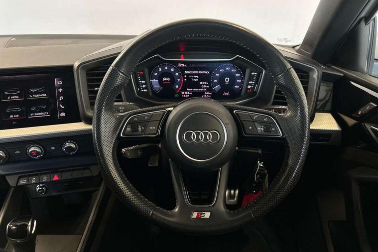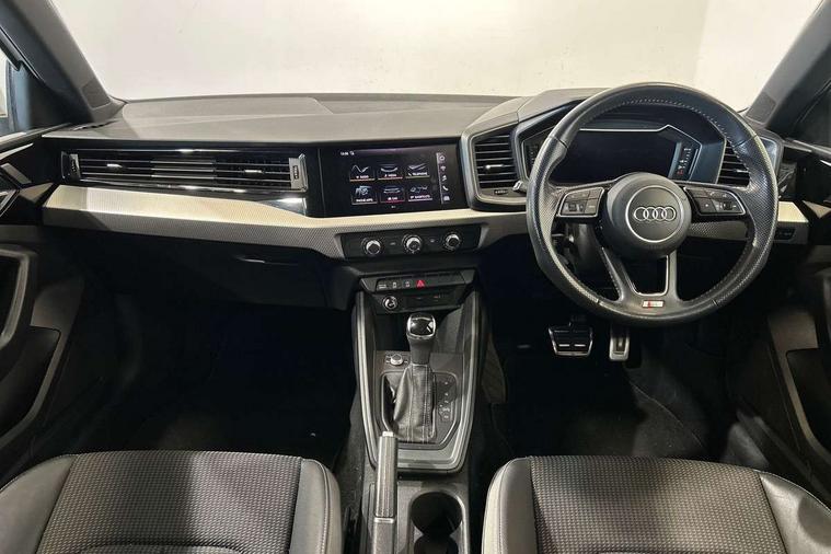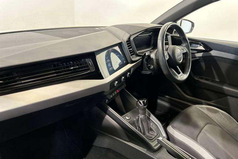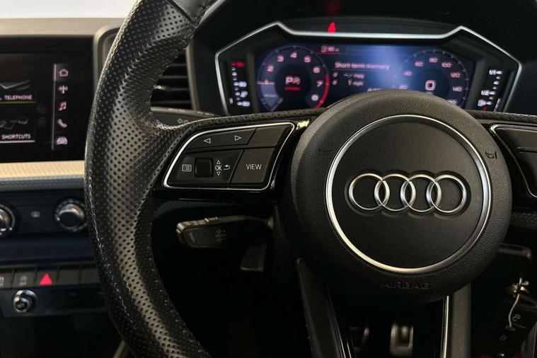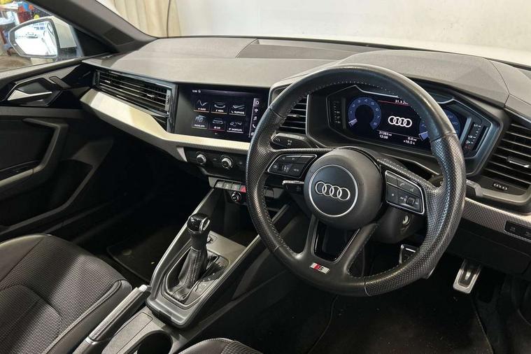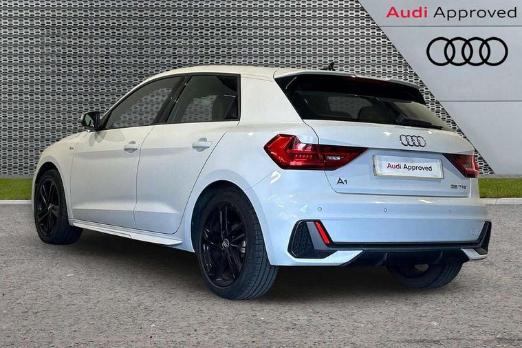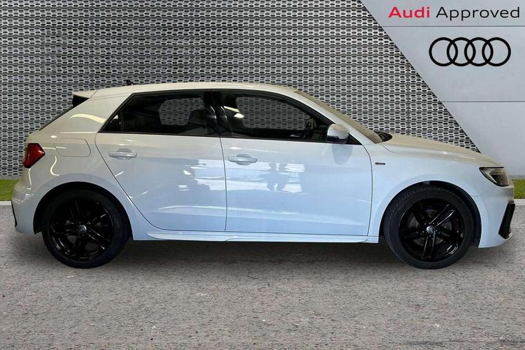 10.25" Digital instrument cluster display classis style instrument dials + speed, odometer, time, outside temperature, telephone menu + fuel level warning, Audi connect safety emergency and service including E-call, Audi drive select - power steering assistance + engine + gear shift 3 preset modes (auto, dynamic, efficiency and an Individual mode), Audi smartphone interface with connect compatible smartphone via USB directly MMI display + Nav, music, third party apps controlled via MMI controller, Automatic start/stop system, Bluetooth interface, Cruise control, Driver's information system, Electromechanical power steering, Lane departure warning system, Rear parking sensor, Service interval indicator, Speed limiter, Voice control system, Washer fluid level indicator, Sports suspension, 1 x SDXC card reader, 1 x USB type C and 1 USB type A charging points, DAB Digital radio, MMI radio plus with 8.8" colour MMI display screen and MMI touch, Auto dimming rear view mirror, Body coloured door mirrors, Door sills with aluminium inlays and S Line logo, Electric front and rear windows, Electrically adjustable, heated, folding door mirrors with integrated LED side indicator, Front side air inlets in grained matt black and C frame in titanium black, Heat insulating glass windscreen and side windows, Heated rear windscreen, LED headlights with LED rear lights + dynamic rear indicators + headlight adjustment and high beam, turning light + LED daytime running lights, Radiator grille and rear diffuser in matt titanium black, Radiator protective grille frame in matt aluminium silver, Rain and light sensors, Rear fog lights, Rear wiper, S line badges on front wings, Side front spoiler lips in grained matt black, 12V socket in centre console with two cup holders, 3 rear seats with headrests, 40:60 Split folding rear seat or folded fully, Black cloth headlining, Driver and passenger seat with manual height adjust with forward and backwards adjustment, Front and rear black floor mats with contrast stitching in fine silver, Front head restraints, Height and reach adjustable steering wheel, ISOFIX child seat mounting for front passenger and outer rear seats including top tether attachment point of outer rear seats, Leather gear knob with aluminium trim, Luggage compartment light with front and rear reading lights, Manually adjustable lumbar support in front seats, Stainless steel pedals, LED interior lighting pack - A1, Luggage compartment pack - A1, S line exterior styling pack - A1 Sportback, 3x3 point rear seatbelts, Audi pre-sense front with pedestrain and cyclist recognition, Brake assist function, Driver and front passenger airbag with front side and head airbags, Electronic Stability Control including ABS, EBD, ASR and EDL, Front and rear seatbelt reminder, Front passenger airbag deactivation switch, Hill hold assist, Seatbelt height adjustment for front seats, Seatbelt monitoring, Tyre pressure warning light, Warning triangle and first aid kit, Anti theft alarm, Anti theft wheel bolts and loose wheel warning, Immobiliser, Remote central locking with 2 foldaway keys, Aluminium trim for control switches, air vents and digital instrument cluster, Silver grey inlays polygon structure in diamond paint finish, Structured grey accent areas including air vents, door handle recesses and centre console in quartz paint finish,