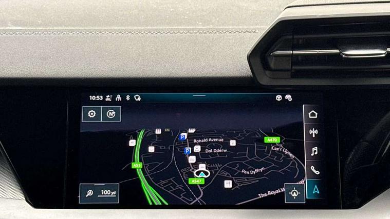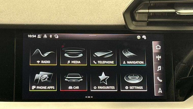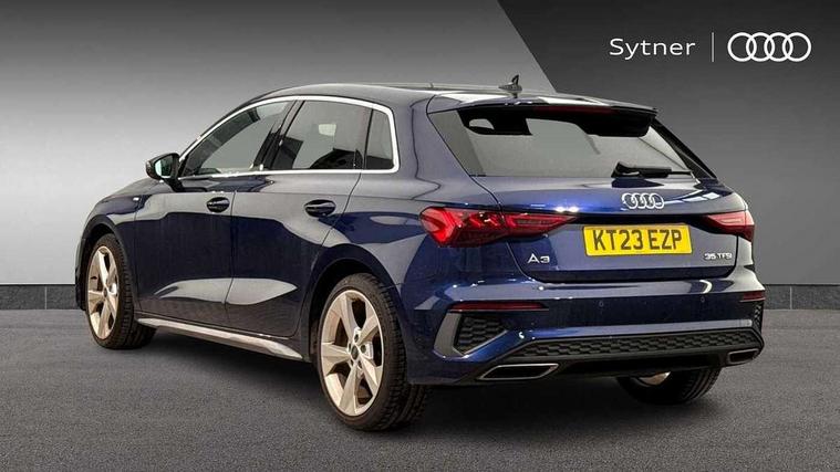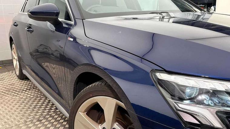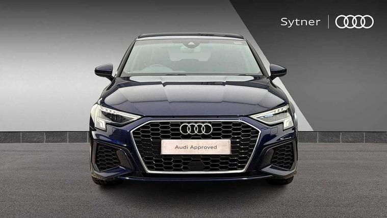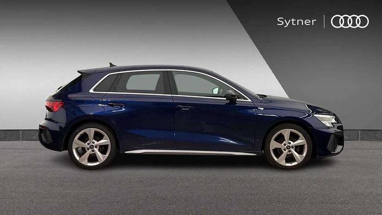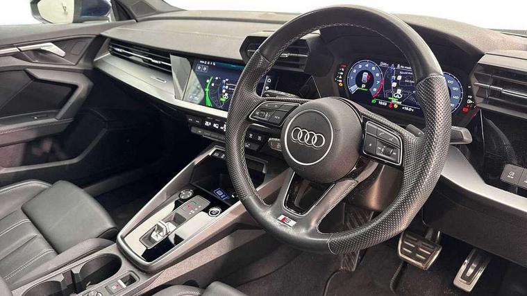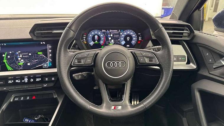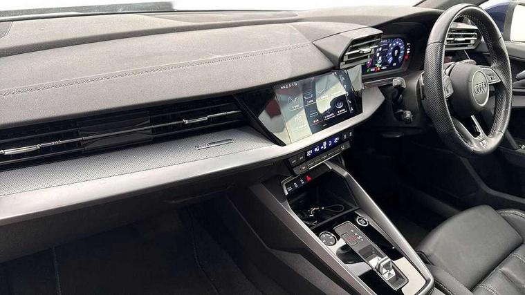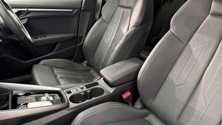 Audi drive select (Auto, Comfort, Dynamic, Efficiency and Individual), Audi smartphone interface, Audi Virtual Cockpit - 10.25" digital and colour instrument cluster, Automatic start/stop system with recuperation, Bluetooth interface, Camera based traffic sign recognition, Collision avoidance assistant, e-Call (emergency call), Electromechanical power speed sensitive steering, Lane departure warning system, MMI Navigation Plus with high resolution 10.1" colour touch screen display, Service indicator, Trip computer, Voice control system with natural language interaction, Sports suspension, 2xUSB-C connection with data and charging functions, 6 passive loudspeakers, DAB Digital radio, 3rd brake light, Acoustic glass windscreen, Aluminium window trim, Auto dimming frameless rear view mirror, Body colour exterior mirrors, Electrically adjustable/heated/folding/dimming door mirrors with kerb view includes integrated LED indications + kerb view function for passenger side, Front electric windows, Illuminated aluminium inserts front door sills with S logo, LED daytime running lights, LED headlights with LED rear lights and dynamic rear indicators, Light and rain sensors, Privacy glass - dark tinted rear window, rear door and side windows, Rear electric windows, Rear side air outlets in grained matt black, Rear side wing doors, Rear wiper, S line bumpers, S roof spoiler, 12V socket and storage compartment in front centre console, 3 seat bench in 2nd row, 3 spoke leather multifunction steering wheel with paddle shift, 4 way electrically adjustable lumbar support for driver and front passenger, 60/40 split folding rear seat bench, Black cloth headlining, Dual zone electronic climate control, Front and rear centre armrest in leather, Front and rear headrests, Front/rear floor mats, Height and reach adjustable steering wheel, Interior lighting - glove compartment light and right hand side, Luggage compartment floor covering, Manual boot compartment lid, Manually adjustable front seats, Seat side bolsters, Single front passenger seat, Stainless steel pedals and front footrest in black, Twin leather upholstery with front sports seats S embossed logo, Aluminium interior elements pack - A3 Sportback, LED interior lighting pack - A3 Sportback, S line styling pack - A3 Sportback, 3x3 point rear seat belts, Driver and front passenger airbag with passenger airbag deactivation, Electronic Stabilisation Control (ESC) including ABS, ASR and EDL, First aid kit with warning triangle and 2 safety vests, Front side airbags with head airbags and interaction airbag, Pre-sense front with pedestrian and cyclist detection, Seatbelt monitoring, Tyre pressure loss indicator, Anti theft alarm, Anti-theft wheel bolts, Electronically operated child lock, Immobiliser, Remote control central locking, Dark spectrum aluminium inlays, accent surfaces in the dashboard and centre console in platinum grey silk effect paint finish,
