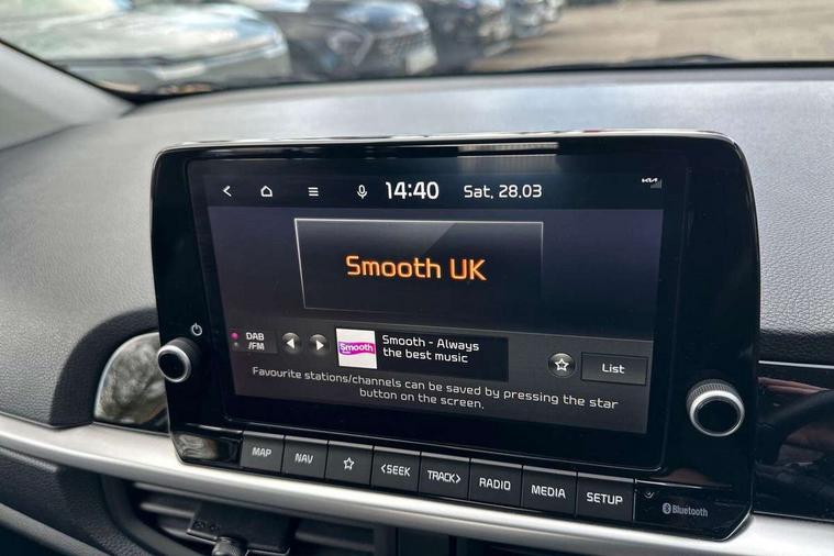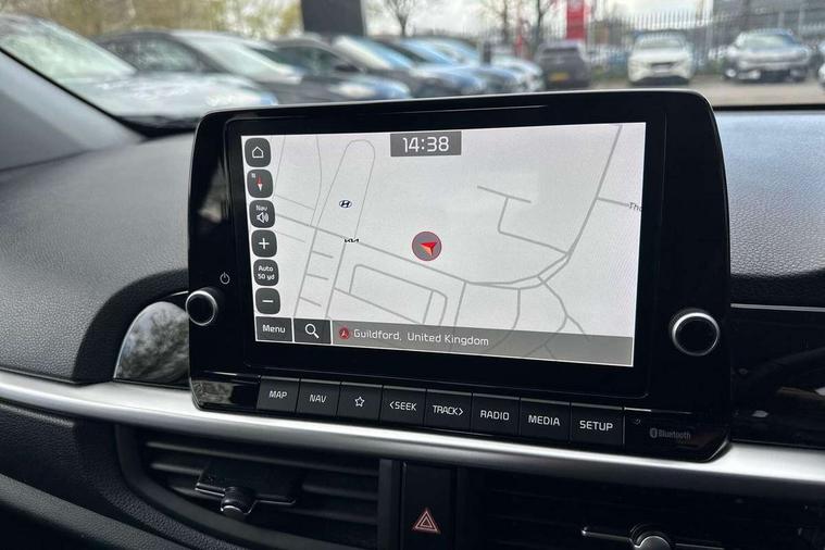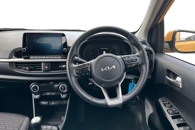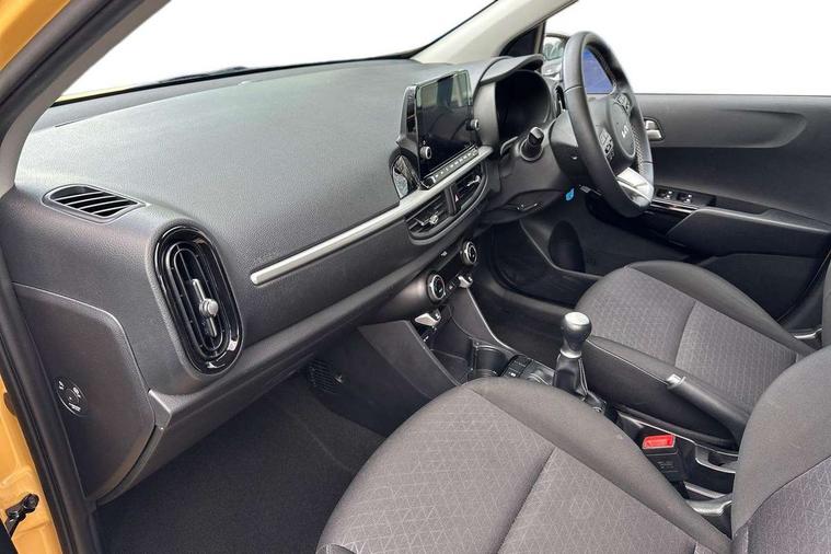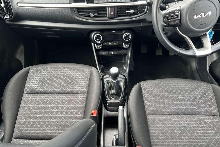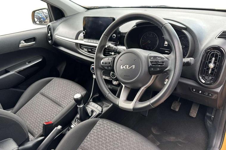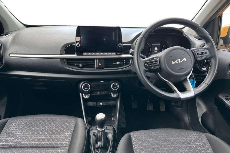 4.2" supervision monochrome cluster display, 8" touch screen satellite naviagtion with RDS and DAB with telematics, Apple car play/Android Auto with voice control, Cruise control + speed limiter, Emergency call service, Emergency stop signalling system, External temperature gauge, Forward Collision-Avoidance Assist (FCA) - City, Kia Connect (UVO), Motor driven power steering, Rear parking sensors, Reversing camera system with dynamic guidelines (Integrated into centre fascia screen), Tachometer, Tailgate, Trip computer, 6 speaker audio system, Bluetooth with music streaming, Steering wheel mounted controls, USB ports for connection of a media device, Automatic headlight control system, Black radiator grille with chrome surround, Body colour bumpers, Body coloured mirrors and chrome exterior handles, Day/night rear view mirror, Daytime running lights, Electric adjustable/heated/folding door mirrors with LED indicators lights, Front and rear electric windows with drivers's auto up/down function, Front fog lights, Headlamp levelling, Heated rear window, High mount brake light, MFR - Multi Focus Reflector halogen headlights with black bezel, Rain sensor, Rear fog lights, Rear side wing doors, Rear wash/wipe, Speed variable front wipers, Tinted glass, Visible VIN plate, Welcome and follow-me home light functionality, 1 x rear coat hook, 12V power point front, 2 seat bench in 2nd row, 3 x passenger assist grips, 60/40 split/folding 2nd row of seats, All round height adjustable headrests, Automatic air conditioning, Centre Console with Storage Box and Sliding Armrest, Cupholders in centre console, Driver and front passenger sunvisor with vanity mirror, Driver seat height adjust, Front cabin lights, Glovebox, High gloss lower centre fascia trim, door armrest and air vents, ISOFIX Child seat top tethers and anchor fixings, Leather trimmed steering wheel and gearshift, Luggage area light, Luggage area parcel shelf, Passenger front seatback pockets, Premium cloth upholstery, Silver paint finished interior door handles, Single front passenger seat, Slide/reclining front seats, Tilt adjustable steering wheel, Advanced Driver Assistance Pack - Picanto, 2 x 3-point rear seatbelts, ABS/EBD, Automatic unlocking of doors in case of impact, ESC + BAS + VSM + HAC, Front passenger airbag cut-off switch, Front seatbelt height adjusters, Front seatbelt pretensioners, Hill hold control, Hill start assist control (HAC), Knee airbags, Rear child proof door locks, Seatbelt warning, Side impact protection, Torque vectoring brake based and straight line stability (SLS), Traction control, Twin curtain airbags, Twin front airbags, Twin front side airbags, Tyre pressure monitoring system, Anti theft alarm, Engine immobiliser, Folding key, Locking wheel nuts, Remote central door locking, 15" Alloy wheels, Tyre mobility kit,
