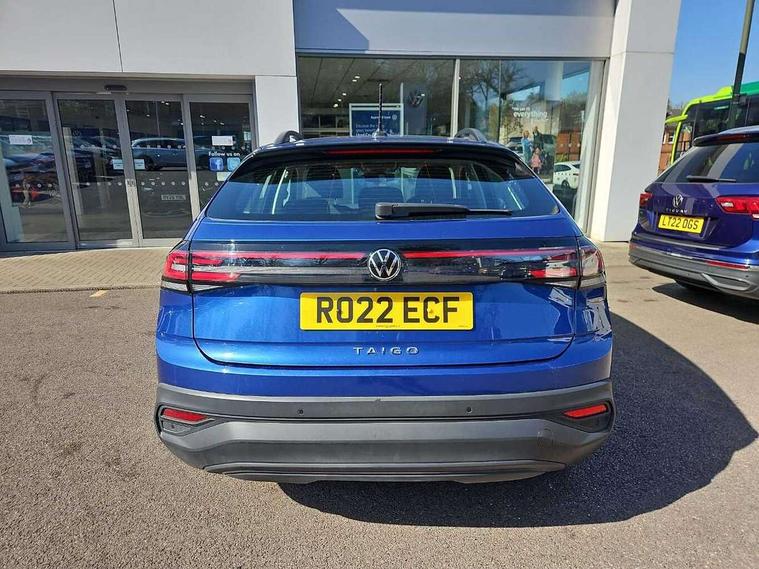 App-Connect including App-Connect Wireless, Driver alert system, e-Call (emergency call), Power Steering, Travel assist including emergency assist, Washer fluid level indicator, Wireless Charging including Bluetooth, Start-stop system with battery regeneration (recuperation - energy recovery during braking), Digital radio reception (DAB+), Diversity antenna for FM reception, WeConnect plus, Ambient lighting with logo projection, Aspherical driver's exterior mirror, Auto headlights, Body coloured bumpers, Body coloured exterior mirror housings and door handles, Electric windows, External USB type C socket and charging sockets, Front fog lamps with cornering function, Headlight range control, Heat insulating glass windscreen, LED headlamps, LED rear combination lamp, LED third brake light, Left convex exterior mirror, Power folding adjustable/heated exterior mirrors and front passenger exterior mirror lowering function, Rear fog light on one side, reversing light on both sides, Rear side wing doors, Rear wash/wipe with intermittent wipe setting, 'Slash/ Austin' Cloth upholstery, 12V socket in centre console, 2 front reading lights, 3 rear head restraints, 3 seat bench in 2nd row, Black carpets, Child seat anchor for child seat system i-Size, 2x top tether and child seat anchor in front on front passenger side, Door and side trim panels in titan black, Driver and front passenger seat height adjustment, Front centre armrest, Handbrake lever handle in leather, Height and reach adjustable steering wheel, Leather trimmed gear knob, Leather wrapped multifunction steering wheel, Luggage compartment floor, Luggage compartment light, Lumbar support for driver's and front passengers seat, Seat covers in titanium black, Single front passenger seat, Split folding backrest with centre armrest and unsplit rear seat bench, Storage compartment under front seats, Sun visors with illuminated vanity mirrors, Chrome Package - Taigo, Drivers assistance pack - Taigo, Light and Sight pack including High beam assist - Taigo, 2 x 3-point seatbelts/outer rear seats with ECE label, 3-point seat belts in front with pretensioner and height adjustment, 3-point seatbelt for centre rear seat, Driver and front passenger airbags with front passenger airbag de-activation, front side and curtain airbags, Driver and front passenger safety-optimised head restraints, Electronic stability control, Extended and predictive pedestrian/ cyclist protection, Front and rear disc brakes, Front curtain and side airbags with center airbag, Hill start assist, Manual rear child locks, Single tone horn, Tyre pressure loss indicator, Anti-theft alarm system with interior monitoring, backup horn, and towing protection, Anti-theft wheel bolts, Lava stone black gloss/matt decorative inserts in dash and front door panels, Low rolling resistance tyres,