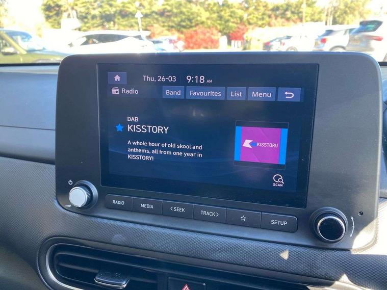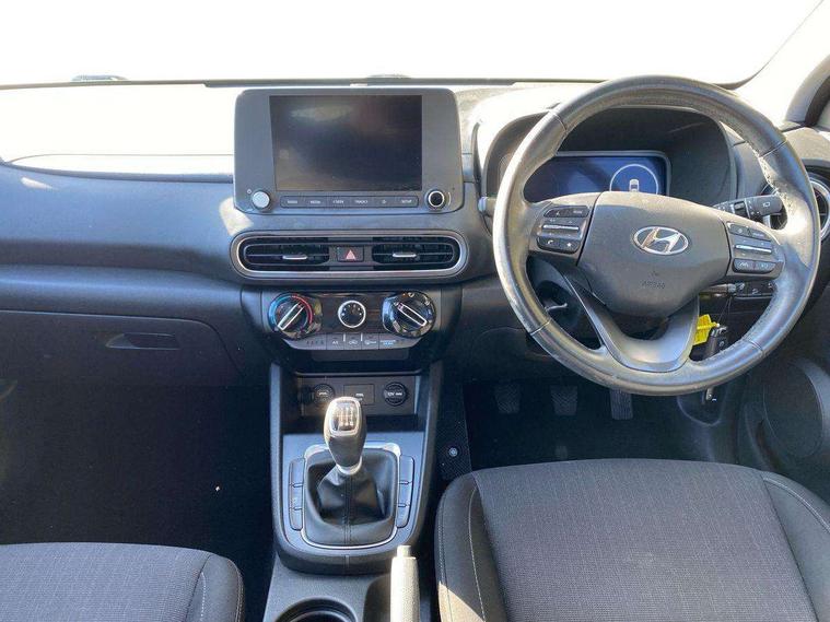 8" Touchscreen display audio + smart device integration, Bluetooth connectivity, Cruise control + speed limiter, Digital clock, Driver attention warning, Driver supervision instrument cluster with 10.25" LCD display, eCall emergency call system, Forward collision avoidance assist with pedestrian detection, Lane follow assist, Lane keep assist, Leading vehicle departure alert (LVDA), Parking system with rear camera and guidance system, PAS, Phone connection with apple carPlay and android auto, Rear parking sensor, Roadside assistance, Tailgate, Windscreen washer fluid sensor and warning indicator, 6 speed intelligent manual transmission, 6 speakers (2 front, 2 tweeters, 2 rear), Front USB ports, RDS and Digital DAB, Steering wheel mounted audio/phone controls, Automatic headlights with dusk sensor, Body colour door mirrors and handles, Door mirror integrated indicators, Electric front/rear windows with drivers one touch/anti-trap, Electrically adjustable and heated door mirrors, Halogen headlights, Halogen rear lights, LED daytime running lights, Positioning Lights - LED, Rain sensor, Rear roof spoiler with integrated LED brake light, Rear side wing doors, Rear wiper, Roof rails, Tinted glass with front door glass and windscreen with shade band, Variable front intermittent wipers, 12V power outlet in front console, 3 seat bench in 2nd row, 60/40 split folding rear seat, Adjustable head restraints, Air conditioning, Centre interior light, Cloth upholstery, Door scuff plate, Driver's seat height adjustment, Driver/passenger sunvisors and illuminated vanity mirrors, Front interior light, Front passenger seat manual adjustments, Height/reach adjustable steering column, Isofix rear child seat fastenings, Leather wrapped steering wheel and gear knob, Luggage compartment lighting, Luggage hooks, Metal paint effect interior door handles, Parcel shelf, Rear centre console with air vents, Single front passenger seat, Sunglasses holder, Vertical adjustment rear head restraints, Trailer wiring package - Kona, Airbags - front, front side and curtain airbags, Anti-lock brake system (ABS), Childproof rear door locks, Downhill brake control, EBD + Brake Assist, Electronic stability control, Fasten seatbelt reminder, Fixed 3 point for second row centre passenger seatbelt, Front seatbelt pretensioners, Height adjustable front seatbelts, Hill start assist control (HAC), Manual parking brake, Passenger airbag deactivate switch, Rear seat alert, Traction control, Tyre pressure monitoring system, Alarm/immobiliser, Deadlocks, Folding key, Locking wheel nuts, Remote central locking, 17" Alloy wheels,