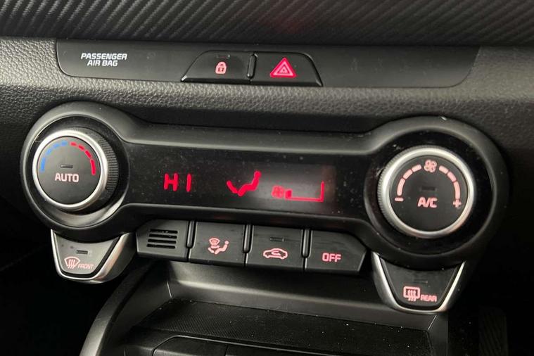 4.2" supervision colour cluster display, 8" touchscreen navigation, Apple car play/Android Auto with voice control, Blind spot collision avoidance rear, Blind spot collision warning, Drive mode selector, Electric power steering, Emergency call service, Emergency stop signalling system, External temperature display, Forward Collision-Avoidance Assist (FCA) - City/Pedestrian/Cyclist, Front parking sensors, Intelligent speed limit assist, Kia connected services featuring TomTom live, Lane keeping assist system (LKAS), Driver attention warning (DAW) and High beam assist (HBA), Rear parking sensor, Reversing camera system, Smart cruise control, Trip computer, UVO connect, Intelligent Stop and Go, Audio system with 6 speakers, Bluetooth with music streaming, Front USB port, Rear USB port, Steering wheel mounted controls, Aero blade type windshield wipers, All round electric windows with drivers auto up/down function, Auto dimming rear view mirror, Auto headlights, Automatic defog system, Automatic headlights control, Black side sill, door garnish and wheel arch trims, Black/body colour bumpers, Body coloured exterior door handles, Chrome side window trim, Electrically adjustable/heated/folding door mirrors with LED indicators, Front and rear silver skid plates, Gloss black door mirrors with matt black lower housing, GT-Line body kit, Headlight levelling device, Heated rear window, High gloss black and satin radiator grille, LED Bi-function projection headlights with static bending, LED daytime running lights, LED front fog lights, LED rear combination lights, Privacy glass - Rear windows and tailgate, Rain sensing front wipers, Rear fog lights, Rear side wing doors, Rear wash/wipe, Roof coloured rear spoiler with high mounted braking light, Roof rails, Shark fin antenna, Solar windshield glass, Speed variable front wipers, Tinted glass, Welcome and follow-me home light functionality, Windscreen Washer Level Warning, 12V power point front, 3 seat bench in 2nd row, 60/40 split folding rear seat, Air filter, All-round height adjustable headrests, Aluminium pedals, Automatic air conditioning, Centre armrest storage box, Centre console with cupholders, D-Cut perforated leather trimmed steering wheel, Dash illumination dimmer switch, Driver's seat height adjuster, Dual Height Luggage Area Floor, Front and centre cabin lights, Front and rear door map pockets with bottle holder, Gear shift indicator, Glovebox illumination, GT-Line cloth/faux leather upholstery, Heated front seats, Heated steering wheel, ISOFIX Child seat top tethers and anchor fixings outer rear seats, Leather trimmed gearshift, Luggage area light, Luggage area parcel shelf, Luggage net, Luggage net with hooks, Overhead console lamp, Overhead console with sunglasses cases, Passenger front seatback pockets, Passenger seat height adjuster, Satin chrome interior door handles, Single front passenger seat, Sunvisors with vanity mirror illumination (Driver and front passenger), Tilt/telescopic adjustable steering wheel, ABS with Electronic Brakeforce Distribution (EBD) and Brake Assist System (BAS), All round 3-point seatbelts, Electronic stability control (ESC) and vehicle stability management (VSM), Front passenger airbag cut-off switch, Front seatbelt pretensioners + load limiters, Height adjustable front seatbelts, Hill start assist control (HAC), Impact sensing auto door unlocking, Manual child lock in rear doors, Rear seat Occupancy alert, Seatbelt reminder warning, Twin curtain airbags, Twin front airbags, Twin front side airbags, Tyre pressure monitoring system, Alarm system, Door deadlocks, Engine immobiliser, Locking wheel nuts, Smart key with engine start/stop button, Speed sensitive auto door locking, Visible vehicle identification number, High gloss black centre fascia, 17" GT-Line alloy wheels, Tyre mobility kit,