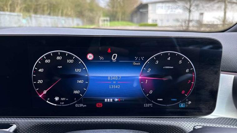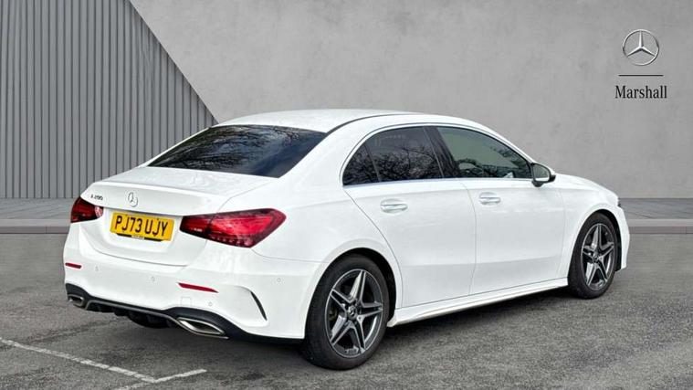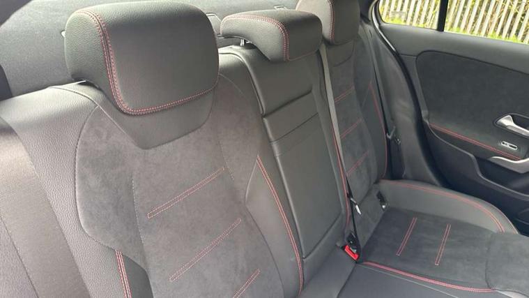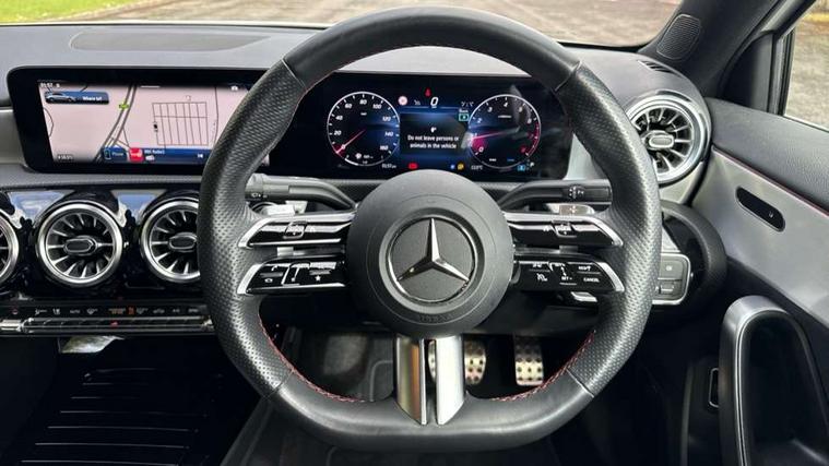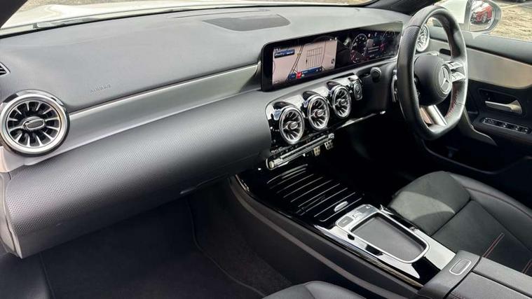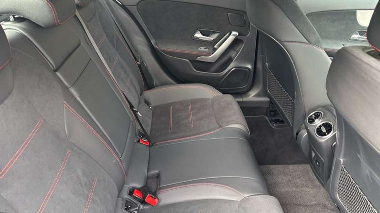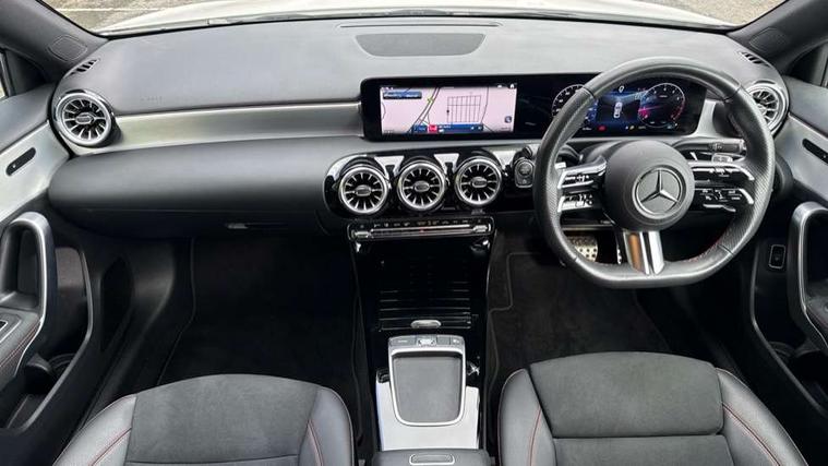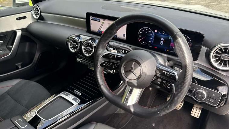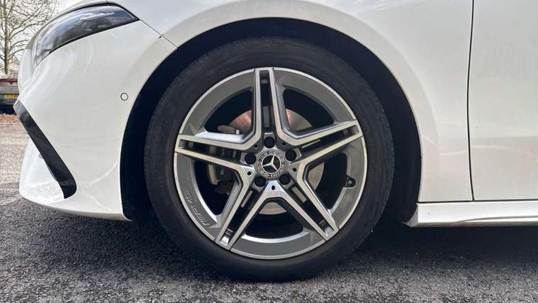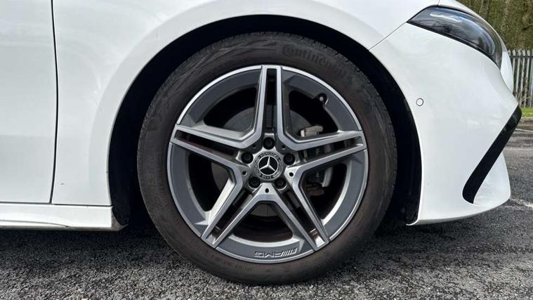 10.25 inch touchscreen central media display, 10.25" Digital instrument cluster display screen, Attention assist, Blind spot assist, Brake pad wear indicator warning light, Car wash mode, Cruise control + speed limiter, Direct steering, Direction indicators with lane change function, Dual bluetooth interfaces, DYNAMIC SELECT with a choice of driving modes (ECO, Comfort, Sport and Individual), ECO start/stop function, Engine start/stop button, Fluid level warning indicator for fuel, oil, coolant and washer fluid, Hard-disk navigation, Hey Mercedes Voice activation, Lamp failure indicator, Lane keeping system, MBUX augmented reality for navigation, Mercedes me connect including emergency call system, accident recovery, breakdown and maintenance management, Mercedes me remote services, Outside temperature gauge, Owners manual in English, Pre-installation of private car share, Preinstallation for Mercedes Benz link, Remote boot closing, Service indicator (ASSYST), Smartphone integration with Apple CarPlay and Android auto, Speed limit assist, Speed sensitive power steering, Trip computer in multifunction display with current consumption indicator, Wireless charging, Lowered comfort suspension, DAB Digital radio, MBUX multimedia system, Mercedes Benz advanced sound system (225 W) with 10 speakers, 1 central speaker, speakers on doors, a tweeter on door, one sub woofer + boost amplifier, 4 Electric Front and Rear windows, Adaptive brake lights, AMG body styling - AMG front apron with front splitter and AMG rear apron and visible exhaust tailpipe trim elements, Body colour bumpers, Body colour door handles with chrome inserts, Body colour side skirt, Body coloured door mirrors, Chrome beltline strips, Diamond radiator grille with pins in fine star pattern, Electric adjustable and heated door mirrors with integrated LED side indicators, Exhaust system with 2 visible tailpipe trim elements and rear apron, Headlamp assist automatic headlamp activation, Heat insulating dark tinted rear and rear side windows, Heated glass rear windscreen + timer control, LED High Performance headlamps including integral LED daytime running lamps and adaptive highbeam assist, LED tail lamp, Privacy glass, Radio aerial, Rain sensing windscreen wipers with two sensitivity settings, Rear boot, Rear fog lights, Rear side wing doors, Third brake light featuring LED technology, Window line trim strip in chrome, 3 seat bench in 2nd row, 3 Spoke flat bottom leather multi function steering wheel with perforated leather in grip area, 4 way lumbar support, 40:20:40 split folding rear seats, Air conditioning - Two zone thermotronic luxury automatic climate control with display, Automatic child seat recognition sensor, Black air vents with surround in silver chrome, Black roof lining, Brushed stainless steel sports pedals with rubber studs, Floor mats with AMG lettering, Front centre armrest with stowage, Front seat backs luggage nets, Front sports seats with adjustable head restraints, Galvanished gear shift paddles on steering wheel, Heated front seats, Height/reach adjustable steering column, Illuminated Mercedes Benz lettering front door sills with changeable cover, Interior lighting - 64 colour Ambient lighting, Interior mirror with reading lamps in black and frameless, Rear armrest with 2 cupholders, Seat occupancy sensor for front passenger seat, Single front passenger seat, Stowage compartment in centre console with retractable cover, Sunvisors with illuminated vanity mirrors, Twin front cupholders, Keyless go comfort pack - A Class, Light and sight pack - A Class, Mirror package - A Class, Parking pack - A Class, Seat comfort pack - A Class, USB pack plus - A Class, 3 rear 3 point seatbelts, ABS with Brake Assist, Active bonnet, Active brake assist includes forward collision warning system with autonomous braking, Adaptive brake assist with hold function and hill start assist, Bonnet with power domes, Childproof locks manually operated for rear doors and electrically operated for rear power windows, Crash responsive emergency lighting, Driver and passenger head and side airbags, Drivers knee airbag, Dual stage driver/passenger airbags, Electronic parking brake, ESP curve dynamic assist, ESP with ASR, Front and rear seatbelt reminder, ISOFIX and top tether child seat fixing points in two outer rear seats, Tyre pressure monitoring system, Warning triangle and first aid kit, Window airbags, Alarm system/interior protection/immobiliser, Guard 360 degree vehicle protection, Remote central locking and crash sensor with emergency opening function, Black seatbelts, Light longitudinal grain aluminium trim, 18" AMG 5 twin spoke light alloy wheels, aerodynamically optimised, painted in termolite grey with high sheen finish, Summer tyres, Tirefit sealant kit,