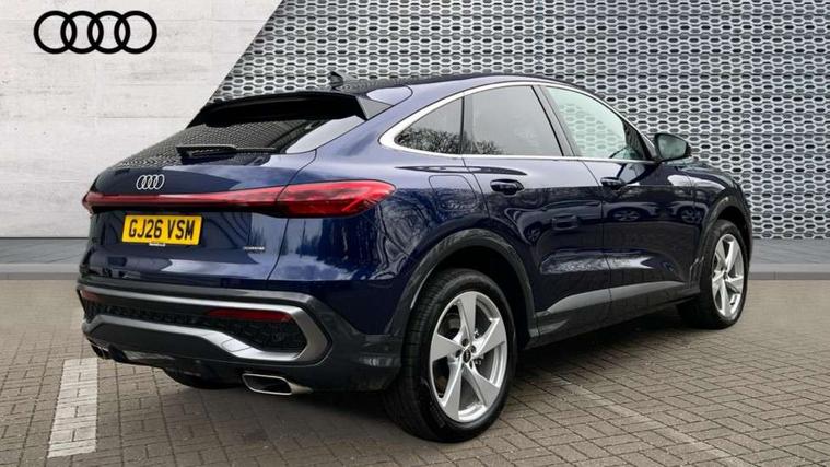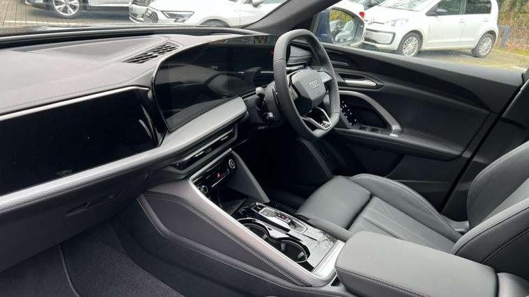 Adaptive cruise control, Attention and drowsiness detection with driver observation, Audi application store, Audi connect emergency call and service, Audi digital key, Audi drive select, Audi smartphone interface, Audi virtual cockpit plus with 11.9" OLED colour display, Camera based traffic sign recognition, Front cross traffic intersection assist, Lane change assistant with exit warning system, rear cross traffic alert and rear turn assist, Lane departure warning system, MMI navigation plus with high resolution 14.5" OLED touchscreen colour display, Park assist plus, PAS, Reversing camera, Swerve assist and front turn assist, Traffic sign based speed limiter, Audi sound system impressive sound with 8 loudspeakers including centre speaker and subwoofer, 6-channel amplifier with a total output of 180 watts, DAB Digital radio, Smartphone compartment with wireless charging, Auto dimming rear view mirror, Body coloured door mirrors, Electrically adjustable heated and folding + automatically dimming exterior mirrors, Front and rear electric windows, Front door sill trims with aluminium inlays, illuminated with 'S' logo, Grill frame, inlay and front air inlets in matt anthracite chrome, Headlight cleaning system, Heated rear window, High beam assist, High gloss window surrounds, LED headlights plus incl. digital DRL, dynamic coming and leaving home function with turning/all weather/motorway/manouevring and intersection lights, LED rear lights pro incl. dynamic rear indicators and illuminated light strip with animated coming and leaving home function, Logo projection light in exterior mirrors, Privacy glass, Projection third brake light for rear window in LED, Radiator grille in phantom black, Rear and side windows with heat insulating glass, Rear honeycombe grille in matt black with inlay in matt anthracite chrome, Rear side wing doors, Rear wash/wipe, S Line badge on the front wings, S line bumpers in contrasting Volcano grey metallic paint finish, Windscreen with acoustic glazing, 3 rear head restraints, 3 seat bench in 2nd row, 3 spoke leather steering wheel with multi-function buttons with touch control, flattened on top and bottom, with S badging and contrast stitching, 4 way electric lumbar support for driver and front passenger, Black carpets, Comfort centre armrest front, Deluxe 3 zone electronic climate control, Front and rear floor mats, Front sport seats with integrated head restraints, Headlining in black cloth, i-Size child seat mounting on the front passenger side and outer rear seats, i-Size and top tether on the outer rear seats, Increased charging capacity for USB ports 2X100 Watts in rear, 2X60 Watts in front, Interior trim in aluminium look, Luggage compartment lid, electrically opening and closing, Manual steering column adjustment, S embossed logo on front sport seats, Single front passenger seat, Softwrap in black, Stainless steel pedals and footrest, Steering wheel grips in perforated leather and shift paddles, Ambient lighting package plus - Q5, Rear seat bench plus pack - Q5, Storage and luggage compartment pack with luggage net - Q5, 3x3 point rear seatbelts, ABS, Acoustic vehicle alerting system, Convenience key with safelock, Driver and front passenger airbag with passenger airbag deactivation, Electric child safety locks, First aid kit with warning triangle and high visibility vests, Front emergency brake assist, Front side airbags with head airbag system and front interaction airbag, Hill hold assist, Rear seat occupant reminder, Tyre pressure loss indicator, Anti-theft wheel bolts, Thatcham approved category 1 anti theft alarm, Accent surfaces and control buttons in gloss black, Anthracite matt brushed aluminium inlays with linear embossing, Black dashboard with contrast stitching, Upper and lower interior elements in artificial leather, Tyre repair kit,
